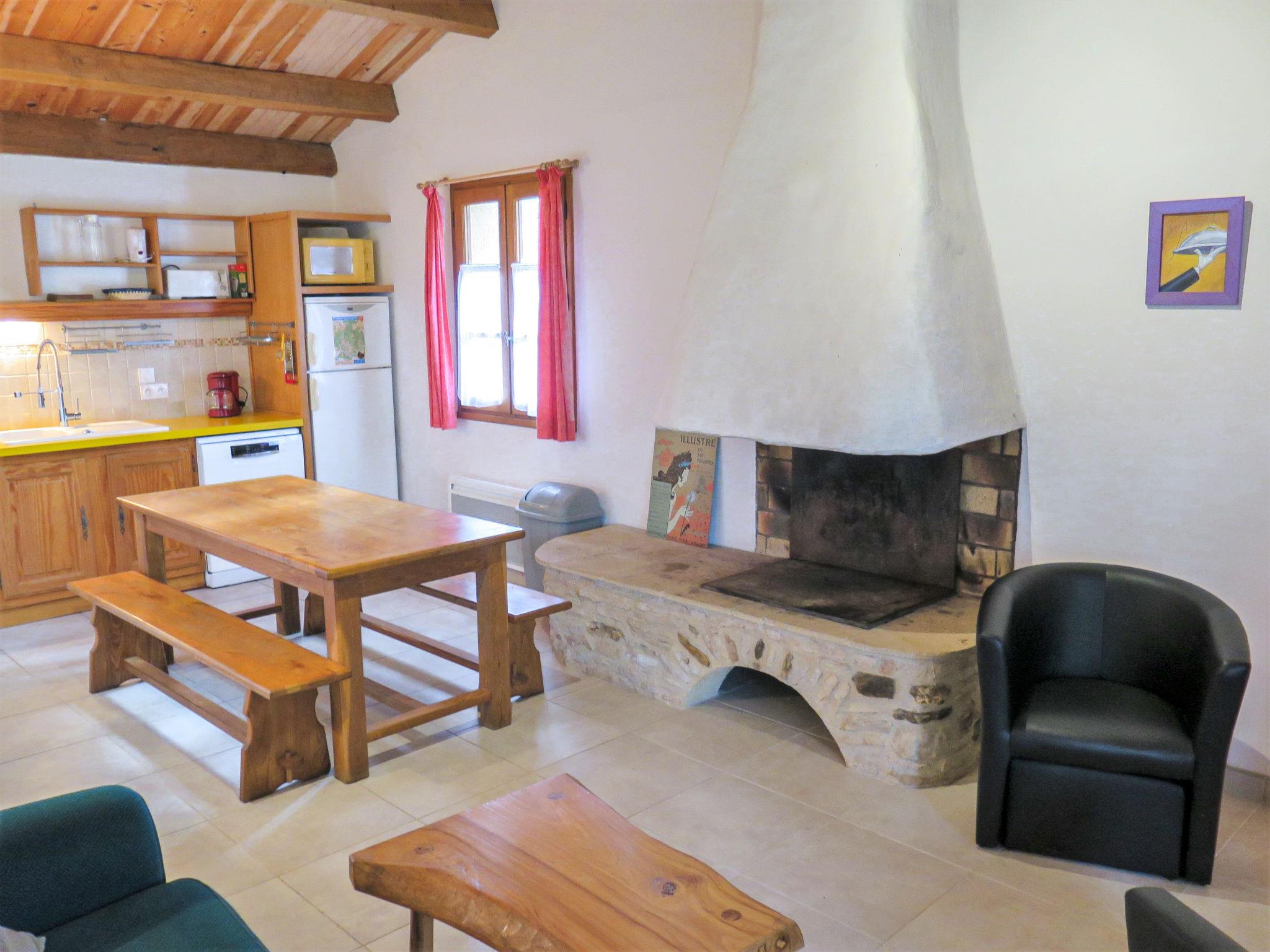 "Le Sorbier", 3-room house 70 m2. Object suitable for 2 adults + 2 children. Practical furnishings: living/dining room with open-hearth fireplace, dining table and TV (flat screen). Exit to the terrace. 1 room with 1 french bed (140 cm, length 190 cm). 1 room with 2 beds (90 cm, length 190 cm). Open kitchen (oven, dishwasher, 4 gas rings, toaster, kettle, microwave, freezer, electric coffee machine). Bathroom, sep. WC. Electric heating. Terrace. Terrace furniture, barbecue, deck chairs (2). Facilities: washing machine, baby cot, logs (extra). Internet (WiFi, free). Please note: non-smoking house. 1 small pet/ dog allowed. Smoke alarm. Offer by a commercial proprietor according to Art. 155, IV, CGI