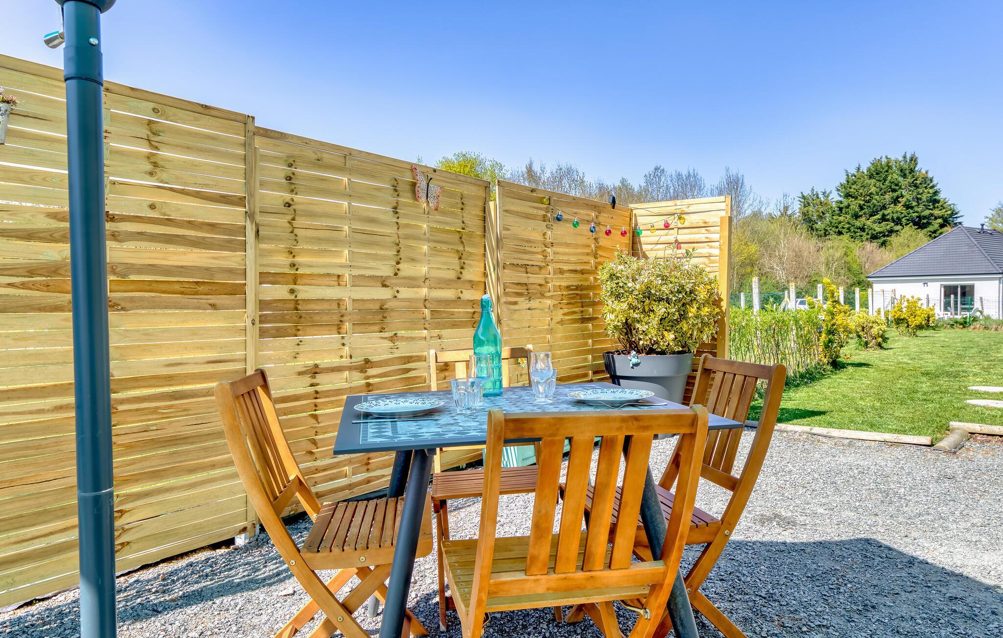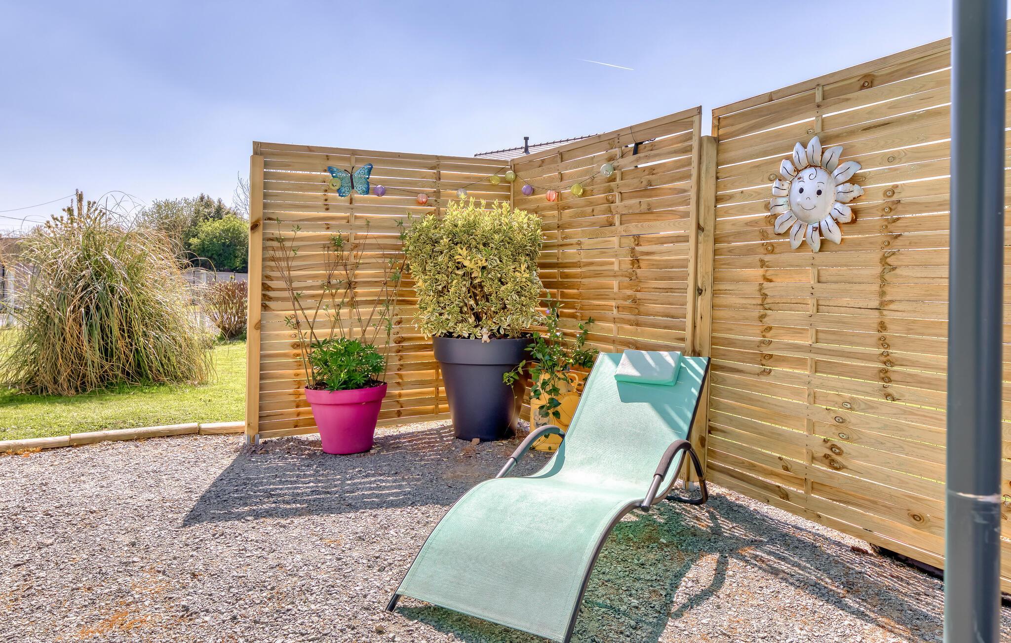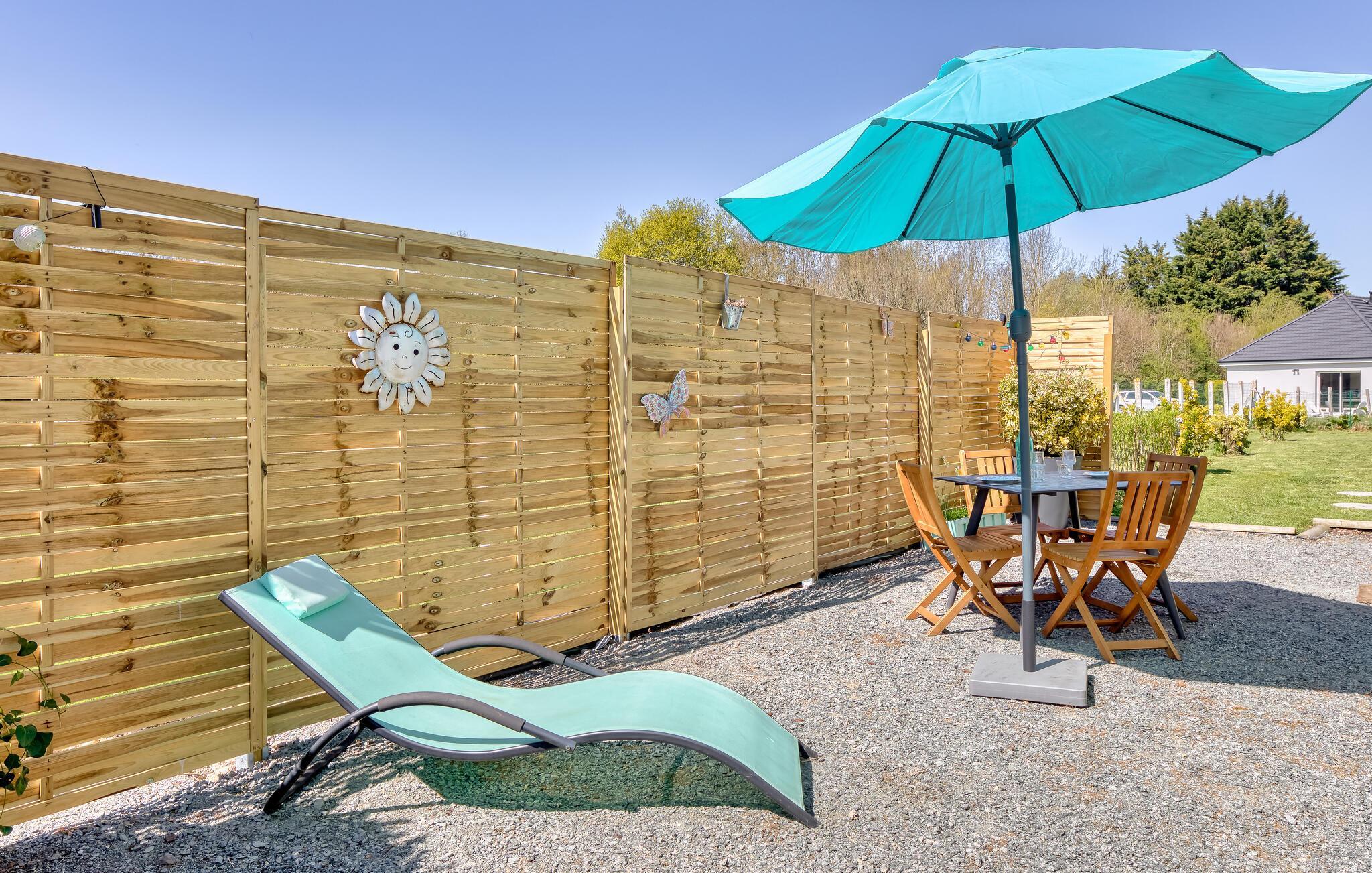 Treten Sie aus dem Wohnbereich in den Garten und entspannen Sie auf der Terrasse mit einer Tasse Kaffee, bevor Sie zu einem Ausflug oder ans Meer aufbrechen.