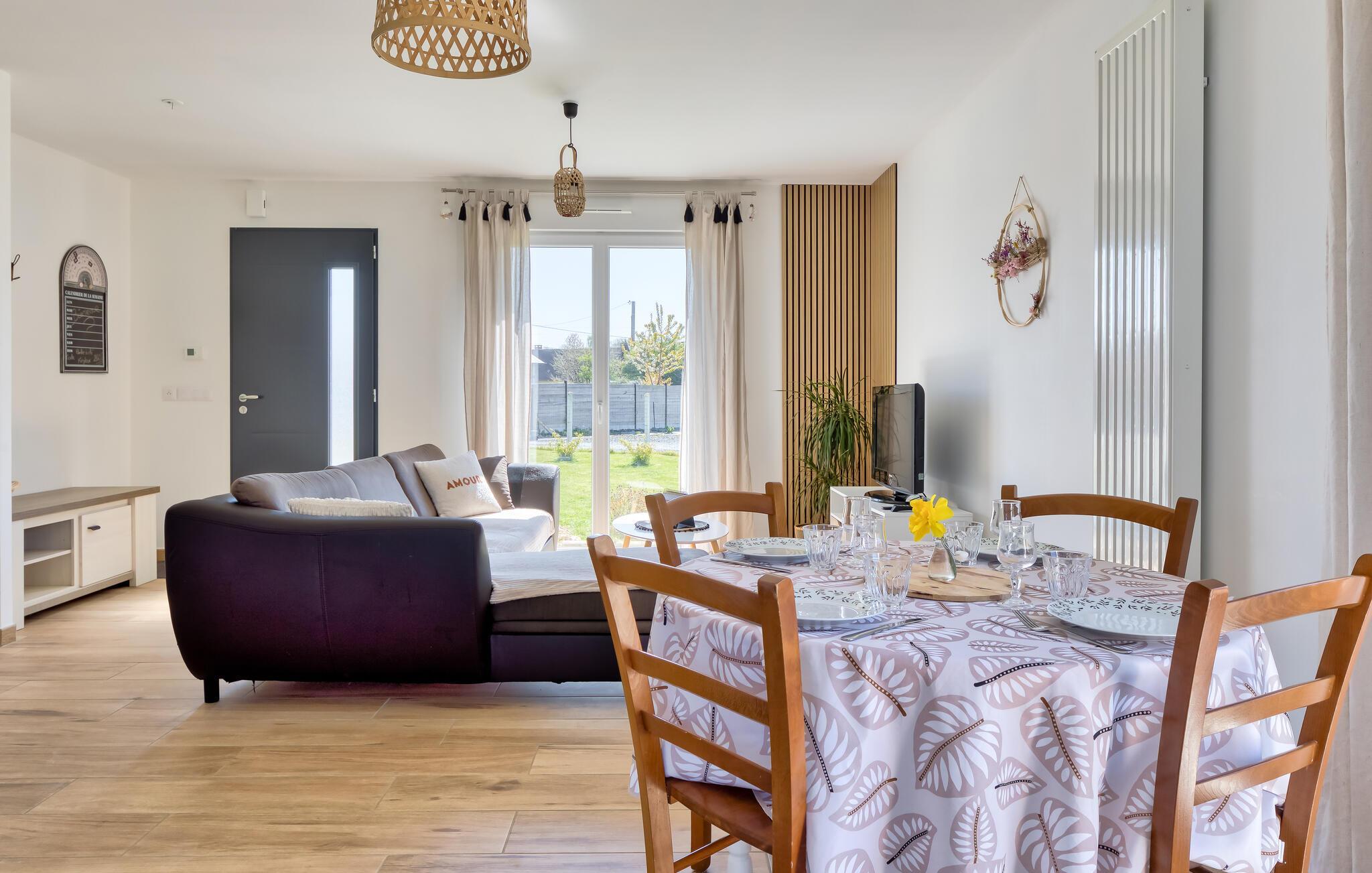 Hier können Sie in ansprechendem Rahmen mit Ihrer Familie entspannen. Das kleine Haus erwartet Sie in schöner Lage, von hier aus erreichen Sie den Strand bequem mit dem Auto. Mit seinen hellen Räumen, die durch die wohnliche Einrichtung ihren Charme erhalten, ist das Haus der ideale Ort für eine schöne Auszeit. Nutzen Sie es als Basis für einen herrlichen Strandurlaub mit Erkundungen der Normandie. Machen Sie es sich nach einem unvergesslichen Tag am Esstisch bequem und genießen Sie beim gemeinsamen Essen den Blick in den Garten durch große Fenster.