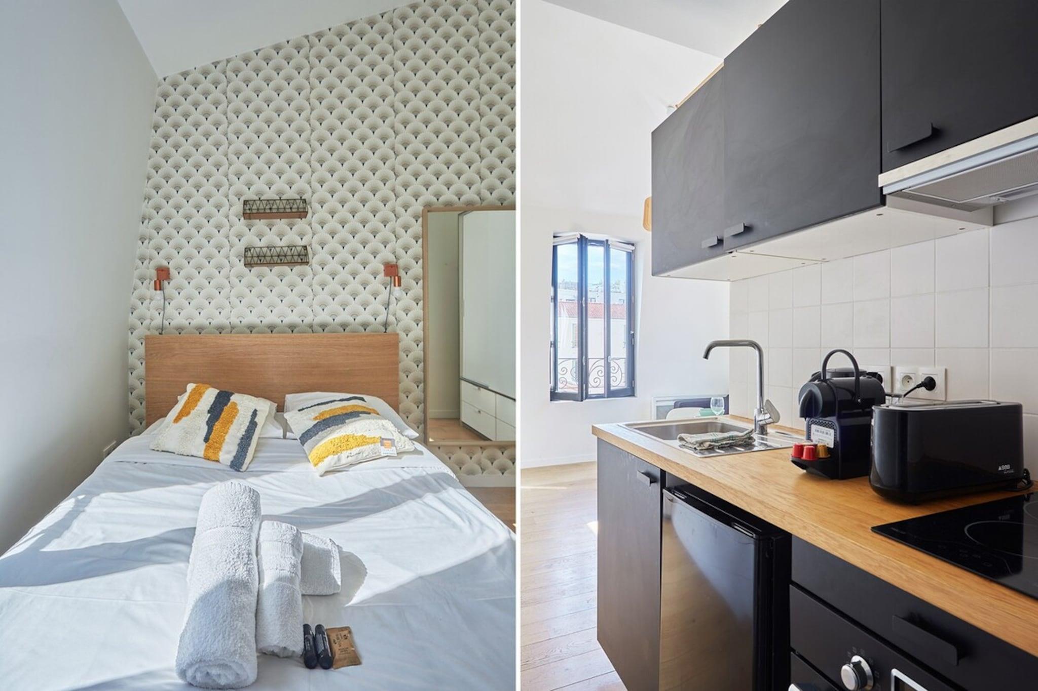 Modern flat with 1 bedroom, 1 living room, kitchen and bathroom. Cosy, fully-equipped apartment located in the heart of Boulogne, a few steps from the "Passages" shopping centre, with its many restaurants, supermarkets and boutiques. Just 10 minutes by metro from the Eiffel Tower, this flat is located in a dynamic shopping district. It's ideal for a successful Parisian break with family or friends.