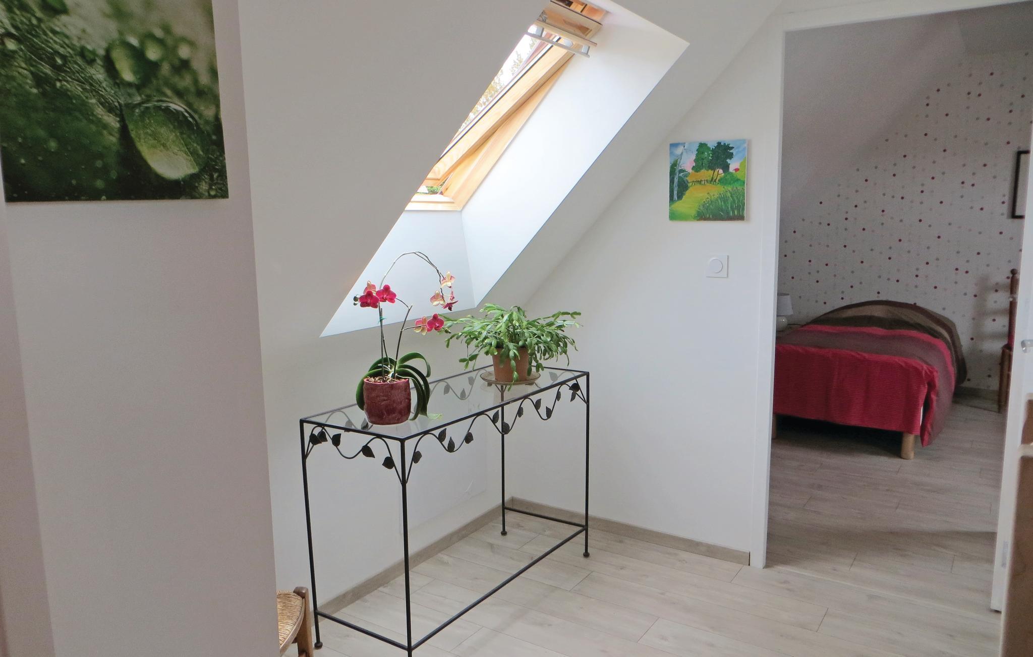 Hinter diesem neuen Haus aus Holz erstreckt sich ein großer, umzäunter Garten, der Ihnen ausreichend Ruhe verspricht. Im weitläufigen Wohnzimmer mit integrierter Küche, das sich zur Terrasse und zum Garten hin öffnet, steht ein Pelletkaminofen, die zentrale Wärmequelle dieses sehr gut isolierten Objekts. Eine Person mit eingeschränkter Mobilität kann mitreisen: Das Haus ist mit breiten Türen, einer ebenerdigen Dusche ohne Kanten, einer Schiebewand im Bad und einer Rampe bis zur Haustür ausgestattet. Darüber hinaus befindet sich das eine der drei Schlafzimmer im Erdgeschoss. Die Terrasse ist für Ihre optimale Erholung mit Tisch, Stühlen und Sonnenliegen ausgestattet. In einem Gehege im Garten sind zur Freude großer und kleiner Gäste Hühner und Ziegen zuhause. 1 km entfernt lädt ein öffentliches Schwimmbad zu viel Badespaß ein. Nach einer Erkundung von Saumur, der nächstgelegenen Stadt (15 km), können Pferdefans die legendäre Reitschule Cadre Noir besuchen. Entdecken Sie die vielen Schlösser, die das Loiretal schmücken. Radbegeisterte Urlauber sollten es sich nicht entgehen lassen, einen Teil der Strecke "La Loire à Vélo" zu hinterlegen, die 8 km entfernt am Fluss entlang ganz bis nach Nantes verläuft. Etwa 1 Autostunde entfernt wartet Angers mit seinem Schloss und dem berühmten Wandteppich der Apokalypse auf Ihren Besuch. Golfplatz 17 km. Angeln möglich in den vielen Fließgewässern der Umgebung.