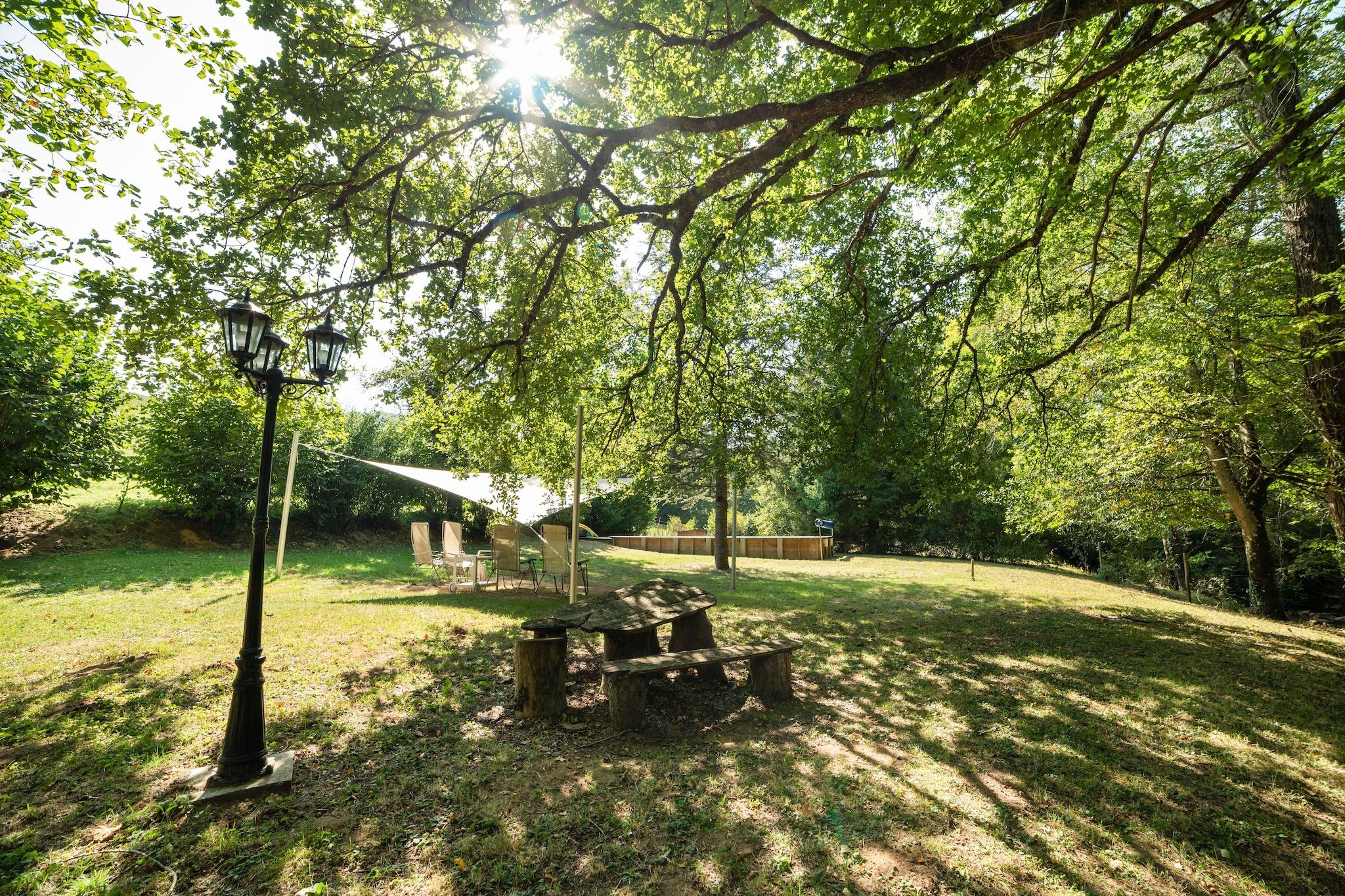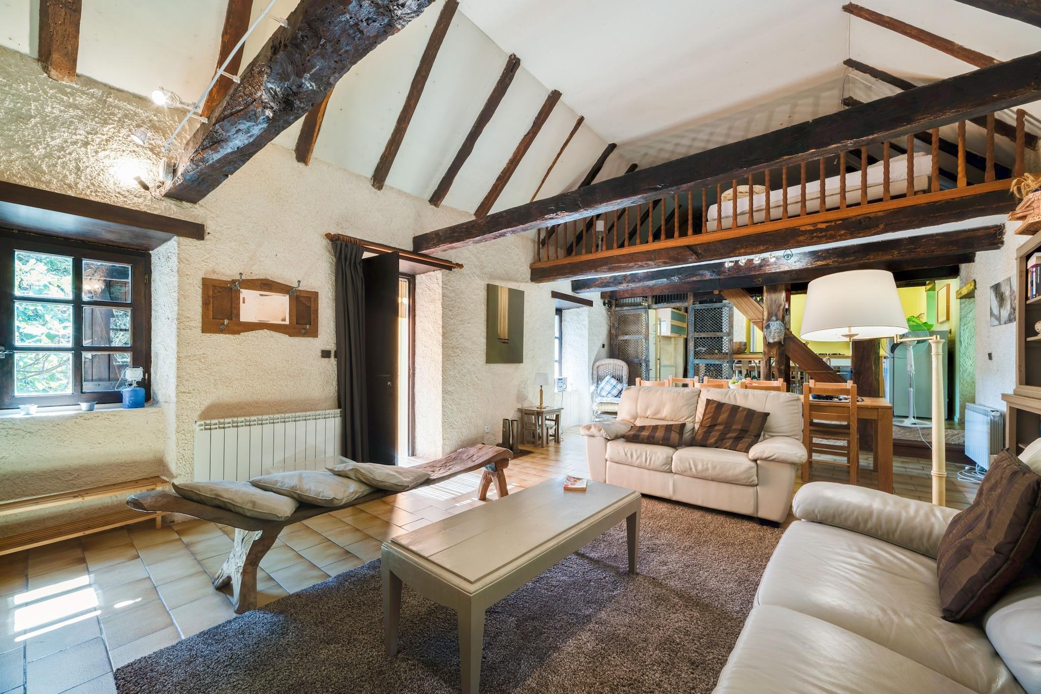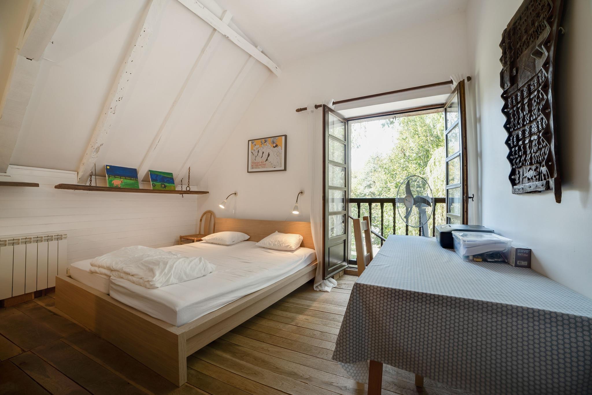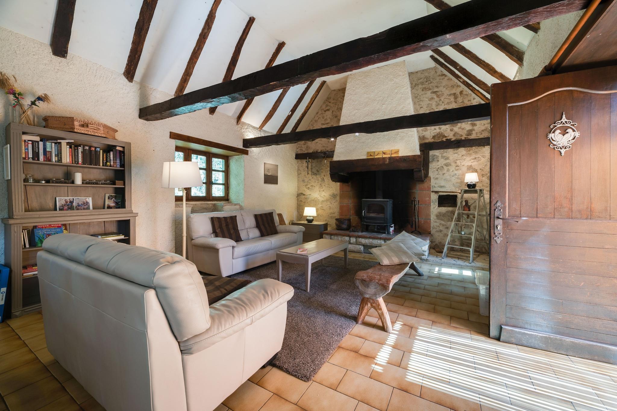 This beautifully restored water mill in Brandonnet offers a serene escape for up to six guests. Nestled in a sunny valley along a gentle river, the mansion blends rustic charm with modern comforts. The property features a heated swimming pool, a covered terrace, and a newly added outdoor kitchen-perfect for warm summer evenings. Inside, the older east wing showcases a cozy living room with a fireplace and exposed oak beams, a kitchen, and a mezzanine. The west wing includes a spacious studio, two bedrooms, a bathroom, and a toilet. A gallery above the living room holds a double bed, adding to the unique layout. Children will love the attic playroom and the secure garden, while adults can enjoy walks to nearby medieval villages and pilgrimage trails. Located in the quiet hamlet of Le Bousquet, the mill is close to Villefranche's weekly market and surrounded by the rolling hills of the Lot and Languedoc. With an original bread oven in the barn and Wi-Fi available (though spotty), this hidden gem is ideal for families seeking peace, nature, and a touch of history.