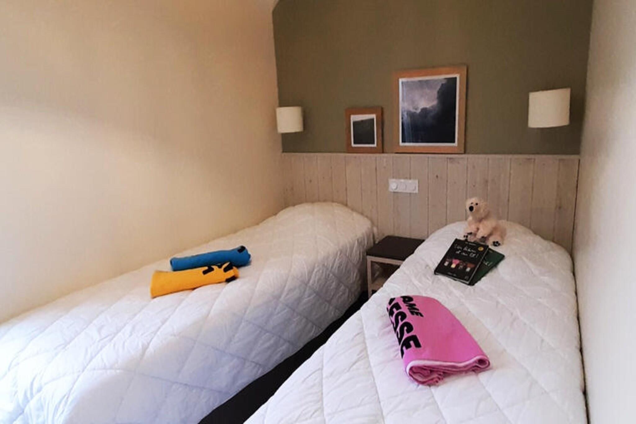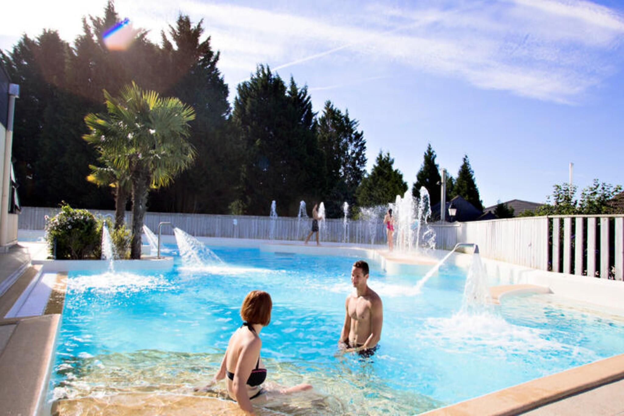 This charming holiday home offers comfortable accommodation for up to 4 guests, with a living room featuring a convertible sofa bed. Upstairs, there is one bedroom with a double bed and a second room with two single beds. The property is pet-friendly for an additional charge, with animals welcome for a fee per night or week. Guests will also enjoy the convenience of two bathrooms: one with a shower and WC on the ground floor, and another with a bathtub and WC upstairs. Free Wi-Fi is available at the reception, and parking is nearby, depending on availability. Situated in a large tourist complex, the property offers access to a variety of attractions. Guests can explore the nearby equestrian center, enjoy outdoor activities such as tennis and mini-golf (for an additional charge), or relax with on-site facilities like a restaurant, bar, and grocery store. During school holidays, children can participate in various activities, including sports and kids' clubs, while families can also enjoy the large indoor and outdoor play areas. The holiday home is equipped with a fully functional kitchen, allowing guests to cook meals at their convenience. A terrace provides an ideal outdoor space for dining or unwinding. On-site amenities include access to an indoor pool, hot tubs, a sauna, and a heated outdoor pool, ensuring a relaxing stay. For added convenience, the property also provides a baby kit for rent and offers optional cleaning services at an additional cost.