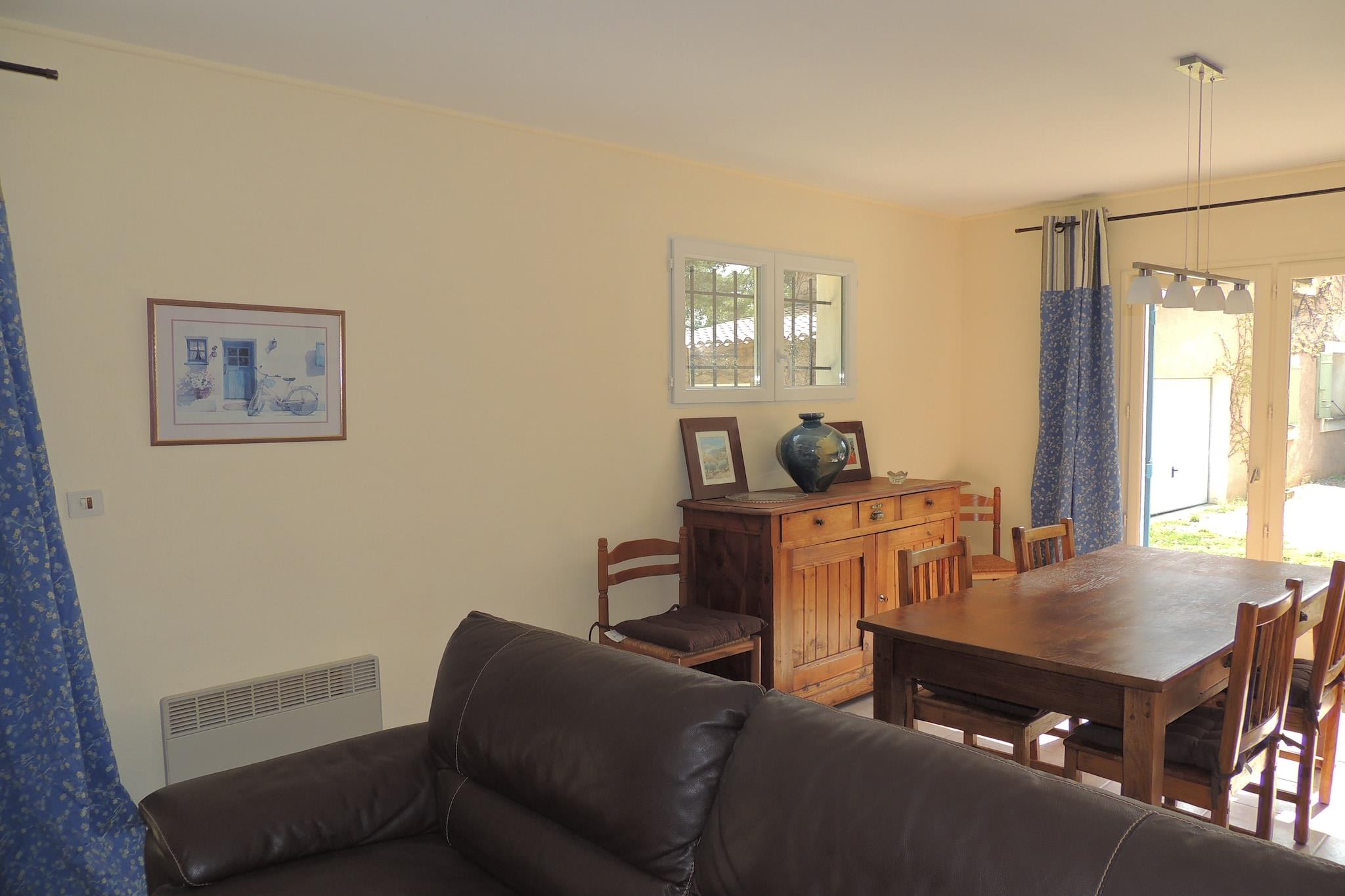 Pleasant little villa. Ideal place for a well-deserved rest. In the countryside, surrounded by pine trees, located behind the main house, this charming little single-storey villa offers the ideal setting for a pleasant stay in Provence. Peace and quiet guaranteed. The private swimming pool, which can be heated on request (EURO50/week), offers the opportunity to relax in all seasons. Dimensions: 8.5 x 4 m, flat bottom, depth 1.50 m, beach and steps. The fully equipped kitchen opens onto a pleasant covered terrace with a built-in barbecue. The villa has a living room, two bedrooms (one with a 1.60 m bed and two single beds), a bathroom with a walk-in shower and a separate toilet. Wine trails, cellar tours and tastings, hiking, cycling or horse riding... there are many varied activities to enjoy in this magnificent region, which is also famous for its summer cultural events (concerts, the Vaison Danse festival, proximity to Avignon and its festival, Orange and its Chorégies). Whether you're relaxing by the pool or exploring the region, this place will offer you a real escape.