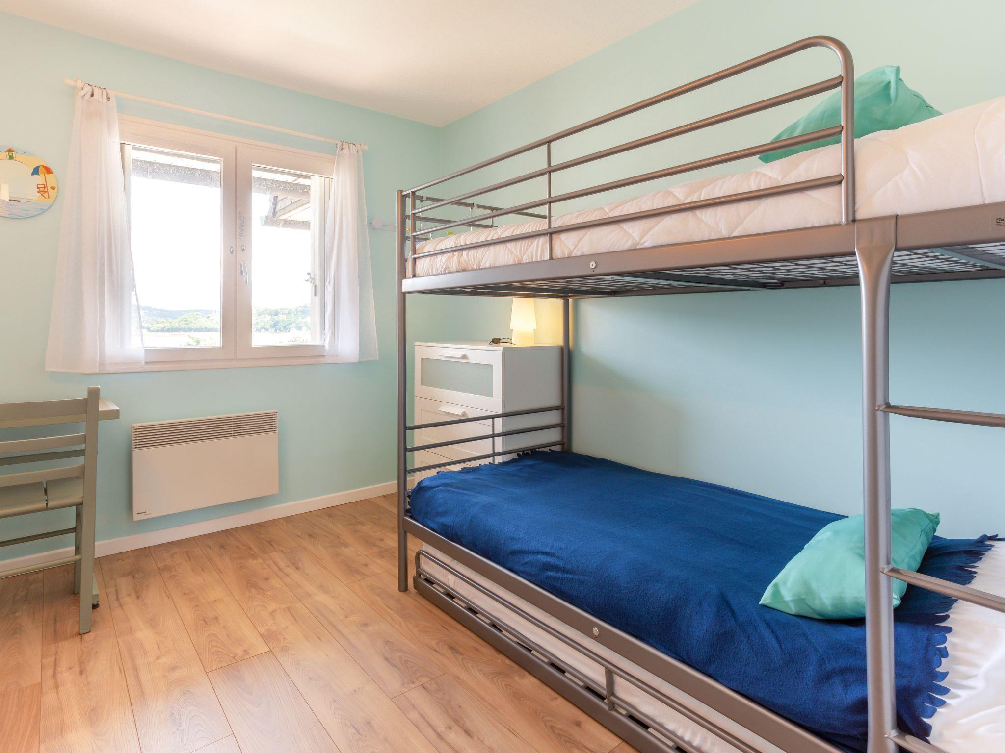 3-room apartment 60 m2 on 5th floor, west facing position. Living/dining room with panoramic window with TV (flat screen), electric shutters. Exit to the balcony, west facing position. 1 room with 1 french bed (160 cm, length 200 cm). Exit to the balcony, east facing position. 1 room with 1 x 2 bunk beds (90 cm, length 190 cm). Open kitchen (oven, dishwasher, 4 induction hot plates, toaster, kettle, microwave, freezer, electric coffee machine). Shower, sep. WC. Electric heating. Parquet floors. Small balcony 4 m2. Balcony furniture. Side view of the sea. Facilities: washing machine, dryer, iron, hair dryer. Internet (WiFi, free). Parking space n 617 (roofed). Please note: non-smokers only. Smoke alarm. 14004*04