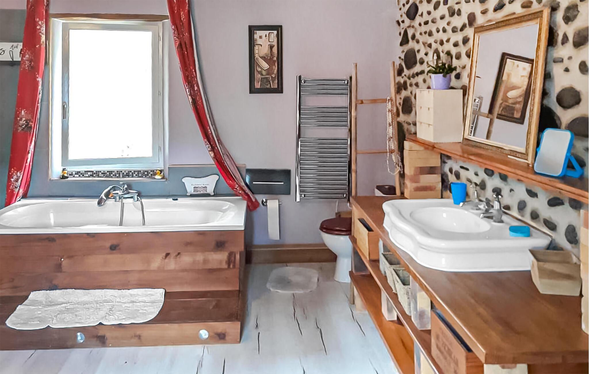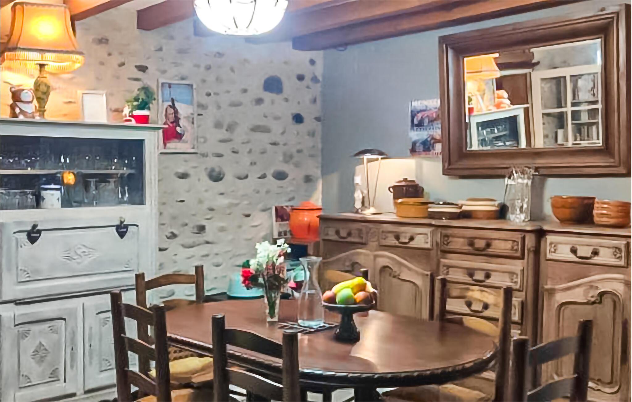 Verbringen Sie unbeschwerte Tage in diesem charmanten Ferienhaus im Herzen des Baskenlandes. Die Unterkunft vereint ein gemütliches Wohnambiente mit Platz zum Entspannen und einem schönen Außenbereich. Lassen Sie sich vom rustikalen Stil der Innenräume empfangen. Machen Sie es sich auf dem Sofa im Wohnzimmer bequem und genießen Sie den Blick nach draußen. Ein offener Kamin sorgt für wohlige Abende, während die Küche Platz zum gemeinsamen Kochen bietet. Der Essbereich im Landhausstil lädt zum geselligen Beisammensein ein.
