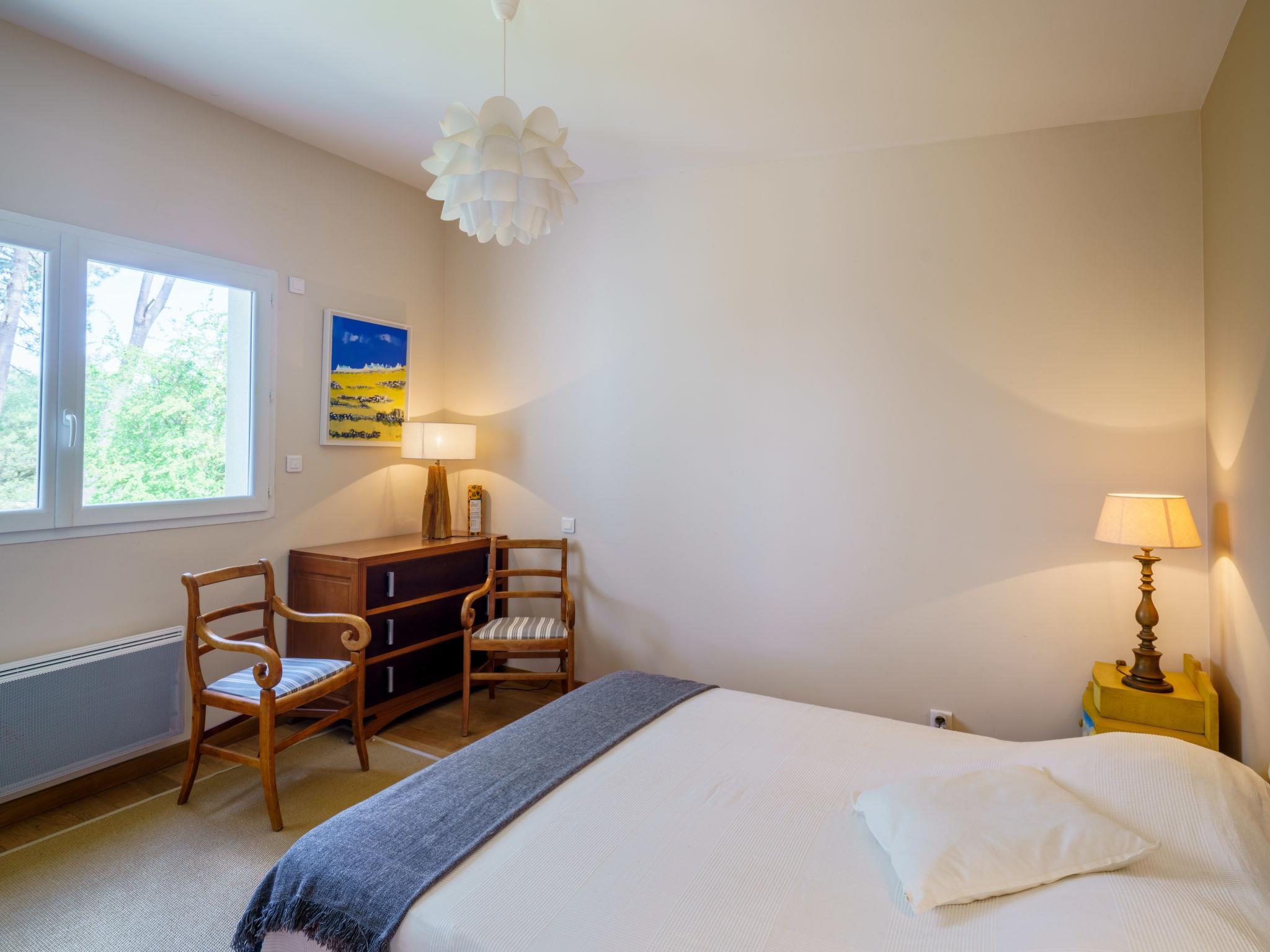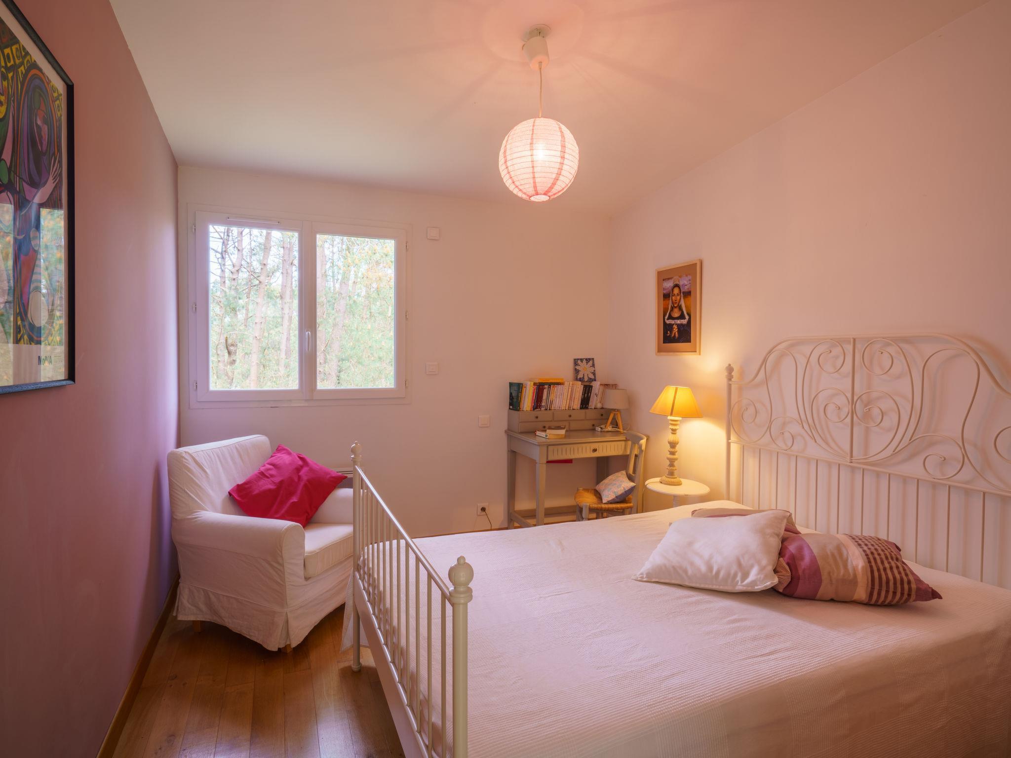 "Maison du bois du Kador", 7-room villa 200 m2, south facing position. Comfortable and modern furnishings: large living/dining room 70 m2 with panoramic window with open-hearth fireplace (only for decoration), electric shutters. Exit to the garden. 1 large room 12 m2 with 1 french bed (2 x 80 cm), shower, double hand-basin and electric shutters. Large, open kitchen (oven, dishwasher, 4 induction hot plates, toaster, kettle, microwave, electric coffee machine). Electric heating. Upper floor: 1 children's room 8 m2 with 1 bed (120 cm, length 190 cm). 1 room 10 m2 with 1 french bed (1 x 160 cm, length 190 cm), hand-basin and shower. 1 children's room 8 m2 with 1 bed (90 cm, length 190 cm). 1 room 12 m2 with 1 french bed (1 x 140 cm, length 190 cm). Large lounge with library and DVD. Bathroom, sep. WC, double hand-basin. Electric heating. Terrace furniture, deck chairs. Facilities: washing machine, dryer, iron, hair dryer, logs (extra). Parking (3 cars). Please note: suitable for families. Non-smoking house. Maximum 1 pet/ dog allowed. Smoke alarm.