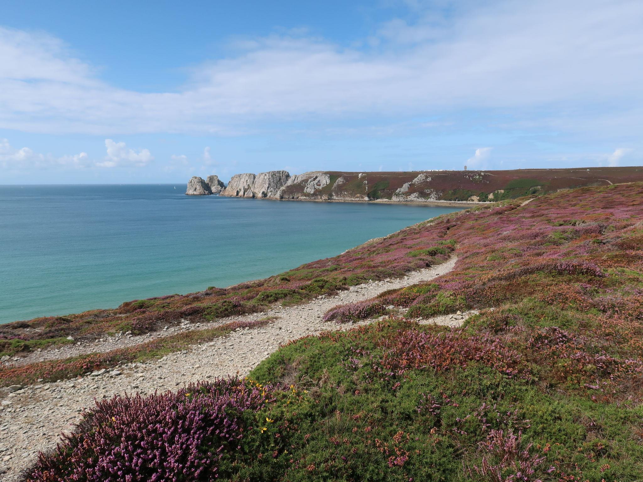 Modern, beautiful, comfortable single-family house "du bois du Kador". Above Port de Morgat, in the district of la pointe du Kador, 450 m from the sea, 450 m from the beach. Private: property 6'000 m2, large garden 3'000 m2 (not fenced) with lawn and trees. In the house: central heating system. Parking (for 4 cars) on the premises. Shop 1 km, grocery 1 km, restaurant 1 km, bus stop 2 km, sandy beach "Bois de Kador" 450 m, diving center 1.5 km, outdoor swimming pool 2 km. Sports harbour 1 km, sailing school 1.5 km. Nearby attractions: Plage de l'ile vierge 3 km, Cap de la chèvre 7 km, Pointe de Pen Hir 15 km, Camaret 13 km, Landévennec 22 km, Locronan 38 km. Please note: car recommended. The owner does not accept any groups.