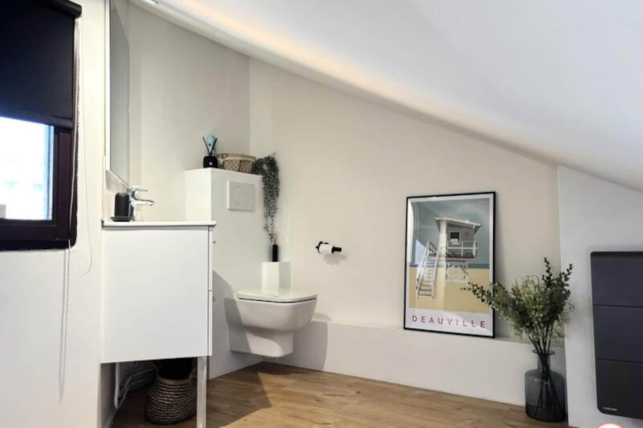 Overlooking the serene waters of Deauville's iconic marina, The White Pearl offers a harmonious blend of modern luxury and timeless charm. This beautifully renovated triplex apartment invites you to experience the best of Normandy, with its tranquil terrace views and a location just steps from the beach and vibrant town center. Whether you're sipping coffee on the terrace as the marina comes to life or strolling to the nearby casino, every moment here feels effortlessly elegant. Designed to accommodate up to six guests, this stylish retreat spans three thoughtfully arranged levels. The lower level features a bright living room with a Smart TV, opening onto a terrace with garden furniture, perfect for alfresco dining or simply soaking in the marina views. A fully equipped kitchen, complete with modern appliances, connects to a cozy dining area for intimate meals. On the first floor, you'll find a serene bedroom with a queen-size bed overlooking the marina's courtyard, a high-quality fold-out bed, and a sleek walk-in shower room. The attic-level bedroom, accessible via a charming staircase, offers a queen-size bed and a private shower area, creating a cozy haven under the eaves. Step outside, and you'll find yourself just a two-minute walk from Deauville's golden sands and five minutes from its bustling town center, brimming with boutiques, restaurants, and cultural delights. The nearby casino and Place Morny add a touch of glamour to your stay, while the train station is conveniently within a 10-minute walk. For those arriving by car, a shared parking lot is available, ensuring ease of access throughout your visit. Whether you're here to unwind by the sea, explore the historic charm of Normandy, or indulge in Deauville's vibrant lifestyle, The White Pearl is your perfect coastal escape. Let the gentle rhythm of the marina and the allure of this enchanting town create memories you'll treasure forever.
