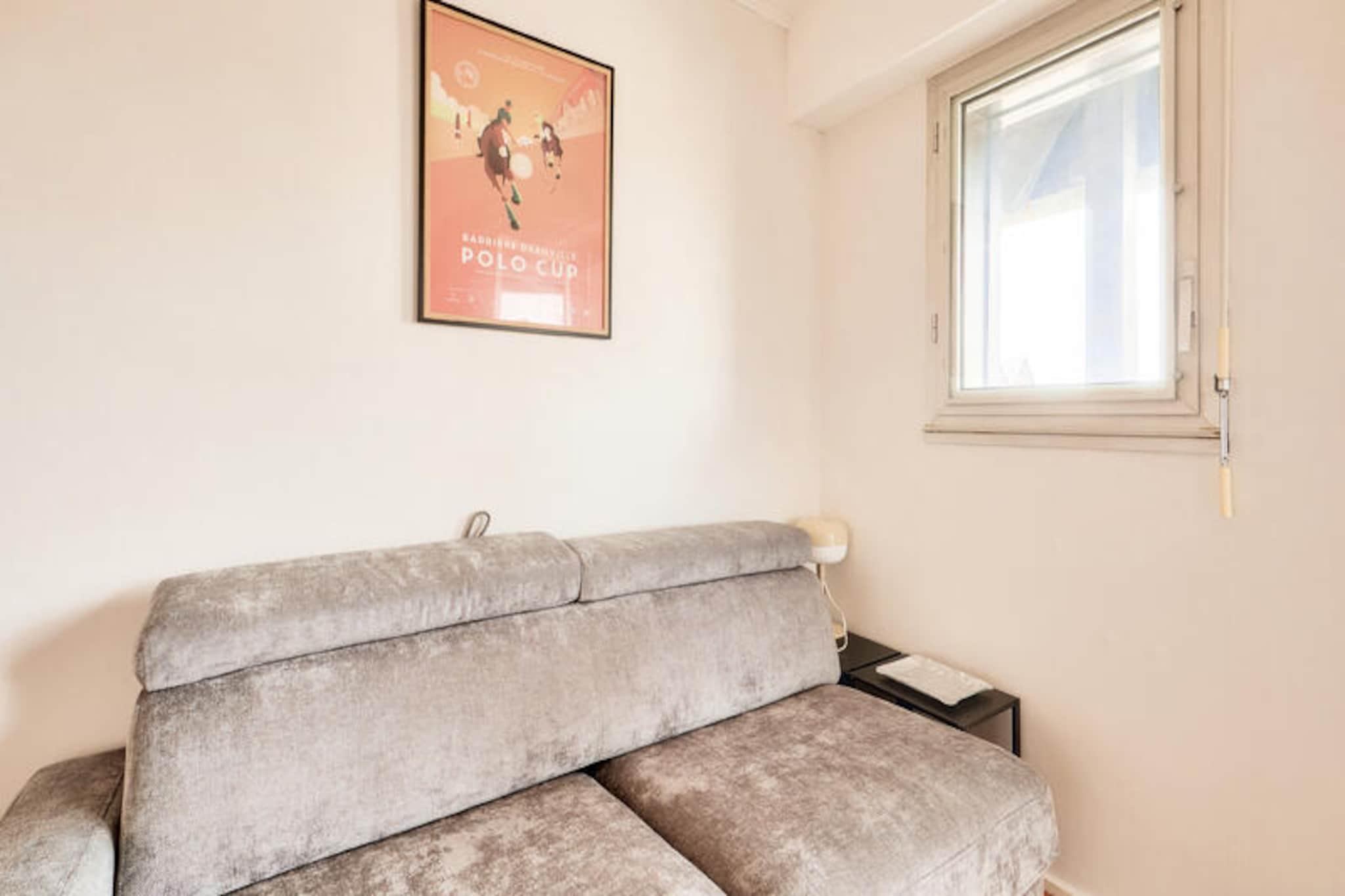 In the heart of Deauville, where the charm of Normandy meets modern sophistication, this beautifully renovated studio apartment offers the perfect setting for a romantic getaway. Overlooking the vibrant Place Morny, the balcony provides a front-row seat to the lively atmosphere of this iconic seaside town, blending elegance and relaxation in every moment. Whether you're sipping your morning coffee or enjoying the golden hues of a sunset, the view is simply unforgettable. Inside, the studio is thoughtfully designed to maximize comfort and style. The living area features a plush sofa bed that ensures restful nights, while the fully equipped kitchenette, complete with a Nespresso machine, invites you to prepare delightful meals or snacks. The bathroom is modern and functional, offering a refreshing shower to start or end your day. Every detail, from the cozy dining nook to the tasteful decor, has been curated to make your stay as enjoyable as possible. Step outside, and you'll find yourself immersed in the best of Deauville. Stroll to the nearby shops, indulge in the local gastronomy, or take a leisurely walk to the famous beach and boardwalk. The town's rich cultural heritage, including its renowned film festival and horse racing events, ensures there's always something to explore. With Wi-Fi access to keep you connected and the option to bring your furry friend along, this studio is a versatile choice for couples seeking both adventure and tranquility. Choose this charming retreat for your next escape and experience the timeless allure of Deauville, where every moment feels like a scene from a classic French film.