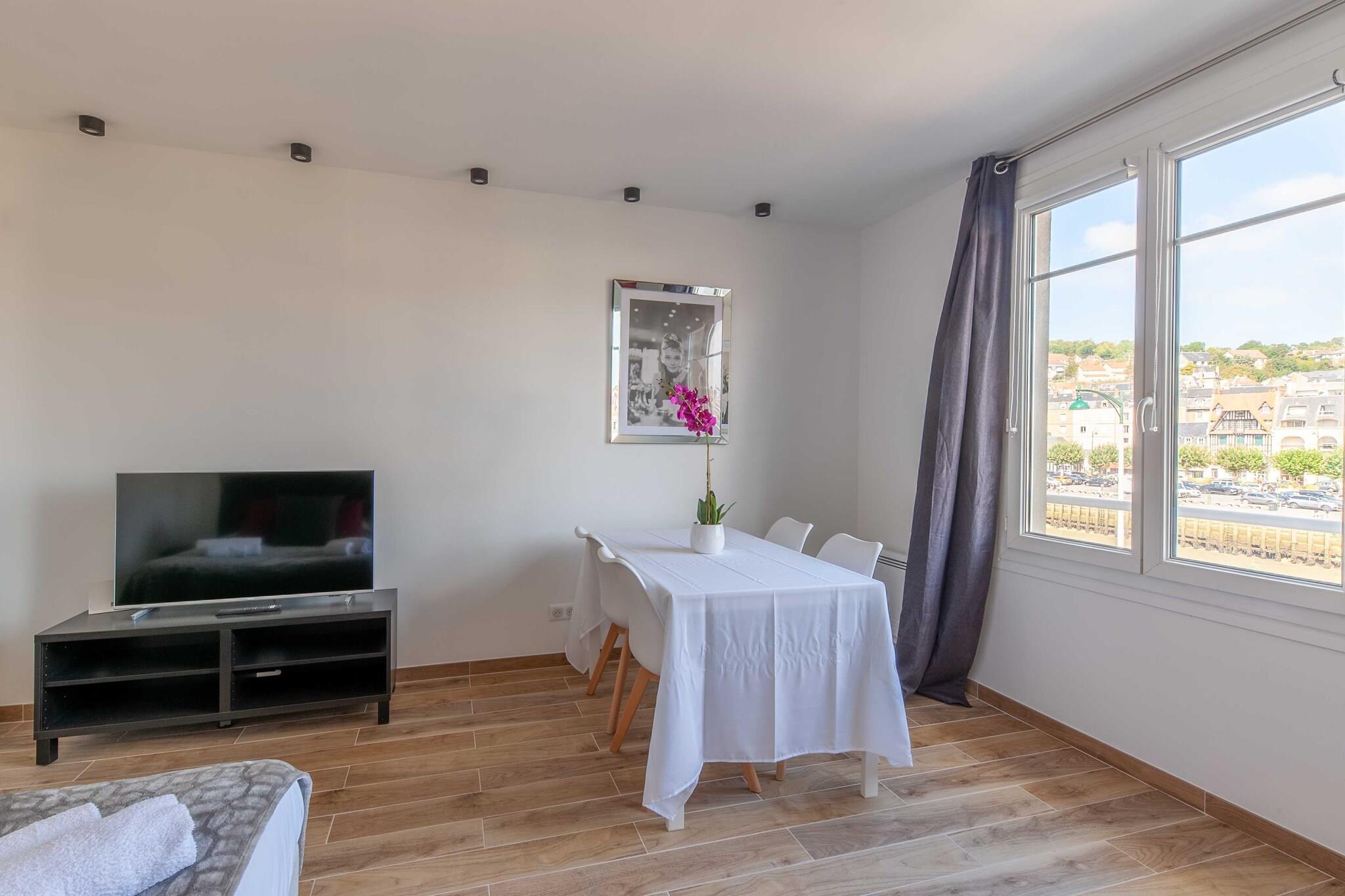 Nicely renovated apartment for 4 people. Large studio with 1 bed (2 people) and a sofa bed for 2 additional people. The location of the flat will allow you to move quickly and easily: BY PLANE: Deauville Saint-Gatien Airport (8 km / 15 min) BY TRAIN: Deauville/Trouville train station (10 minutes walk) BY CAR: A32 motorway (7,5 km / 10 min) BY CAR: A13 motorway (10 km / 12 min) BY CAR: Paris (200 km / 2h15) BY CAR: Caen (45 kms / 40 min) Deauville and its surroundings offer a wide range of activities for all tastes. Here are three popular activities near Deauville: Beach and Promenade des Planches: One of the main attractions in Deauville is its beautiful sandy beach. You can relax in the sun, swim in the sea, or take long walks along the famous Promenade des Planches, lined with beach cabins named after celebrities. Deauville-La Touques Racecourse: If you're a horse racing enthusiast, don't miss the opportunity to attend a race at the Deauville-La Touques Racecourse. This prestigious racetrack hosts world-renowned equestrian events. Casino Barrière de Deauville: The Casino Barrière de Deauville is a must-visit entertainment venue. You can try your luck at casino games, attend shows, or simply enjoy the lively atmosphere of the casino. These activities are just a sample of what Deauville and its surroundings have to offer. You can also explore the town itself, visit museums, play golf, or savor delicious Norman cuisine in local restaurants. Deauville is a destination rich in entertainment for travelers.