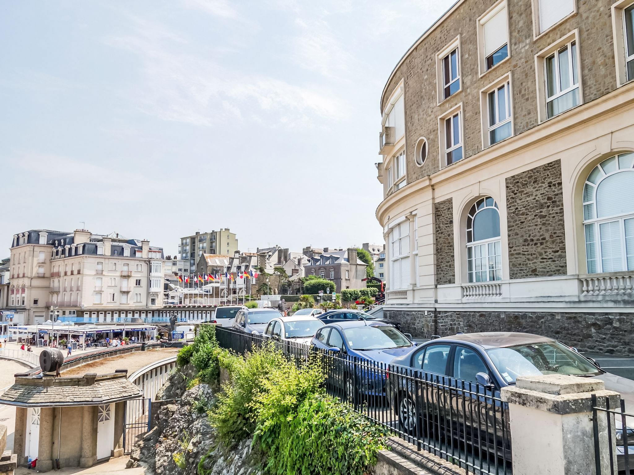 Residence "La Plage". In the centre of Dinard, in a central position, 20 m from the sea, direct access to the beach. Public parking on the road. Shop 100 m, grocery 270 m, supermarket 450 m, shopping centre 4 km, restaurant 80 m, bar 80 m, bakery 280 m, café, pedestrian zone 10 m, bicycle rental 300 m, bus stop "Le Gallic" 180 m, railway station "SNCF de Saint Malo" 12.7 km, ferry "gare maritime du Naye" 12.4 km, sandy beach "L'Ecluse" 20 m, outdoor swimming pool 300 m, indoor swimming pool 200 m, thermal baths "Thalasso de Dinard" 1.9 km. Sports harbour 1.5 km, golf course (18 hole) 7 km, sailing school 600 m, tennis 2 km, indoor tennis centre 2 km, minigolf 2.7 km, riding stable 2.5 km, sports centre 2.2 km, walking paths from the house 10 m. Nearby attractions: Saint Malo 12 km, Dinan 22 km, Cancale 22 km, Cap Fréhel 35 km, Mont Saint Michel 60 km. The keys‘ handover takes place by the agency Interhome in Dinard, 1 km.