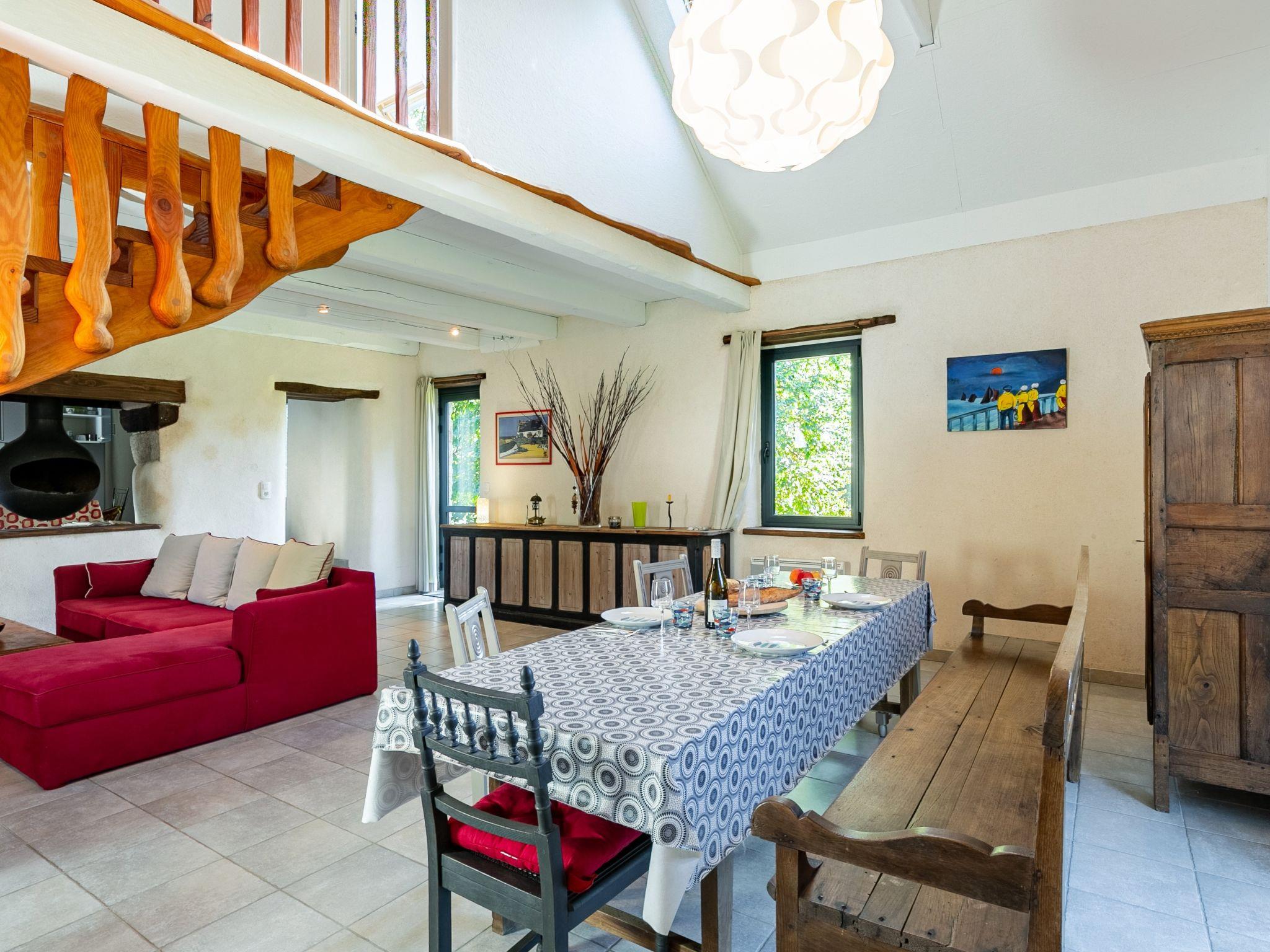 Beautiful, cosy country house "Les Trois Baudets", surrounded by trees and fields. 3 km from the centre of Elliant, 5.5 km from the centre of Rosporden, outside the resort, 18.5 km from the centre of Concarneau, 19 km from the sea, 19 km from the beach, in the countryside. For shared use: property 4 ha with trees, meadow. Private: garden 400 m2 with wildlife garden and trees. In the house: storage room for bicycles. Parking on the premises. Supermarket 3 km, bus stop "Salle des Sports" 2.6 km, sandy beach "Les Sables Blancs,Concarneau" 19 km. Sports harbour 21 km, golf course (18 hole) 20 km, surf school 19 km, sailing school 19 km. Nearby attractions: Quimper 18 km, Tregunc 19 km, Pont-Aven 20 km, Pointe de Trevignon 27 km. On the estate animal husbandry. Please note: the owner lives on the same property.