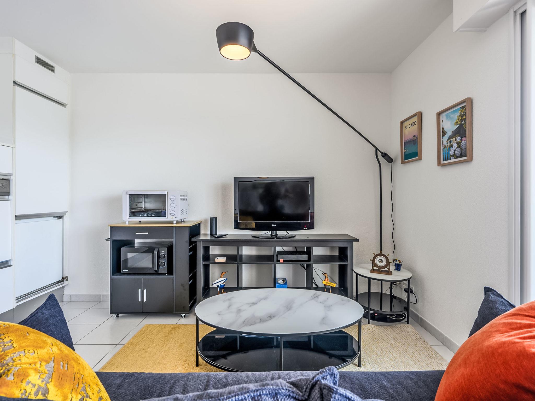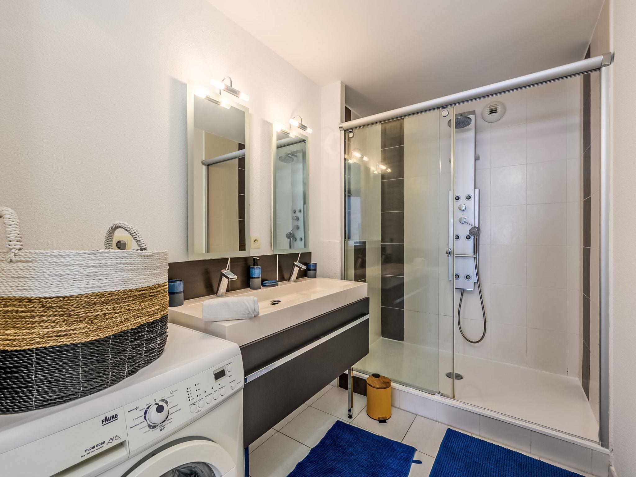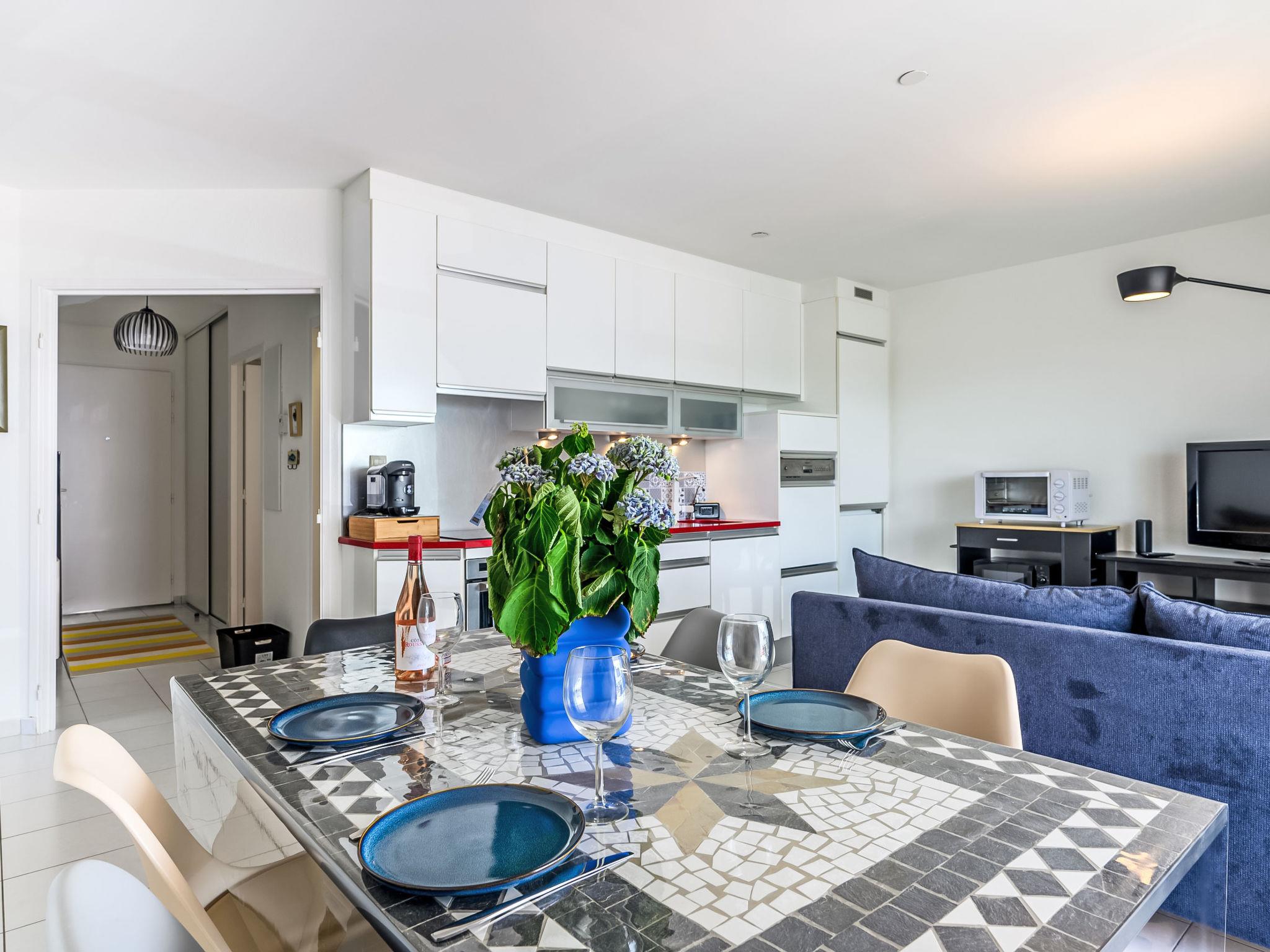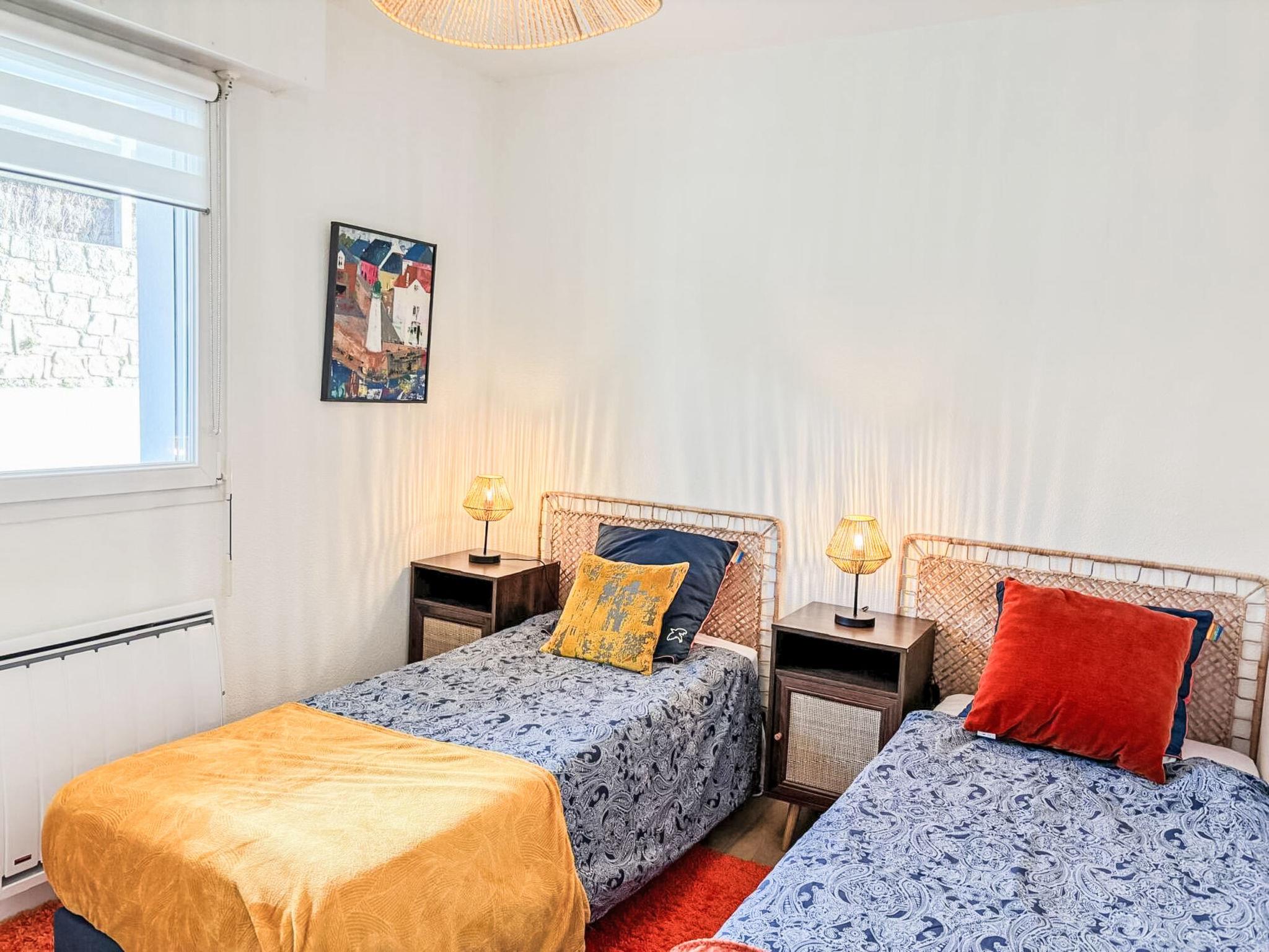 "Résidence Amiral", 3-room apartment 56 m2, on the upper ground floor. Object suitable for 4 adults. Comfortable furnishings: living/dining room with 1 double sofabed (1 x 140 cm, length 190 cm), TV (flat screen). Exit to the terrace. 1 room with 1 french bed (1 x 160 cm, length 200 cm). 1 room with 2 beds (80 cm, length 200 cm). Open kitchen (3 hot plates, mini-oven, dishwasher, toaster, kettle, microwave, freezer, electric coffee machine, Capsules for coffee machine (Tassimo) extra, raclette grill). Shower, sep. WC. Electric heating. Terrace 12 m2. Terrace furniture. Facilities: washing machine, dryer. Internet (WiFi, free). Please note: smoke alarm. Offer by a private individual according to Art. 155, IV of CGI. 56055 000049 7Q