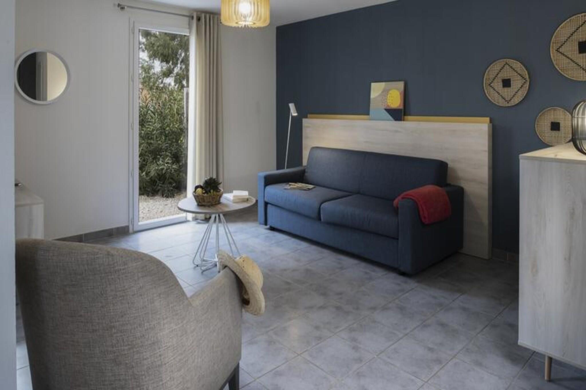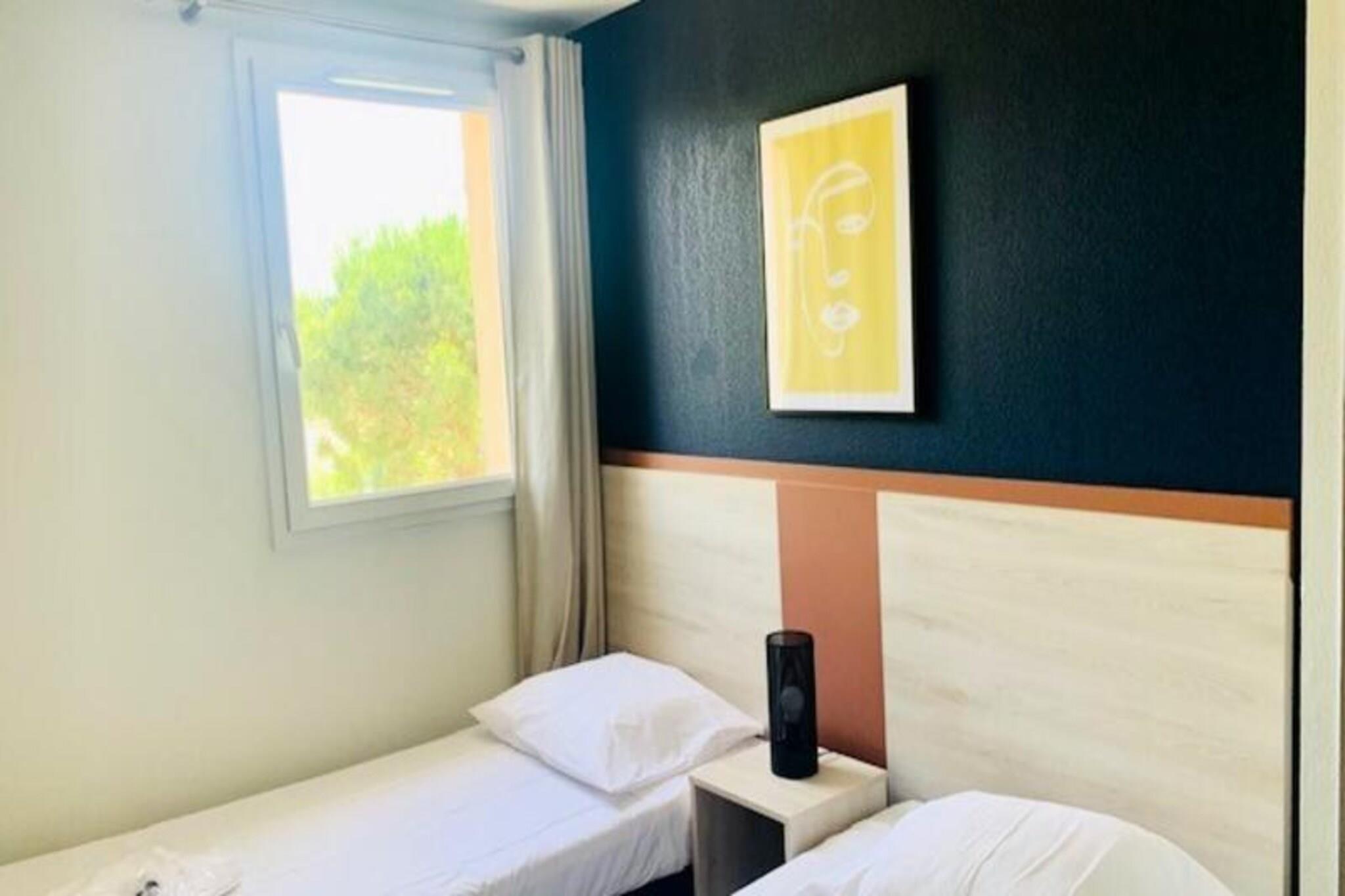 Located two kilometers from the small village of Fabrègues, a few minutes from Montpellier and the wild beaches of Frontignan, the Residence Le Domaine du Golf*** is nestled in the heart of a vineyard, in an 11-hectare park. You will enjoy a serene and quiet setting conducive to relaxation. Ideal place of residence to discover the heritage and charm of Languedoc, its beaches and its gastronomy. The Residence offers 218 southern-style houses spread out in the heart of a magnificent landscaped estate. Pedestrian paths mark the area and allow you to reach the houses in complete tranquility. You can enjoy a large 550m² swimming pool with a paddling pool as well as an air-conditioned fitness room. 3-Room Villa 6 People Comfort Air-conditioned with terrace: On the ground floor: Living room with sofa bed Kitchen area separate WC Terrace Upstairs: 1 bedroom with 1 double bed 1 bedroom with 2 single beds Bathroom with WC Wifi access - included (2 to 4 codes depending on accommodation) - additional code: 20€ / code / week Pets allowed - only 1 allowed per accommodation (1st and 2nd categories prohibited) 10€ / animal / night; 50€ / animal / week. Notify at time of booking. Barbecue - 8EURO/day or 35EURO/week - Depending on availability Charging station for electric cars - prices on site Deposit (additional) - 650 Final cleaning fee - 55€ at 95€ in rental formula - included in hotel formula - final cleaning kitchen area: 40€ Baby Kit - loan of baby kit (bed + high chair, child under 2 years old) - pre-reservation required and subject to availability Bed linen - included (beds not made) - change of sheets: 10€ / kit (unmade beds) Towels - 10€ / kit / person (1 bath towel + 1 hand towel) Parking - outdoor parking included (at the entrance to the residence) Swimming pool - outdoor swimming pool open from mid-April to mid-October depending on weather conditions Breakfast service - 12€ / adult; 9€ / child under 12 years old - Free for children under 4 years old Television - included