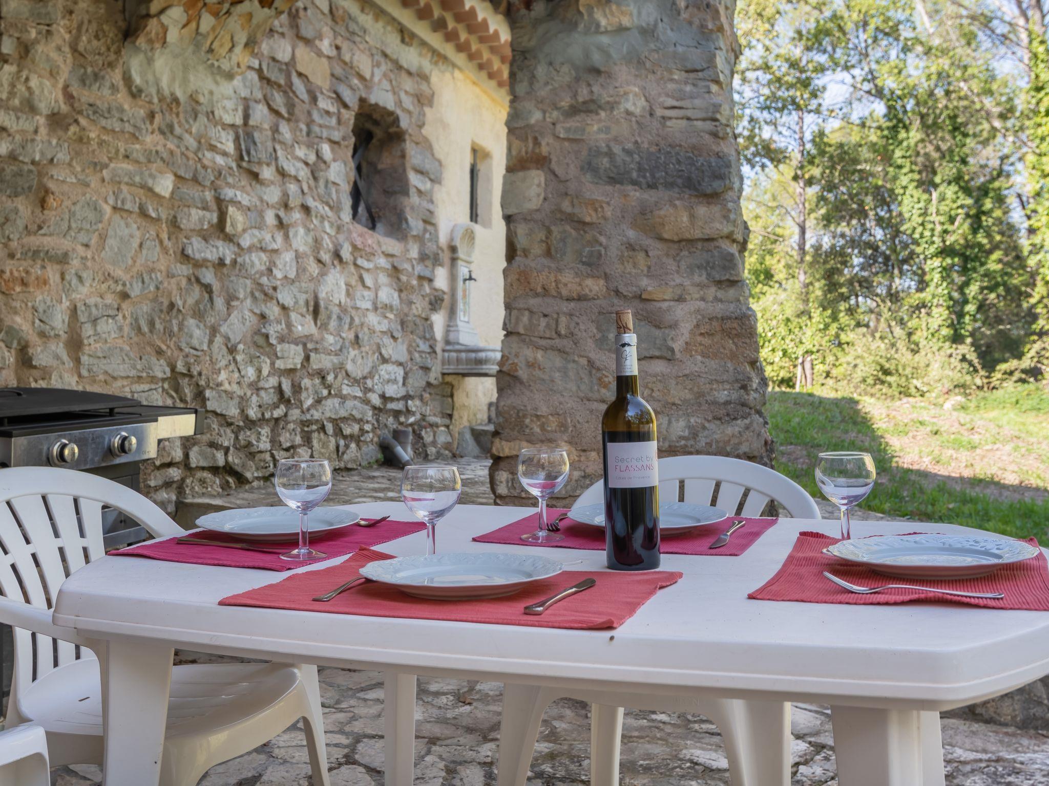 Beautiful, rustic cottage "Carpanel", from the 19th century, surrounded by trees and fields. 2.1 km from the centre of Flassans-sur-Issole, 16 km from the centre of Brignoles, 52 km from the centre of Saint Tropez, in a secluded, elevated position on top of a hill, 50 km from the sea, in the countryside. Private: natural state property 13'000 m2 with wildlife garden and trees, swimming pool round (9 m diameter, depth 150 - 180 cm, seasonal availability: 01.Jan. - 31.Dec.). Outdoor shower, terrace. Motor access (300 m via unmade road). Parking on the premises. Supermarket 4 km, restaurant 2.1 km, bakery 2.1 km, bus stop 2.5 km, railway station "Pignans" 12 km. Golf course (18 hole) 14 km. Nearby attractions: Gorges du Verdon, Grottes de Villecroze, Cassis. Well-known lakes can easily be reached: Lac de Sainte Croix, Lac de Carcès. Hiking paths: La Sainte Beaume.