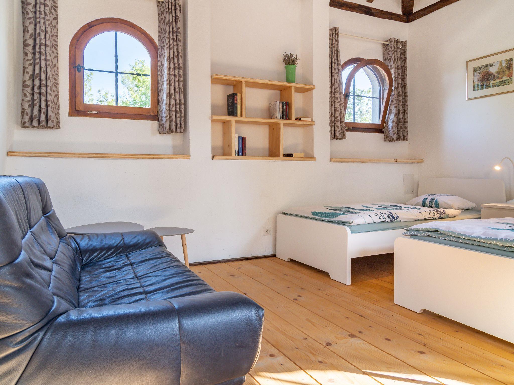 "Carpanel", 5-room house 140 m2 on 2 levels. Rustic and tasteful furnishings: living room with TV and wood-burning stove. Open dining room with dining table. Exit to the terrace. 1 room with 2 beds (90 cm, length 200 cm). 1 room, on 2 levels with 1 bed (90 cm, length 200 cm), 1 sleeping facility (90 cm, length 200 cm). 1 room with 1 double bed (2 x 90 cm, length 200 cm), shower/WC. Open kitchen (4 hot plates, oven, dishwasher, toaster, kettle, microwave, freezer, electric coffee machine). Shower/WC, double hand-basin. Electric heating. Upper floor: (steep stair), 1 room with 2 beds (90 cm, length 200 cm). 2 terraces partly covered. Terrace furniture, barbecue, deck chairs (8). Facilities: washing machine. Internet (WiFi, free). Maximum 1 pet/ dog allowed.