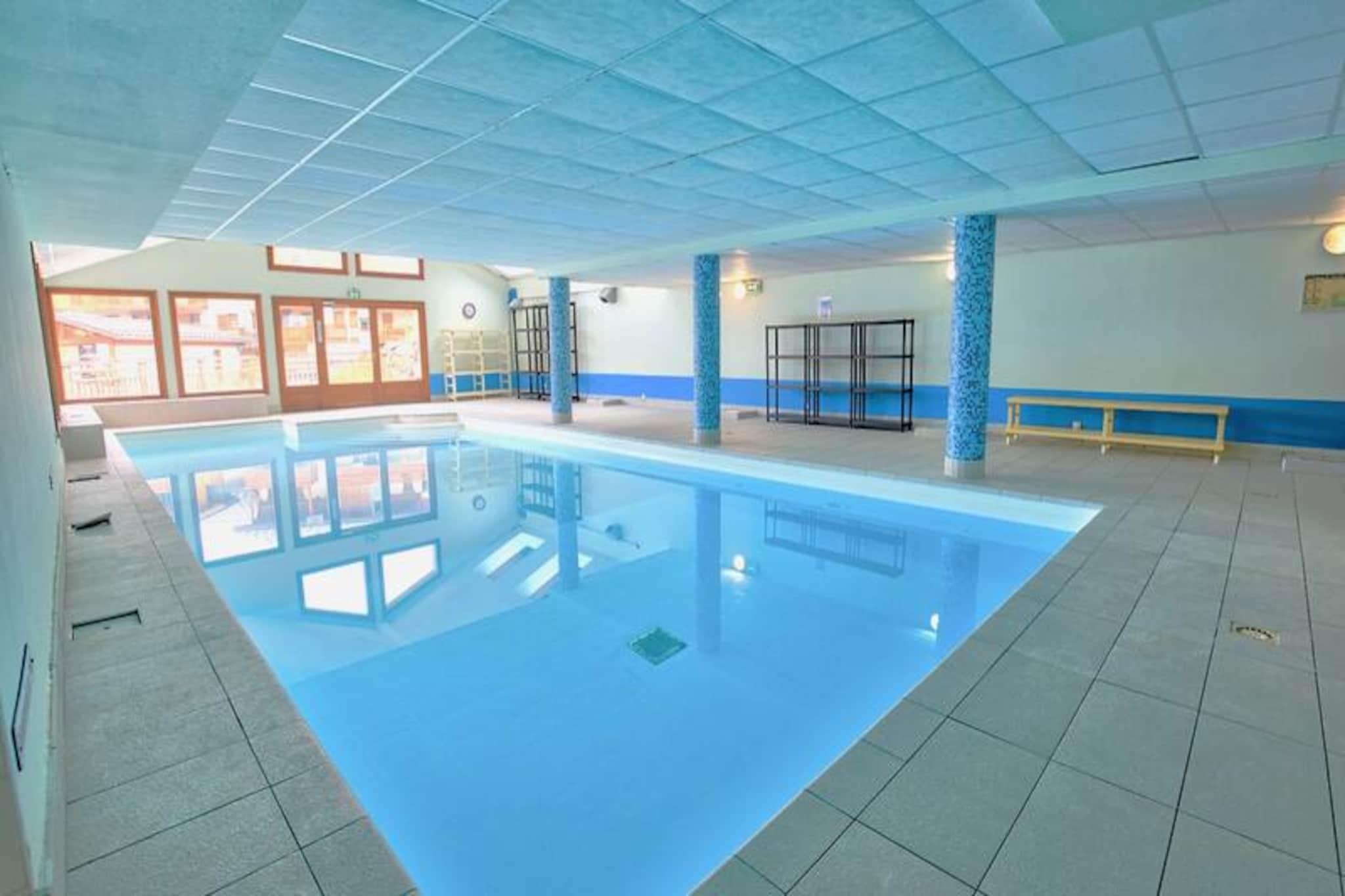 In the heart of the French Alps, where the charm of traditional Alpine villages meets the thrill of world-class skiing, lies Les Chalets des Evettes. This cozy residence, complete with a heated swimming pool, is perfectly positioned at the foot of the Espace Diamant ski slopes, offering unparalleled access to 192 km of pristine trails. Whether you're a seasoned skier or a beginner, the nearby ski school and varied terrain ensure an unforgettable winter adventure. The picturesque village of Flumet, just 3 km away, adds to the allure with its authentic atmosphere and convenient amenities. \n\nThe apartment itself is a warm and inviting retreat, designed to comfortably accommodate up to four guests. Its mountain-inspired decor creates a cozy ambiance, while the south-facing balcony offers stunning views of the surrounding peaks. The open-plan kitchen is fully equipped with modern appliances, including induction hobs, a combination microwave oven, and a dishwasher, making it easy to prepare meals after a day on the slopes. The living area, complete with a pull-out sofa bed and television, provides a perfect space to unwind, while the separate double bedroom ensures privacy and comfort. Additional amenities such as a ski locker and private parking add to the convenience.\n\nBeyond the slopes, the region transforms into a summer paradise. Hiking trails and mountain biking circuits start right from the residence, and the Evettes chairlift offers breathtaking panoramic views of the Aravis mountain range. Just 3 km away, Flumet Lake invites families to enjoy its leisure center, complete with mini-golf, play areas, and sports facilities. For those seeking cultural and natural wonders, Megève, Chamonix, and Annecy are all within an hour's drive, offering everything from elegant dining to awe-inspiring landscapes.\n\nWhether you're chasing powder in winter or exploring alpine trails in summer, Les Chalets des Evettes is your gateway to the best of the French Alps. With its blend of comfort, convenience, and stunning surroundings, it promises a holiday filled with cherished memories.