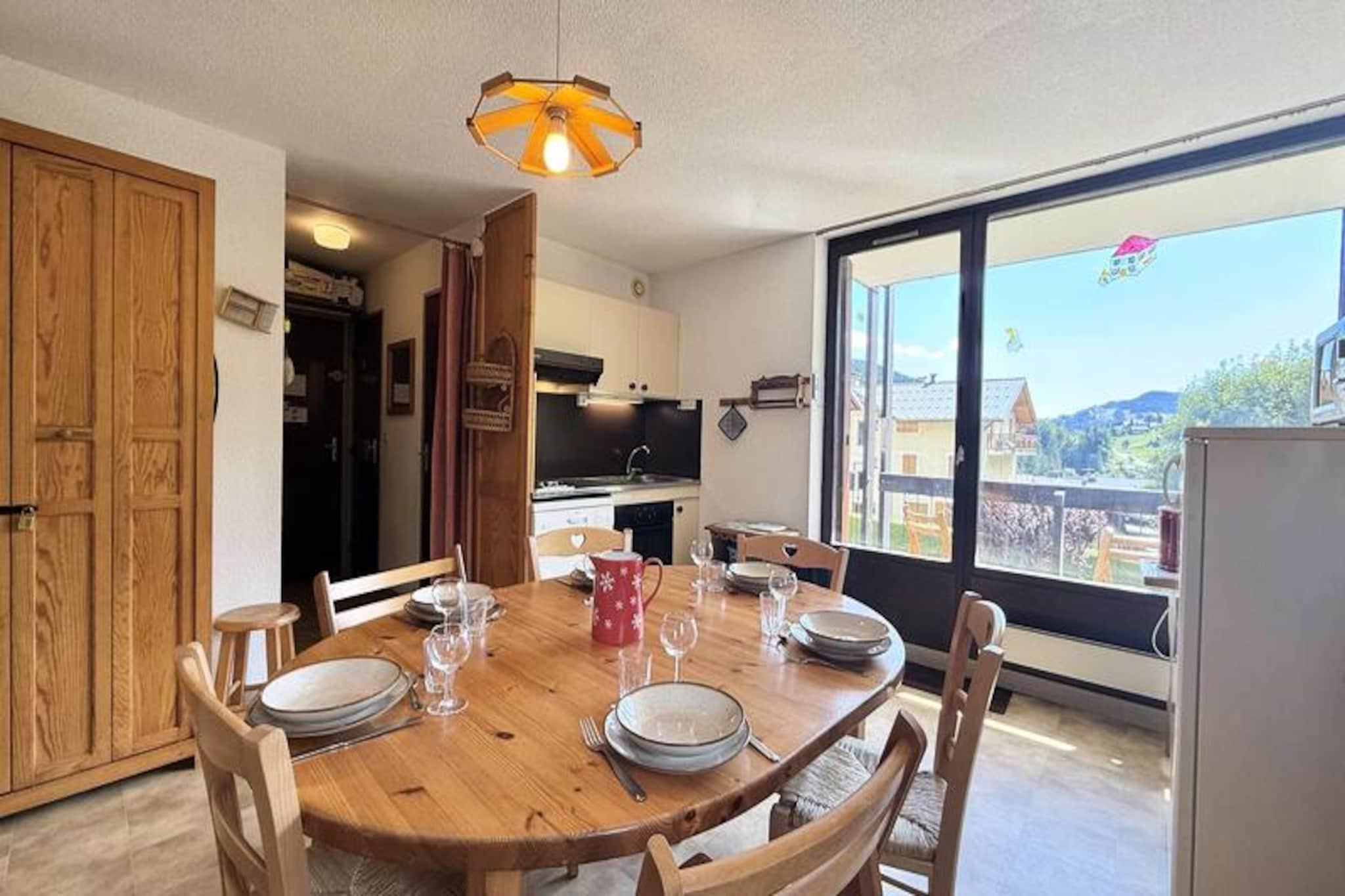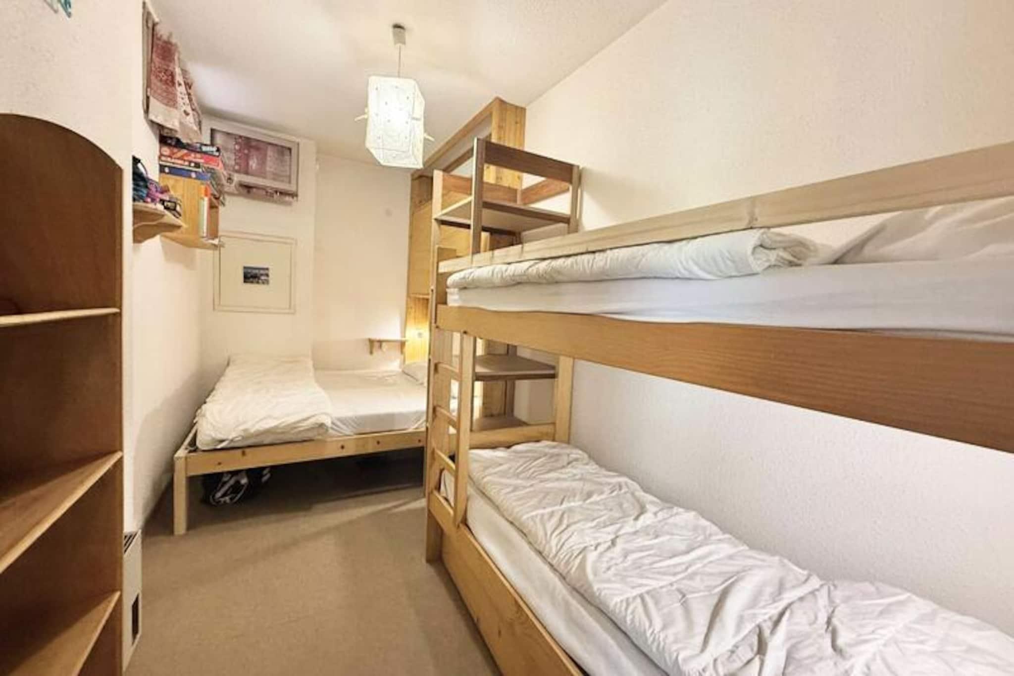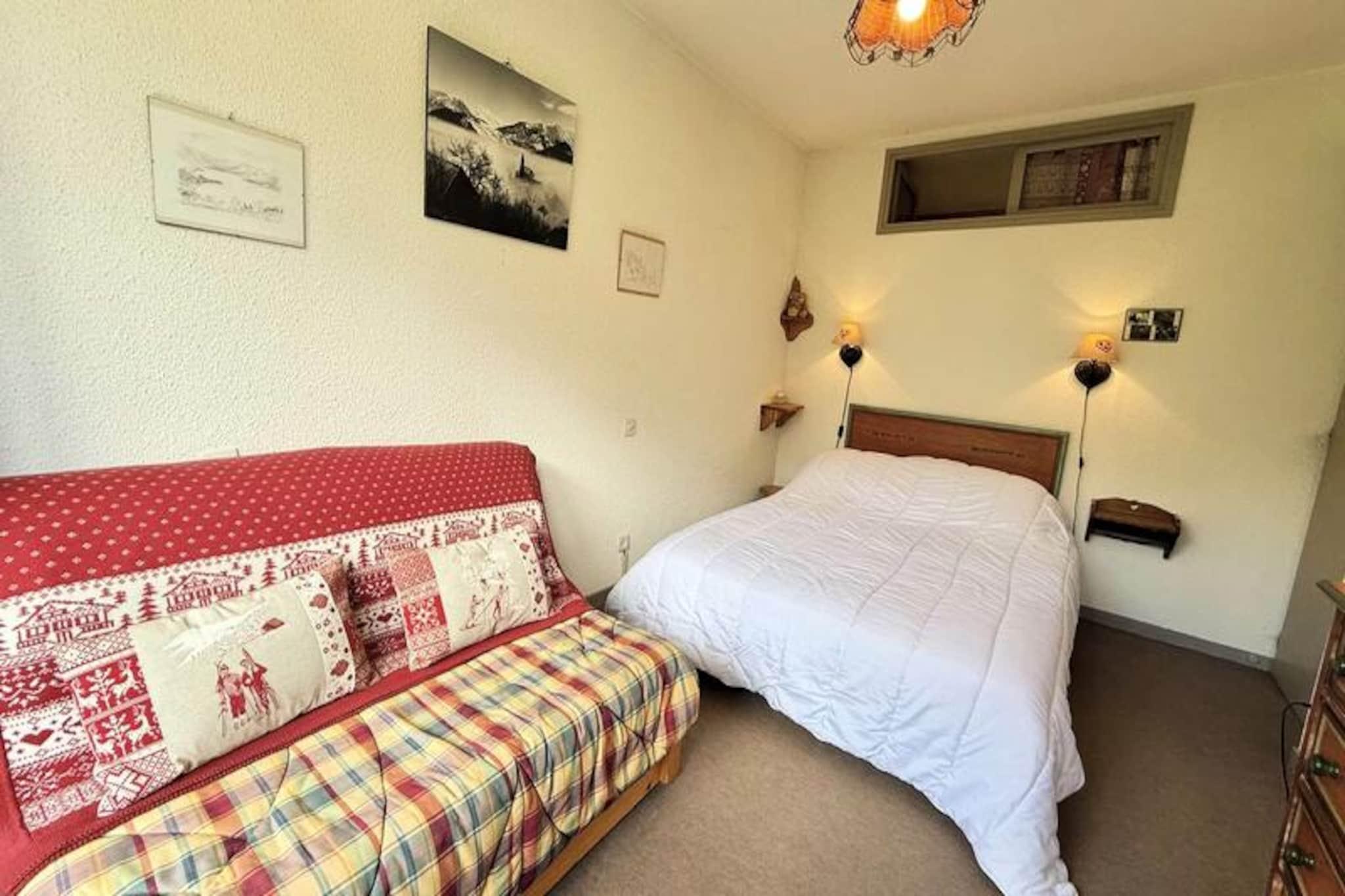 In the heart of the French Alps, this charming 35 m² apartment offers a cozy retreat for your mountain getaway. Situated on the first floor with elevator access, it combines convenience with a warm alpine ambiance. Whether you’re visiting in winter or summer, this property is perfectly positioned for exploring the breathtaking landscapes of the region. Imagine waking up to crisp mountain air and stepping out onto your private balcony to take in the serene surroundings. Inside, the apartment is thoughtfully designed to accommodate up to six guests. The sleeping alcove features two bunk beds (note: the top bunk is not suitable for children under 6) and two single beds that can be joined together, while the living room includes a comfortable sofa bed. A fully equipped kitchenette allows you to prepare hearty meals after a day of adventure, and the separate bathroom and toilet ensure added convenience. Additional amenities include a ski locker, a storage unit, and private parking with an available space, making it an ideal choice for families or small groups. This property’s location is a true highlight. A short walk takes you to the village center and the nearby lake, perfect for leisurely strolls or picnics. In winter, a free shuttle bus provides easy access to the ski lifts and even the charming village of Saint-Nicolas La Chapelle. For those seeking additional services, options such as bed linen, towels, Wi-Fi, and baby kits are available upon request, ensuring a comfortable and stress-free stay. Whether you’re here to carve through snowy slopes, hike scenic trails, or simply relax in the tranquil alpine setting, this apartment offers everything you need for an unforgettable holiday. With its blend of comfort, practicality, and proximity to key attractions, it’s the perfect base for your next adventure in the French Alps.