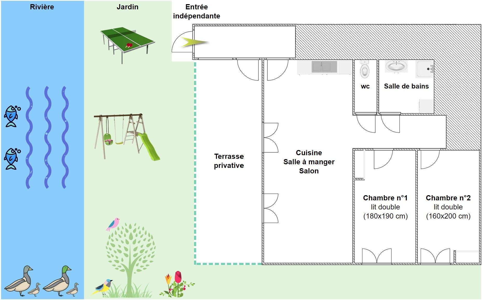 Fully equipped kitchen, induction hob, pots, plates, cutlery, electric coffee maker, oven, microwave, toaster, kettle, raclette and fondue machine, fridge-freezer, dishwasher, washing machine, flat-screen TV (TNT: 27 free French channels), sofa, garden furniture, barbecue.