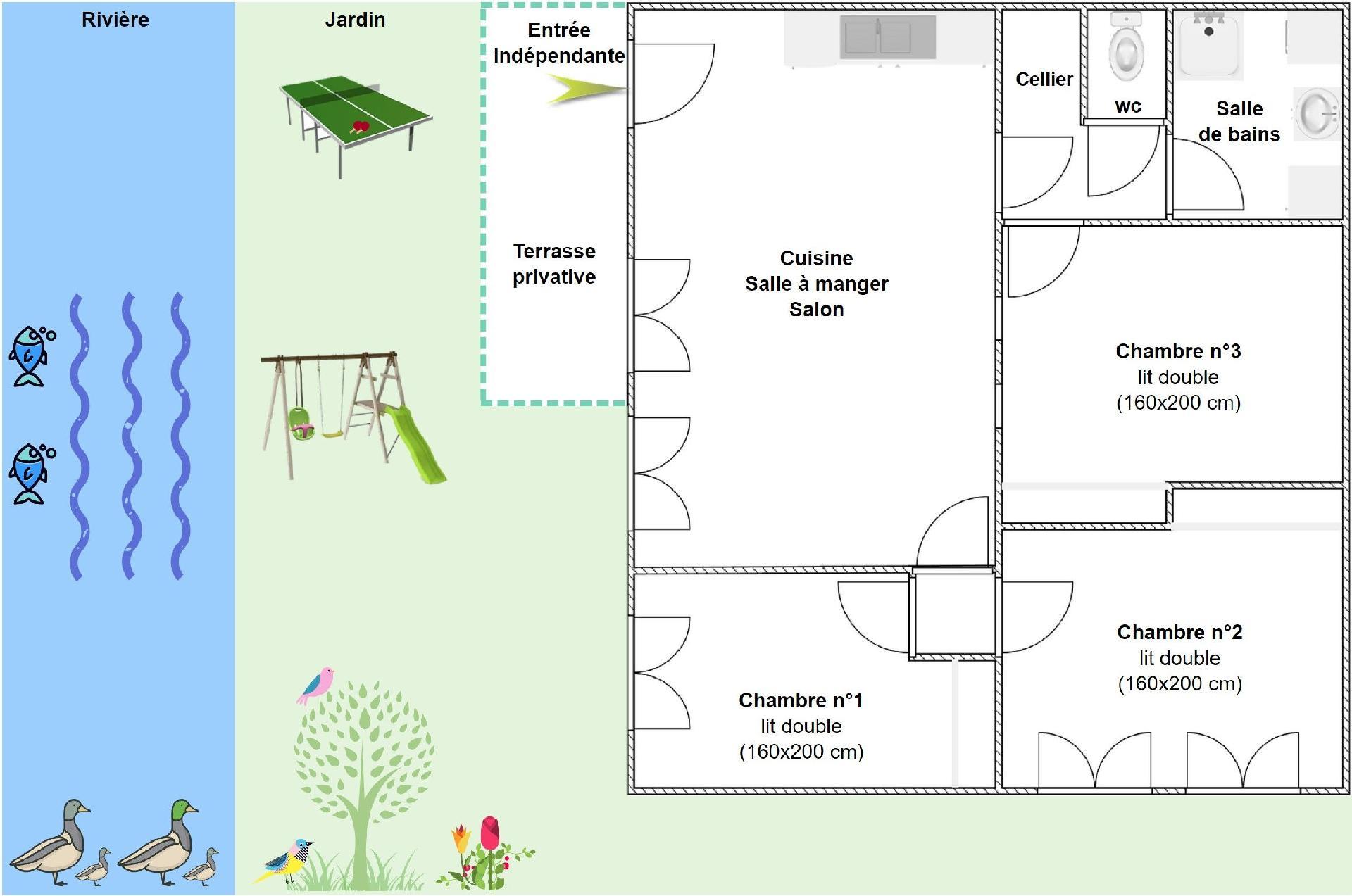 Fully equipped kitchen, gas hob, pots, plates, cutlery, electric coffee maker, oven, microwave, toaster, kettle, raclette and fondue machine, fridge-freezer, dishwasher, washing machine, flat-screen TV (TNT: 27 free French channels), garden furniture, barbecue.