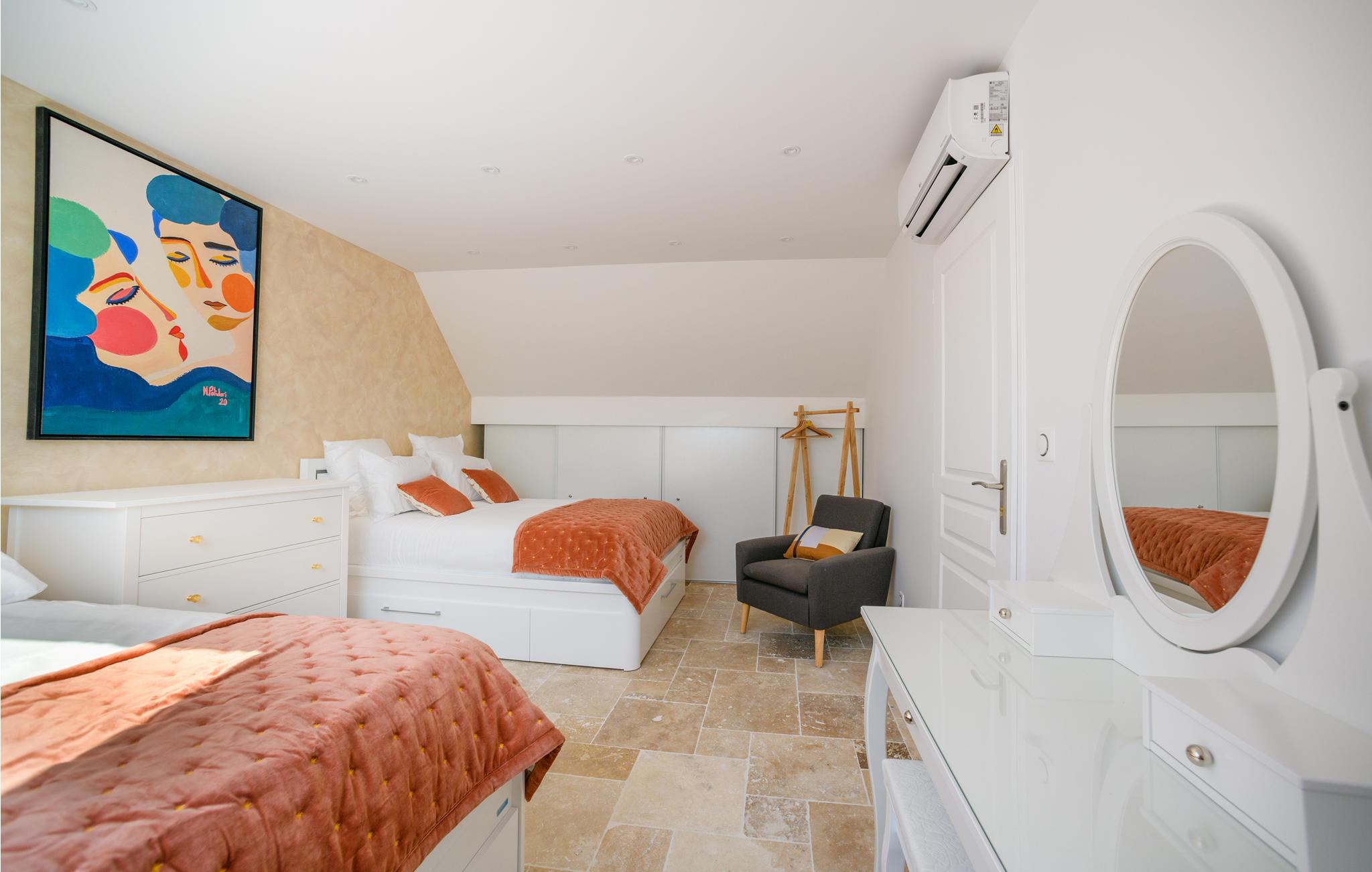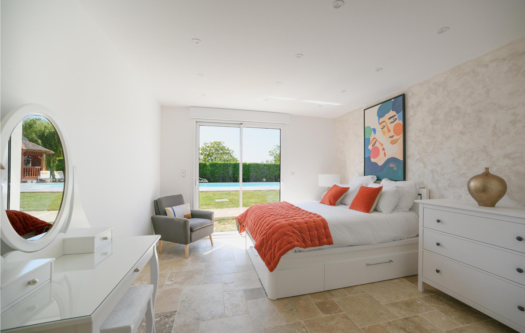 Hier können Sie in ansprechendem Rahmen mit Ihren Lieben entspannen. Das komfortable Haus begrüßt Sie in ruhiger Lage im Loire-Tal. Mit seinen hellen Räumen, die modern und mit geschickt platzierten Farbakzenten eingerichtet sind, ist das Haus der ideale Ort für eine schöne Auszeit mit der ganzen Familie. Nutzen Sie es als Basis für spannende Ausflüge und genießen Sie die gemeinsame Zeit, im Wohnbereich können Sie es sich abends gemütlich machen, gemeinsam essen, einen Film ansehen oder einen Spieleabend veranstalten.