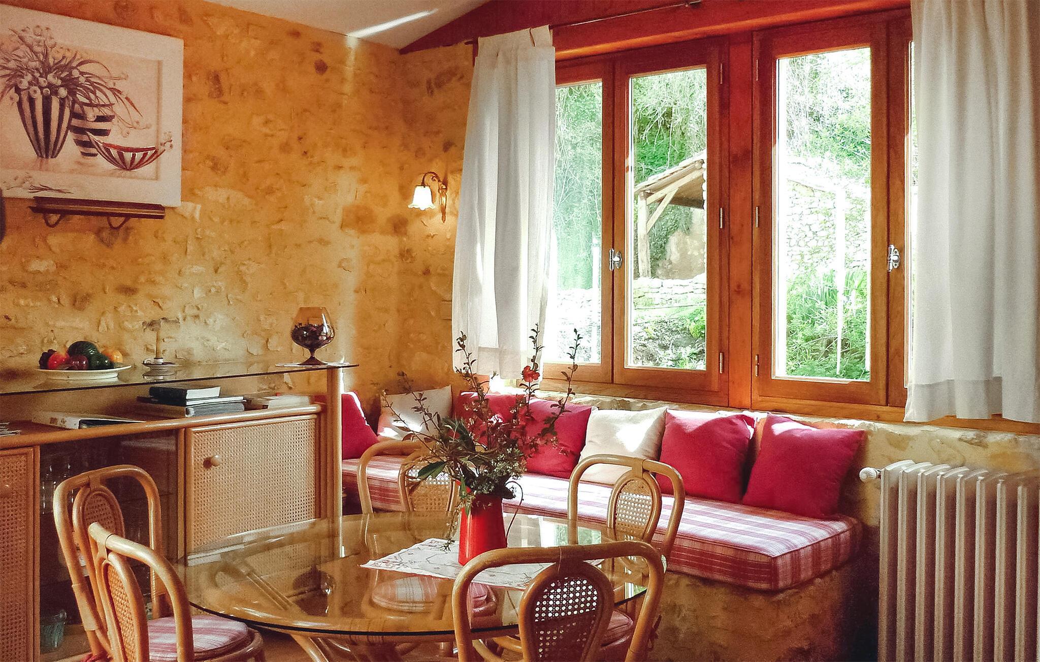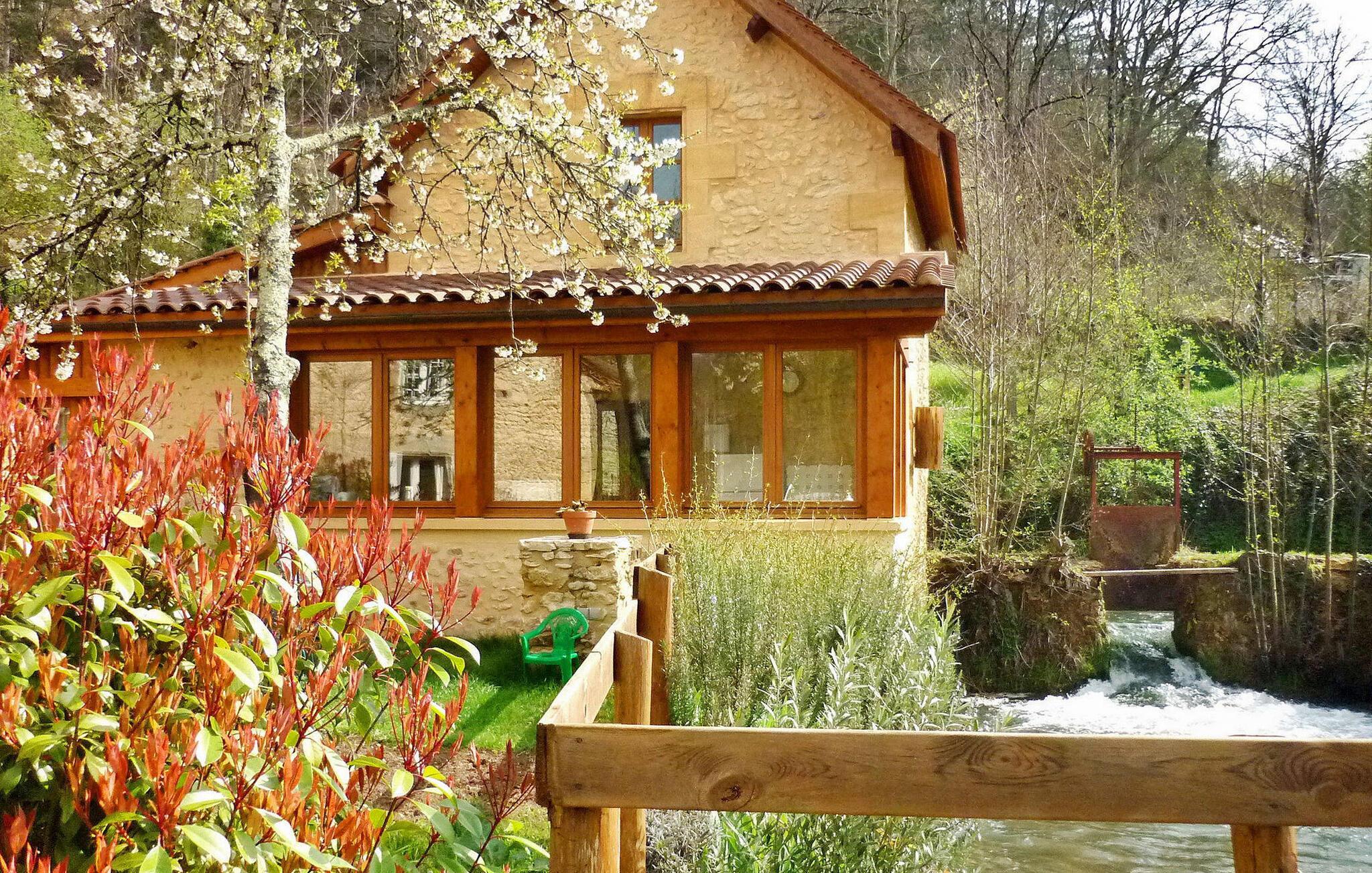 Dieses Ferienhaus besteht aus einem Haupthaus (für 5 Personen) und einem Cottage (für 2 Personen). Es ist eine ideale Lage im Herzen der touristischen Sehenswürdigkeiten und Schlösser der Dordogne und bietet das ganze Jahr über ein beheiztes Hallenbad. Im Haupthaus befinden sich eine Küche mit Blick auf die Terrasse, ein Ess-/Wohnbereich und zwei der Schlafzimmer. Das Schlafzimmer im ersten Stock hat keine Tür und ist über eine offene Treppe erreichbar. Das eigenständige Cottage liegt 15 m vom Haupthaus entfernt und verfügt über einen Wohnbereich mit Holzofen und Doppelschlafsofa. Zwei französische Fenster bieten einen schönen Blick auf das Anwesen. In der alten Mühle, vor dem Haus, gibt es einen beheizten Innenpool (im Winter) von 8 x 5 m sowie ein Spielzimmer und einen Bouleplatz. Achtung: Der Wasserlauf neben dem Haus ist nicht gesichert. Eltern sollten hier mit ihren kleinen Kindern wachsam sein. Das Erdgeschoss des Haupthauses ist rollstuhlgerecht. Genießen Sie Ihren Urlaub in einer Mühle in der Dordogne im Quercy - Périgord.