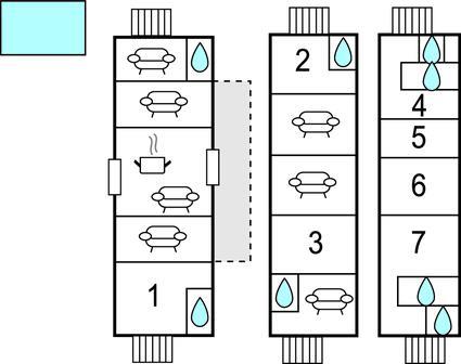 Badezimmer 5m2 (nr. 5) - WC. Warmes und kaltes Wasser. Dusche