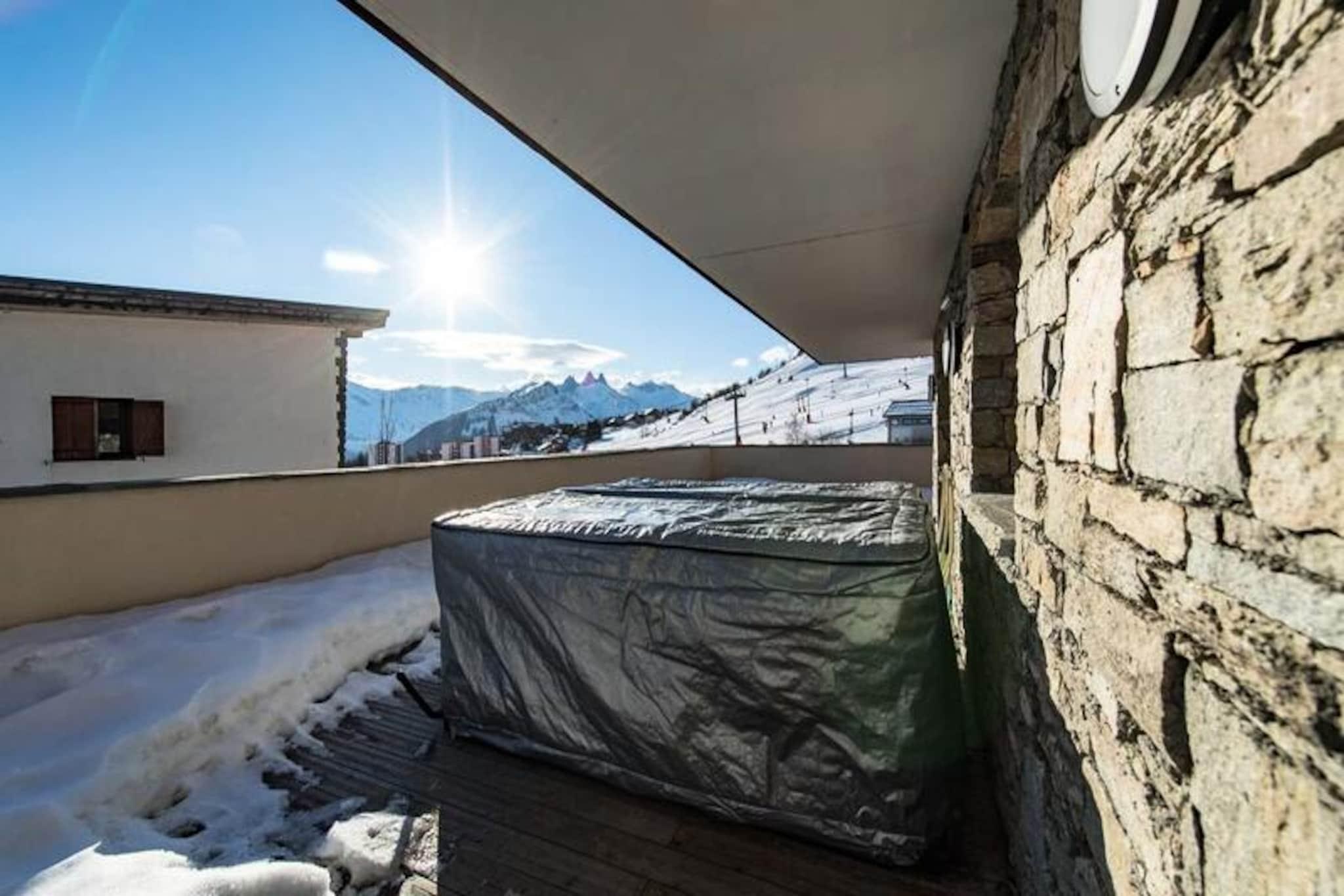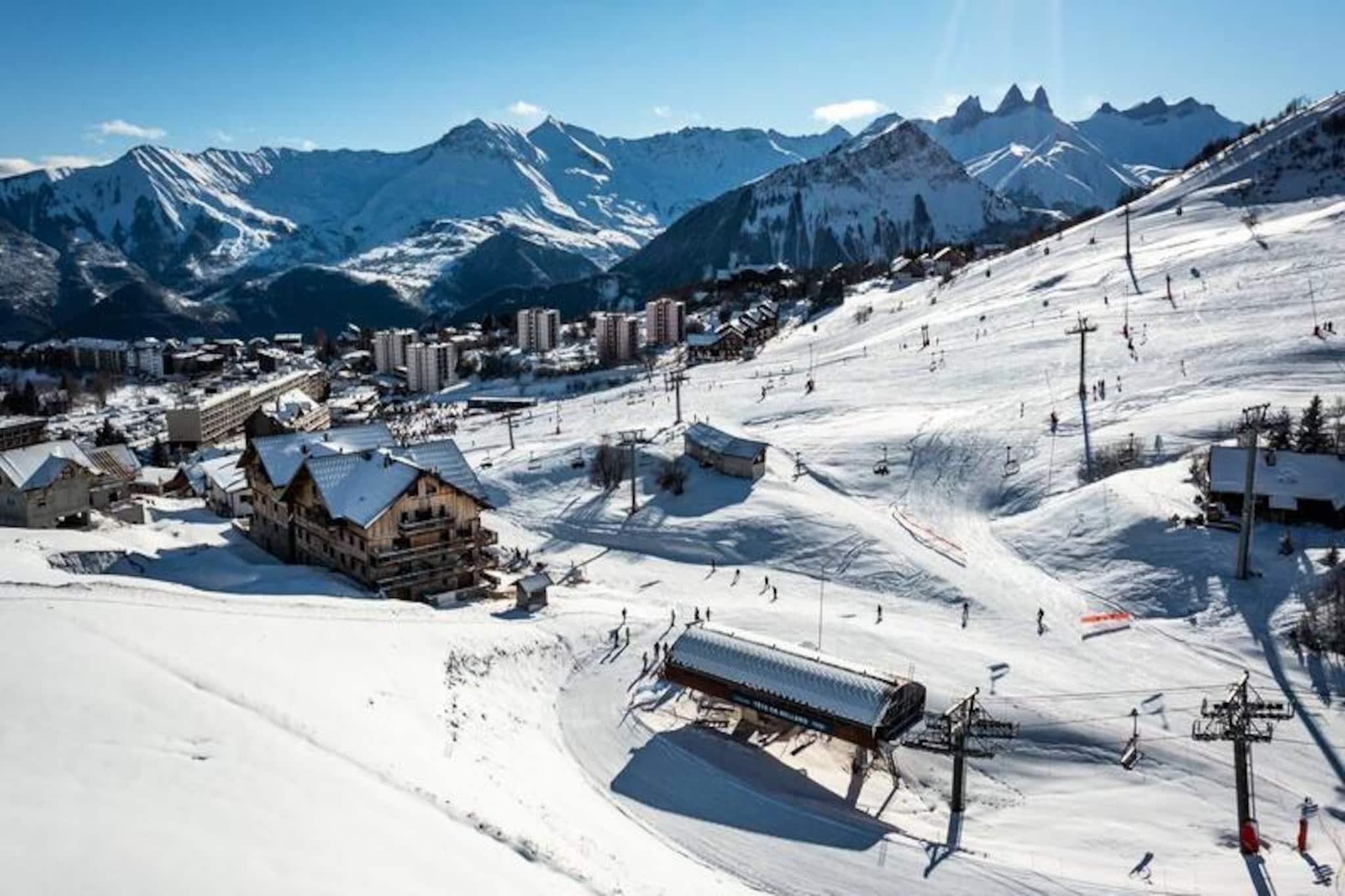 High above the picturesque Maurienne Valley, this exceptional apartment in the brand-new La Grande Verdette residence promises an unforgettable alpine escape. With direct ski-in, ski-out access via the blue Marmotte slope and the Bellard chairlift just steps away, you’ll find yourself immersed in the heart of the French Alps’ winter wonderland. The breathtaking views of the iconic Aiguilles d’Arves from your private terrace set the tone for a truly magical stay. Spanning 90m², this thoughtfully designed apartment combines modern elegance with cozy alpine charm. The highlight is undoubtedly the expansive terrace, complete with a private jacuzzi where you can unwind after a day on the slopes. The living area features a stylish lounge and dining space, complemented by a fully equipped kitchen. Two serene bedrooms with queen-size beds and TVs offer restful retreats, while a unique dormitory-style room with bunk beds accommodates up to eight guests, making it perfect for families or groups. Two bathrooms, separate toilets, and a ski locker with a boot dryer add to the convenience. Beyond the apartment, pedestrian access to the resort is just minutes away, offering a vibrant mix of shops, restaurants, and après-ski activities. In addition, by booking in advance, you can enjoy exclusive discounts on lift passes and ski equipment, with ski passes delivered directly to your door. Whether you’re here to carve through pristine slopes or simply soak in the serene mountain atmosphere, this residence offers a seamless blend of luxury and adventure. Book your stay now and create cherished memories in this alpine haven, where every detail is designed to elevate your holiday experience.