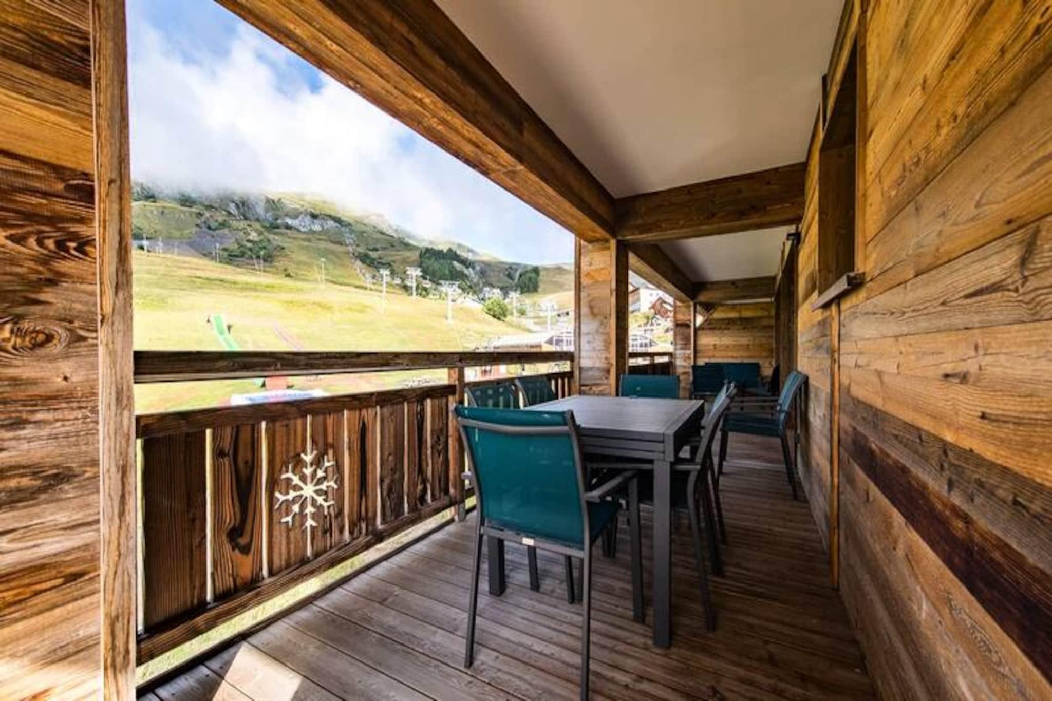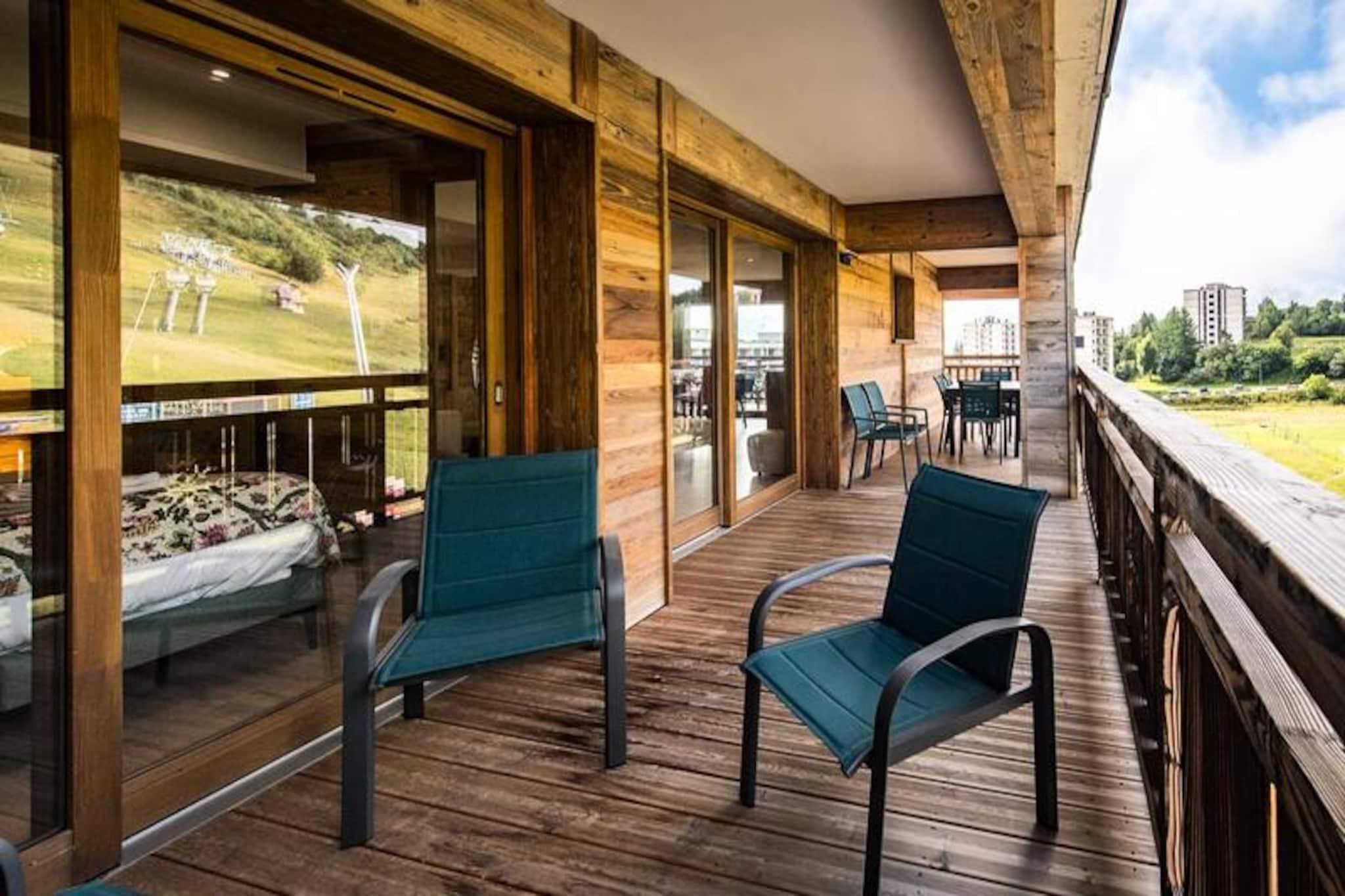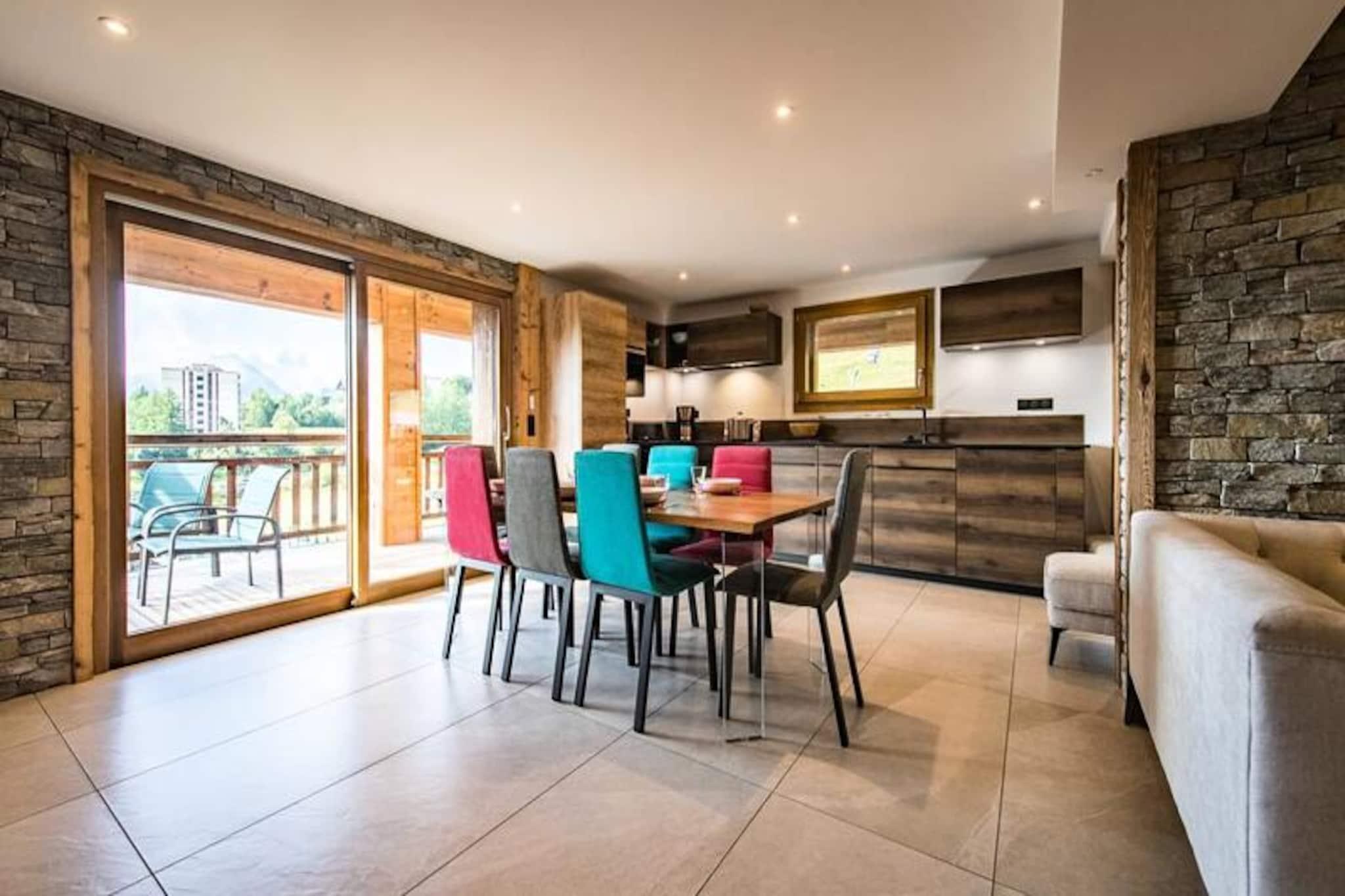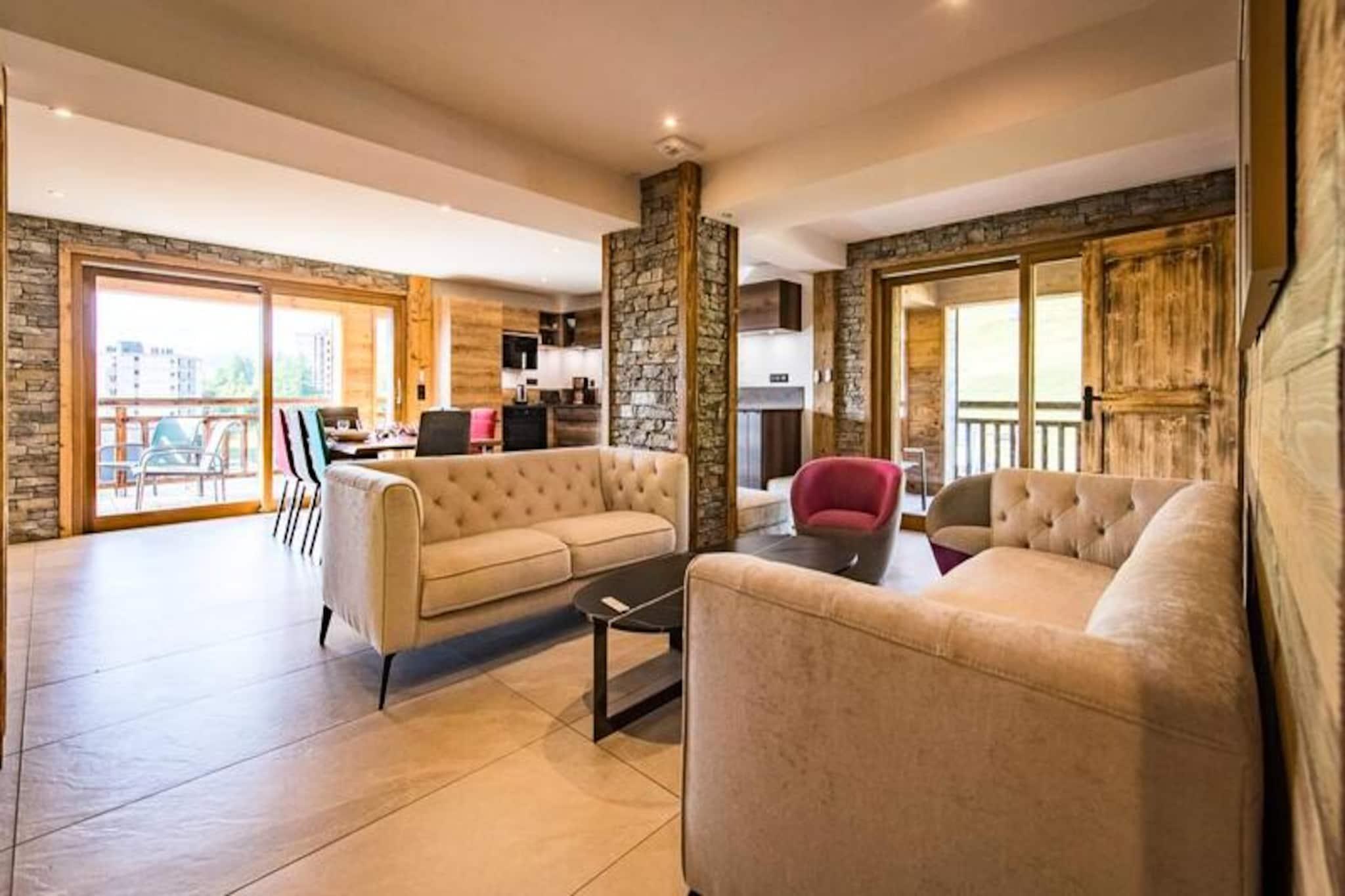 Under the radiant skies of La Toussuire, this brand-new alpine apartment promises a blend of modern elegance and unbeatable convenience for your next mountain escape. With direct ski-in/ski-out access from the Les Airelles residence, you’ll step straight onto the slopes each morning, ready to explore the pristine snow-covered trails of this renowned resort. The location is equally ideal for summer adventures, with breathtaking views and endless opportunities for hiking and outdoor activities. Just steps away, the village center offers shops, restaurants, and everything you need for a seamless stay. \n\nInside, the 85m² south-facing apartment welcomes you with warm, high-quality decor that perfectly complements its mountain surroundings. The spacious living room opens onto a stunning 40m² terrace that wraps around the apartment, offering panoramic views to the south, east, and west. The fully equipped kitchen, dining area, and cozy lounge create the perfect space for relaxation after a day of adventure. Three bedrooms, each featuring a 160 cm bed and two with TVs, ensure restful nights, while a sleeping alcove with bunk beds provides additional comfort for families or groups. Two bathrooms and a separate toilet complete the layout, ensuring convenience for all guests. \n\nAdditional amenities include a ski locker with a boot dryer, and an indoor parking space nearby for your vehicle. For electric car owners, a charging station is available. Guests also benefit from included end-of-stay cleaning, bed linen, and bath linen rentals, making your stay effortless. With no pets allowed and a non-smoking policy, the apartment ensures a clean and tranquil environment. \n\nBooking with Altitude 1750 adds extra perks, such as lift passes and ski lesson cards delivered directly to your apartment, and discounts on ski equipment rentals when booked in advance. Whether you’re seeking thrilling ski days or tranquil summer hikes, this exceptional residence offers unforgettable moments in the heart of the French Alps.