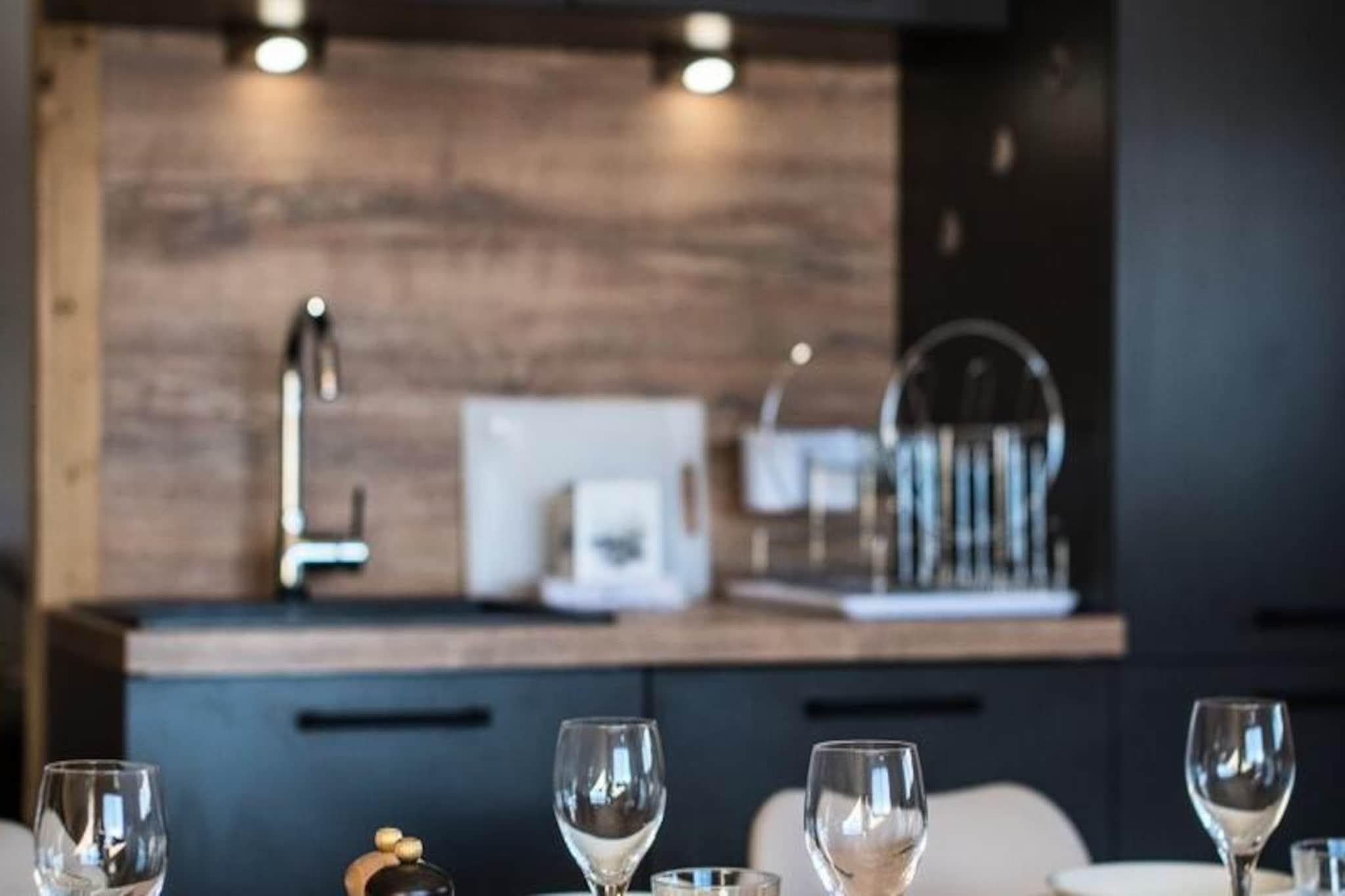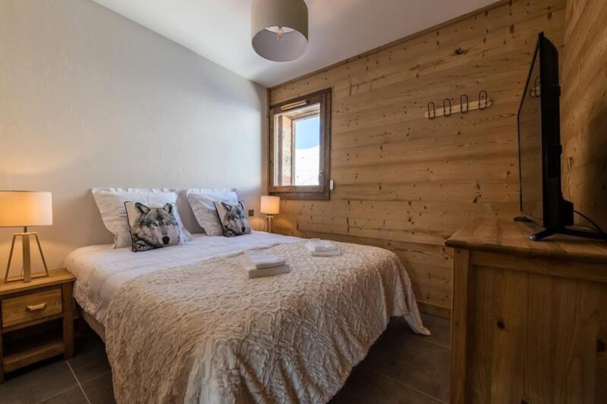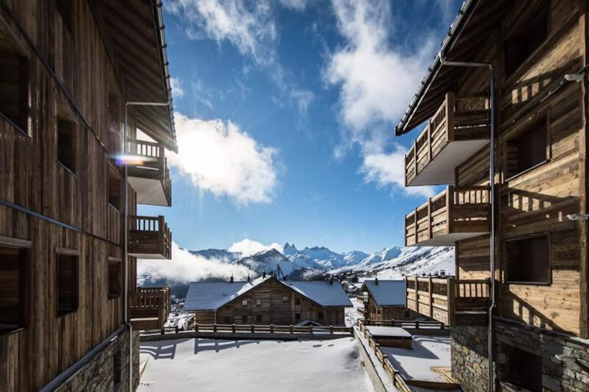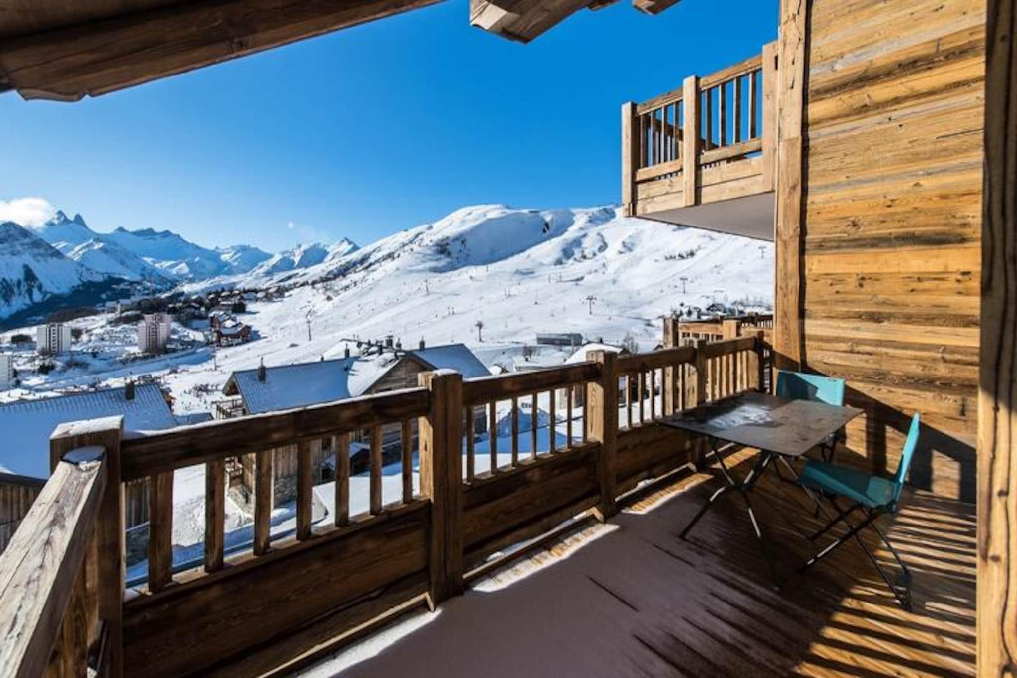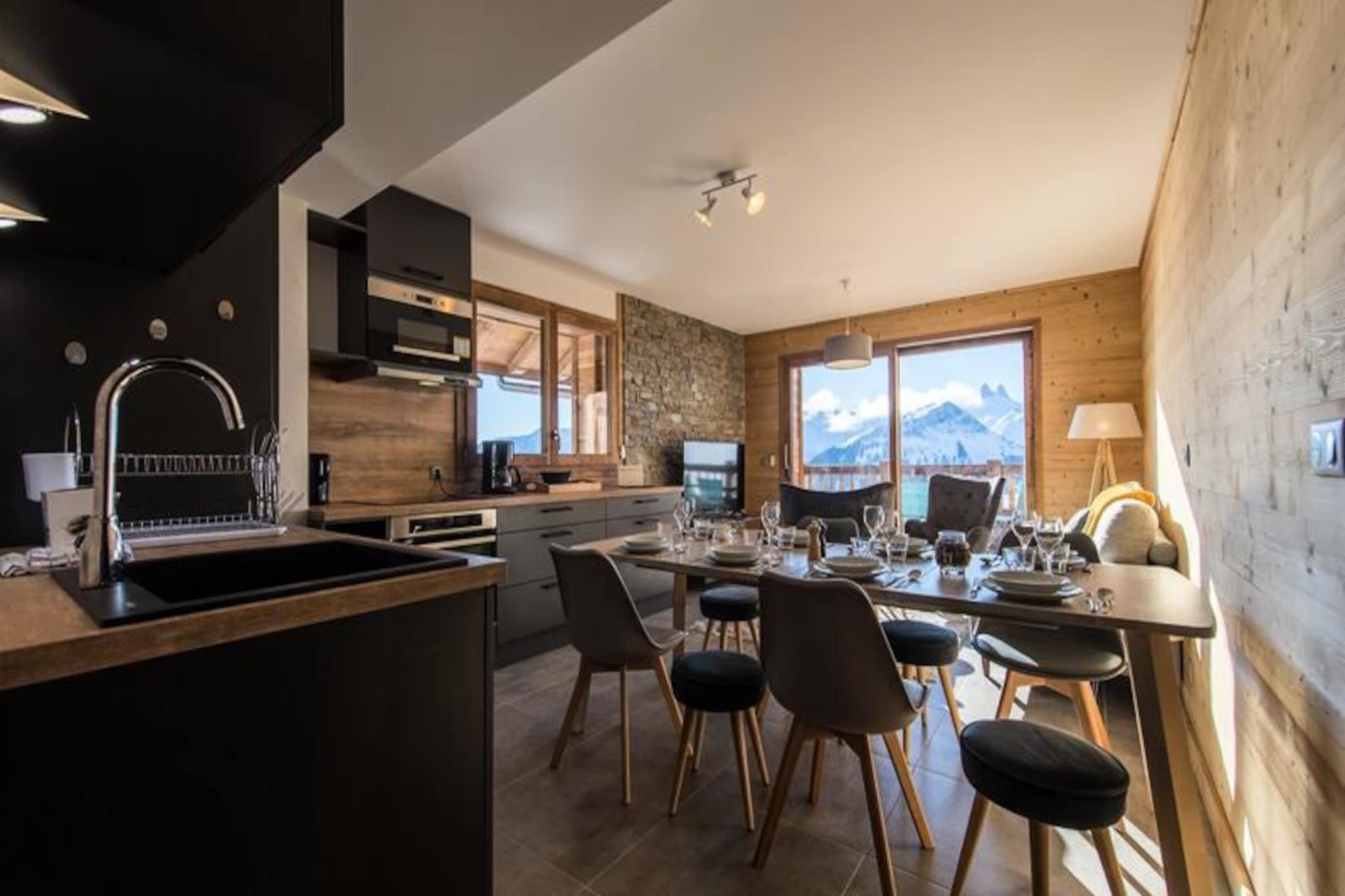 High above the charming resort, where the slopes meet the sky, the Odyssée residence offers a unique alpine experience. Imagine mornings filled with crisp mountain air and uninterrupted views of the majestic Aiguilles d'Arves and La Meije peaks, as sunlight pours into your south-facing apartment. With ski in and ski out access directly from the residence, your adventure begins the moment you step outside, whether you’re carving through fresh powder or exploring the snow front and main lifts just seconds away. A convenient staircase ensures easy pedestrian access to the heart of the resort, while the nearby free Skibus shuttle makes getting around effortless. \n\nThis spacious 88m² apartment is a harmonious blend of warm wood and natural stone, creating an inviting atmosphere for up to ten guests. The living room opens onto a balcony, where panoramic mountain vistas set the stage for unforgettable moments. The fully equipped kitchen, cozy lounge, and dining area make it easy to relax after a day on the slopes. With four thoughtfully furnished bedrooms, including king and queen-size beds as well as bunk beds, comfort is guaranteed for families and groups alike. Modern amenities such as a washer-dryer, boot dryer, and WiFi ensure a seamless stay, while the included end-of-stay cleaning and linen rentals add convenience. \n\nBeyond the apartment, the resort offers a wealth of activities and services. Lift passes and ski lesson cards are delivered directly to your door, and early bookings unlock discounts on ski equipment and passes. Whether you’re here to ski, hike, or simply soak in the alpine charm, this residence is the perfect base for creating cherished memories with loved ones. Let the Odyssée residence be your gateway to an unforgettable mountain escape.