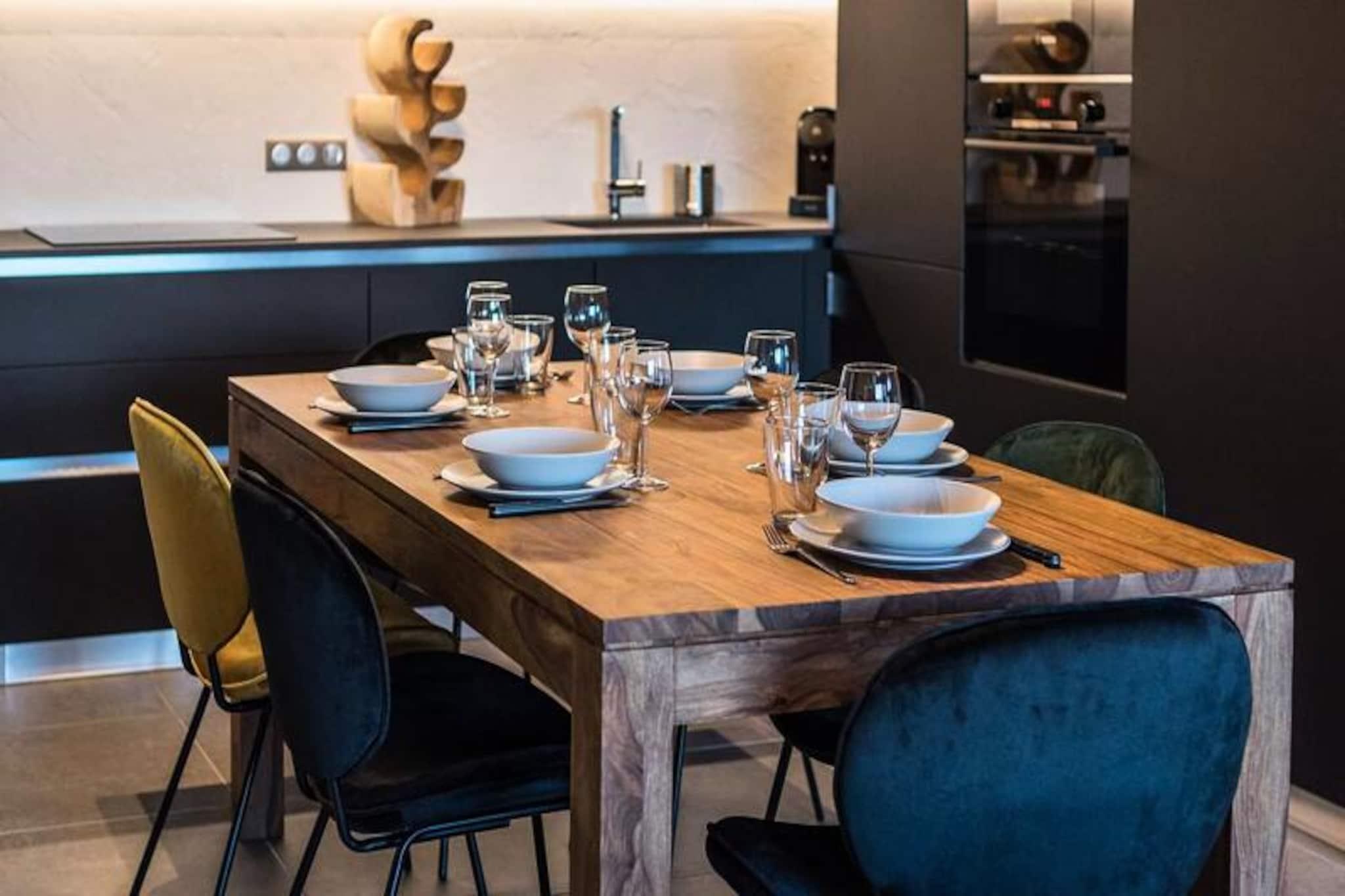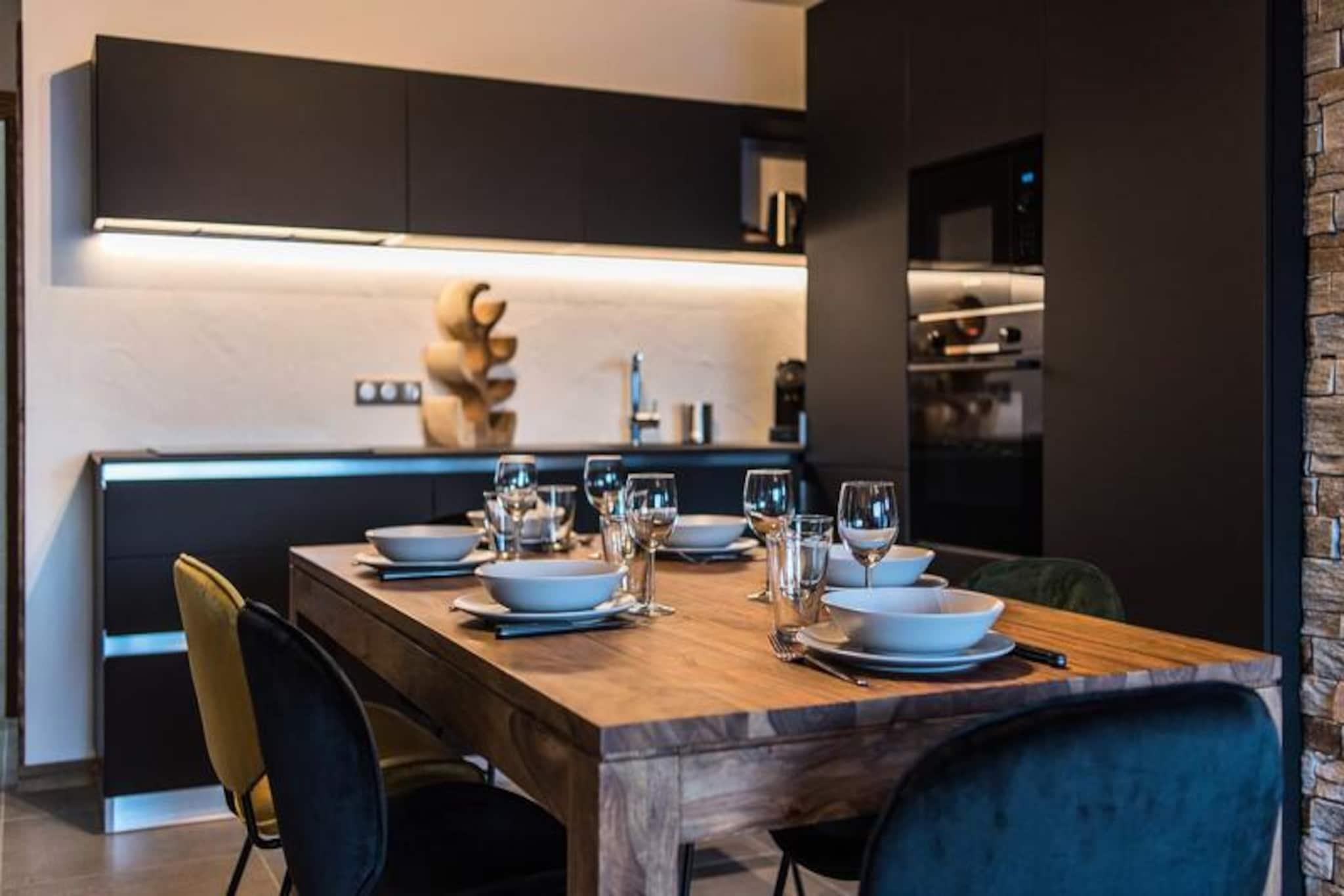 High above the bustling resort, where the majestic peaks of Aiguilles d'Arves and La Meije paint the horizon, lies the Odyssée residence—a haven for ski enthusiasts and mountain lovers alike. Imagine waking up to the sun's golden rays streaming through your south-facing windows, stepping onto your balcony to breathe in the crisp alpine air, and gazing at panoramic views that inspire adventure and tranquility in equal measure. This is where unforgettable memories are made, surrounded by the beauty of the French Alps. \n\nThe apartment, spanning 88m², is a masterpiece of warm, rustic charm with old wood and stone accents. Designed to accommodate up to eight guests, it features a spacious living room that opens onto a balcony with breathtaking views. The fully equipped kitchen and cozy lounge/dining area invite you to share meals and moments with loved ones. The first floor boasts a queen-size bedroom with its own bathroom and TV, while upstairs, two additional bedrooms—one with three single beds and a trundle bed, and another with a queen-size bed and TV—ensure comfort for all. Modern amenities like Wi-Fi, a ski locker with boot dryer, and reserved parking spaces add to the convenience, while end-of-stay cleaning and linen rentals are included for a stress-free experience. \n\nStep outside, and the slopes are at your doorstep. Ski in and ski out access means you’re seconds away from the snow front and main lifts, while a nearby shuttle stop ensures easy exploration of the resort. Pedestrian access is facilitated by a staircase, making it simple to reach shops, restaurants, and après-ski activities. Whether you’re here for winter sports or summer hikes, the region offers endless opportunities for adventure and relaxation. \n\nBook now with Altitude 1750 and enjoy exclusive perks like discounted lift passes and ski equipment rentals when reserved in advance. Let the Odyssée residence be your gateway to the magic of the Alps—a place where every moment feels extraordinary.