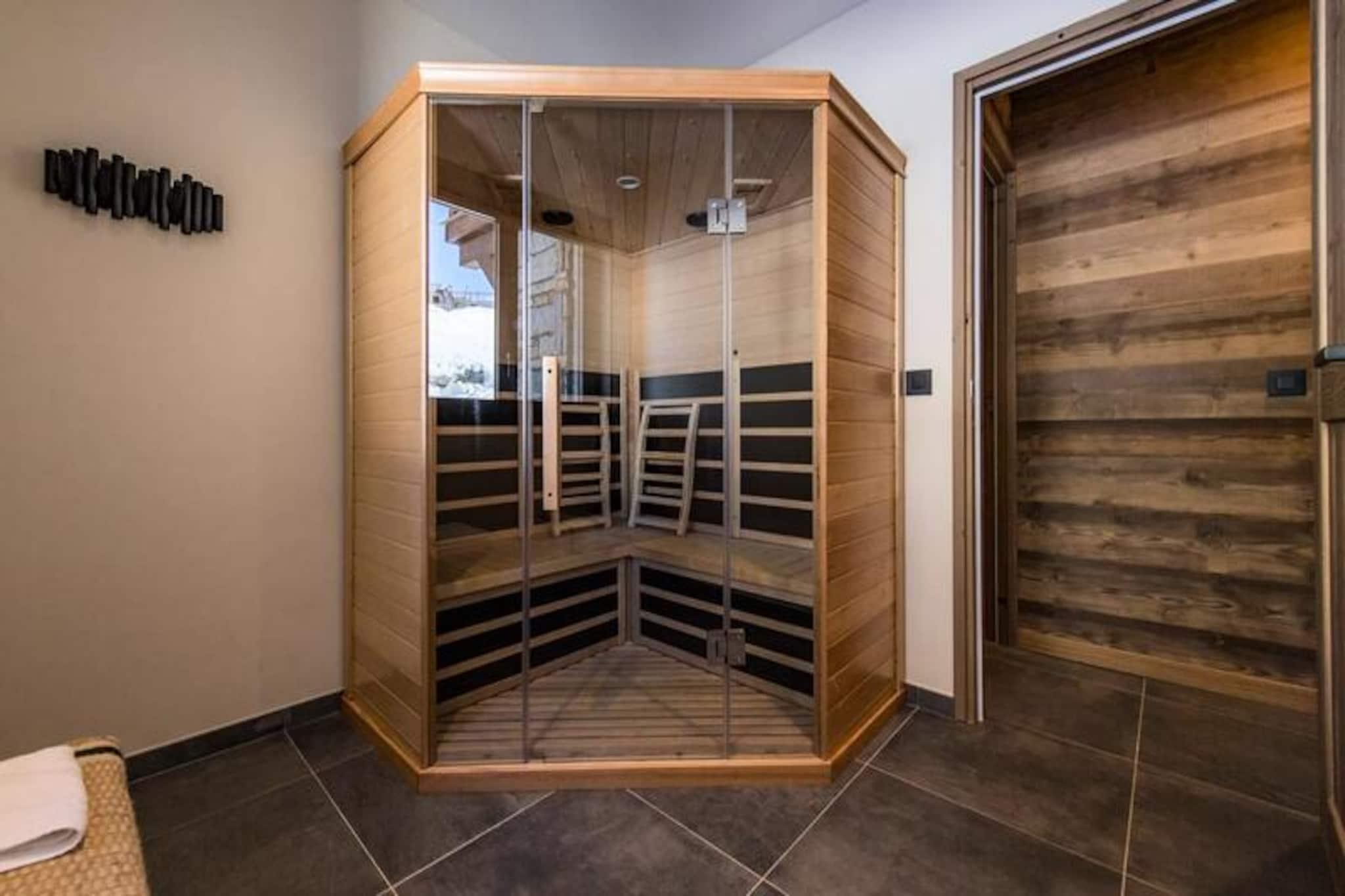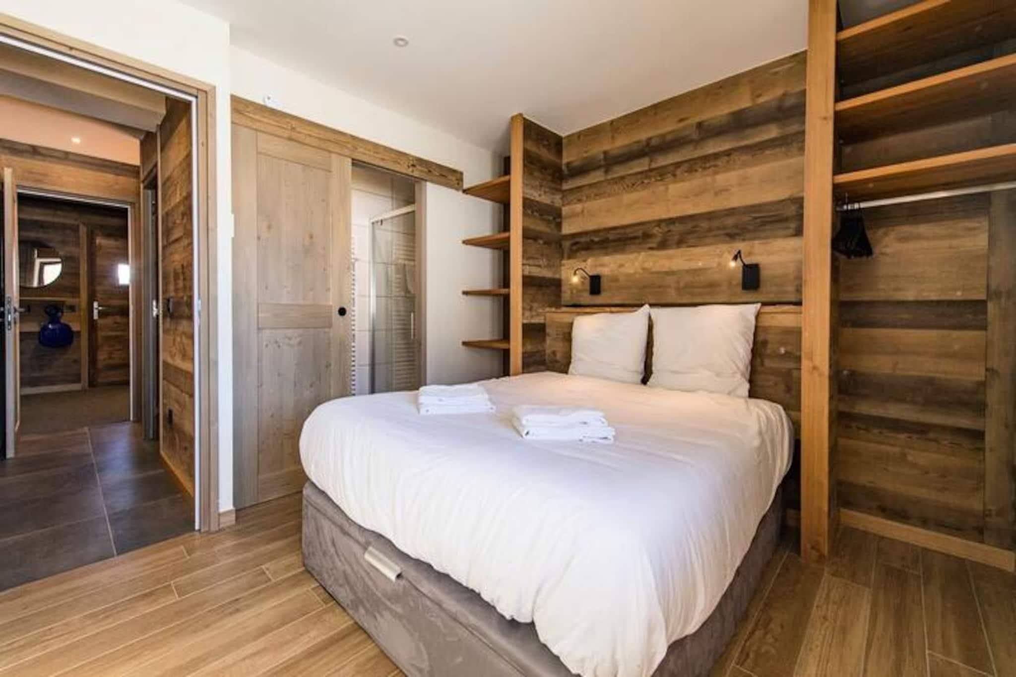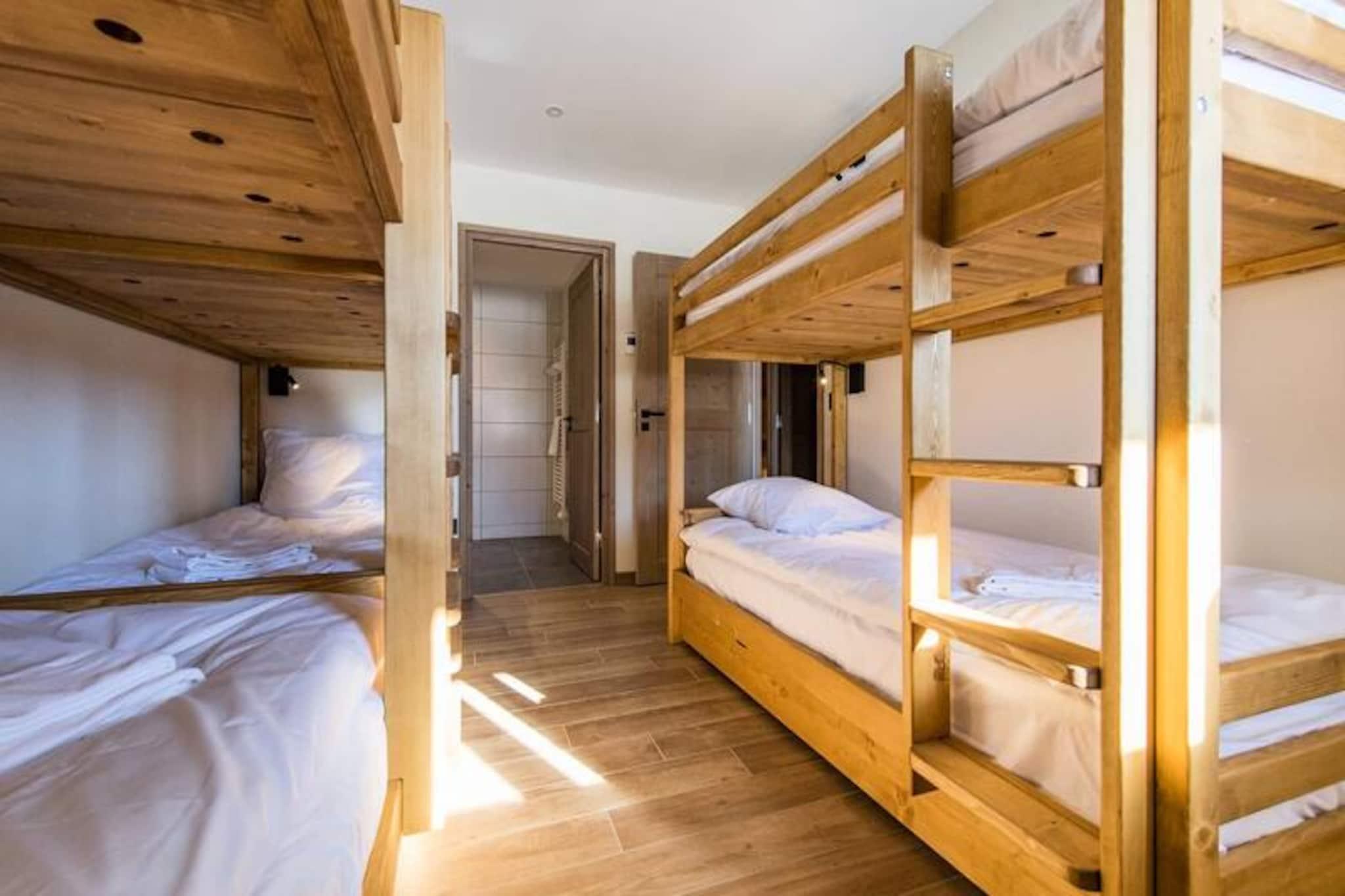 In the heart of the French Alps, where snow-capped peaks meet endless blue skies, this stunning chalet invites you to experience the ultimate mountain retreat. With its sophisticated design and warm ambiance, it’s the perfect setting for unforgettable moments with family or friends. The south-facing orientation ensures abundant natural light and breathtaking views, creating a serene atmosphere to unwind after a day of alpine adventures. \n\nSpread across three levels, the chalet offers exceptional comfort and thoughtful amenities. On the garden level, you’ll find a ski room for convenient storage, a master suite with a queen-size bed and private shower room, a dormitory with three bunk beds accommodating six guests, an additional shower room, and two separate toilets. The first floor boasts two more master suites, each with a queen-size bed and en-suite shower room, a sauna for ultimate relaxation, and a pantry. The crowning jewel is the top-floor attic living area, featuring a cozy lounge, a dining room, and a fully equipped kitchen with premium appliances, including two dishwashers and a 90cm induction hob. Modern conveniences like Wi-Fi and included linens ensure a stress-free stay. \n\nLocated just moments from the slopes, this chalet is a haven for ski enthusiasts. With lift passes and ski lesson cards delivered directly to your door, your alpine adventure begins the moment you arrive. In addition, booking in advance grants you exclusive discounts on equipment rentals and lift passes. Whether you’re exploring the pristine trails or relaxing in the sauna, this chalet offers a seamless blend of luxury and convenience. Don’t miss the chance to create cherished memories in this idyllic mountain escape.