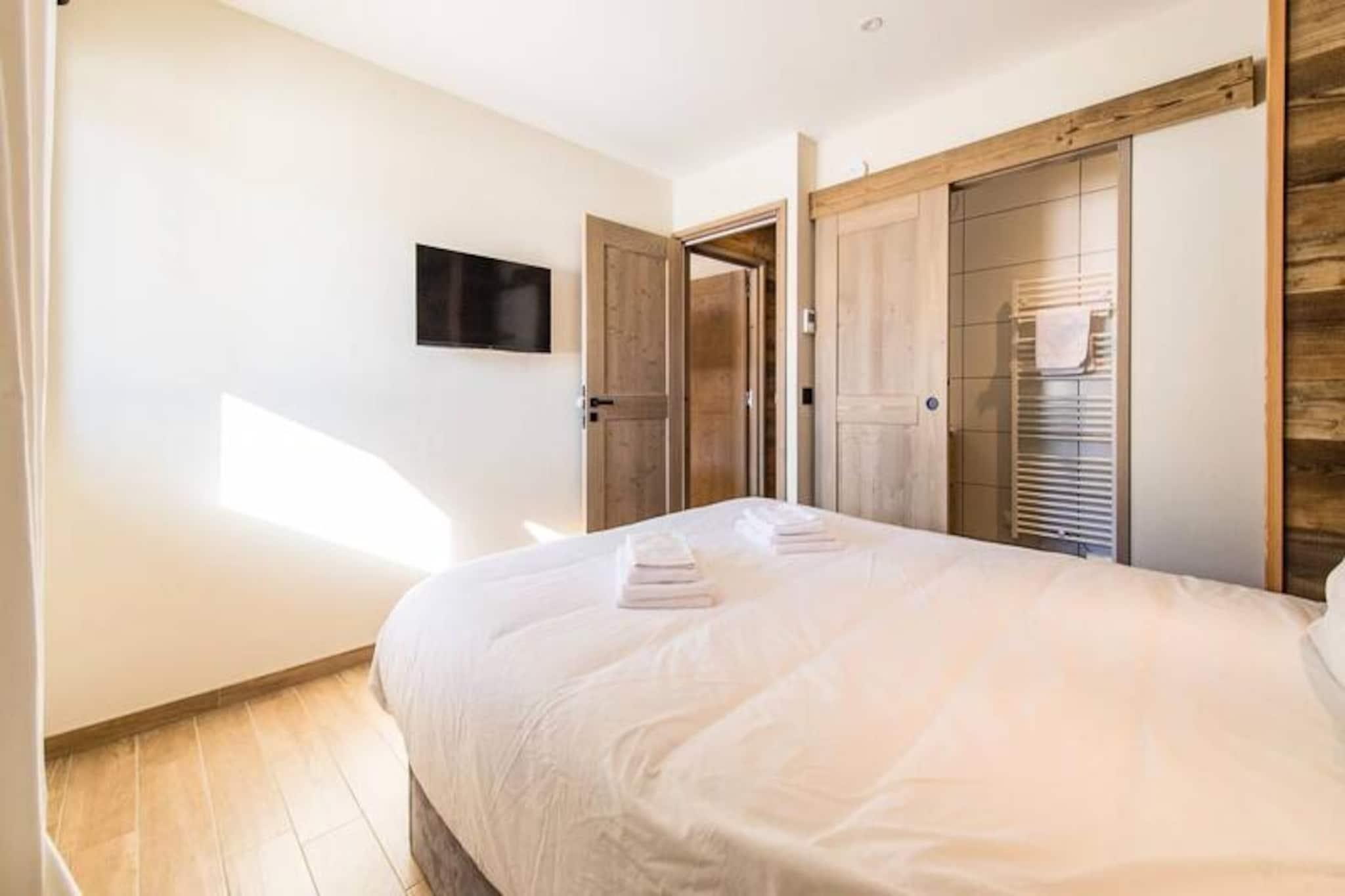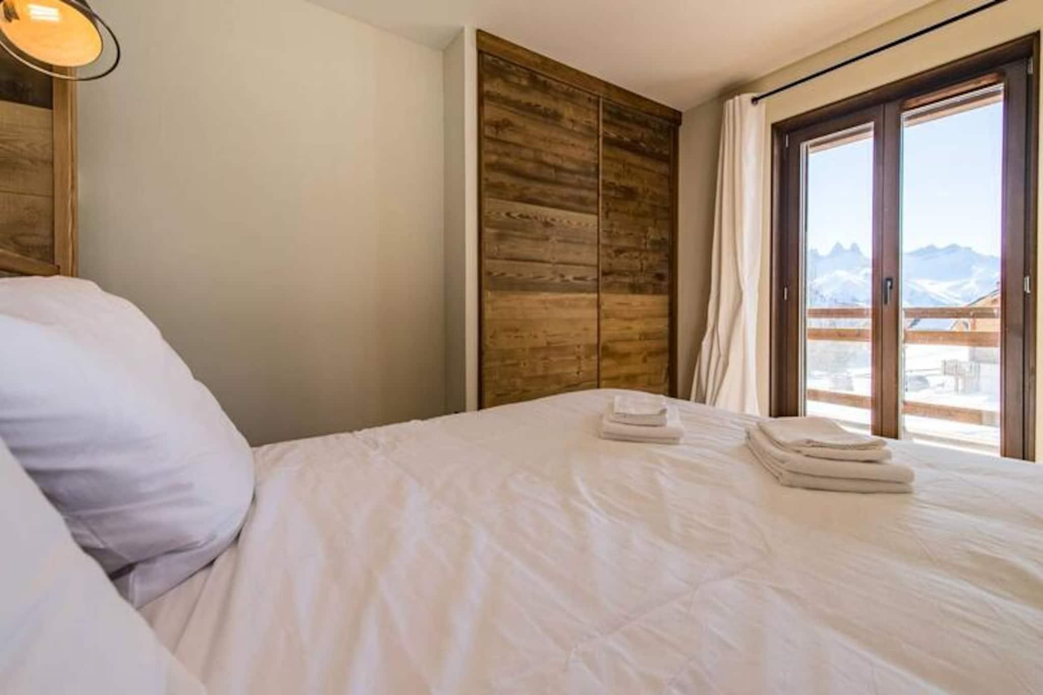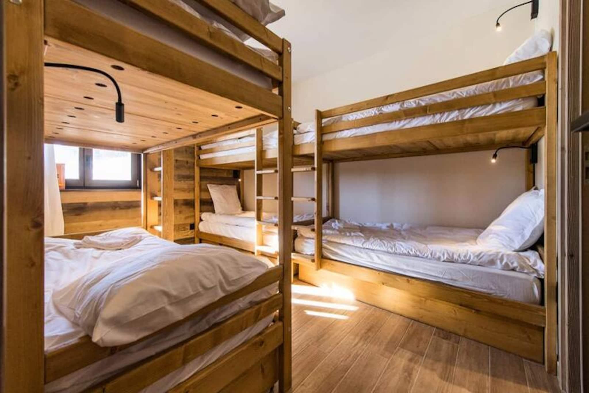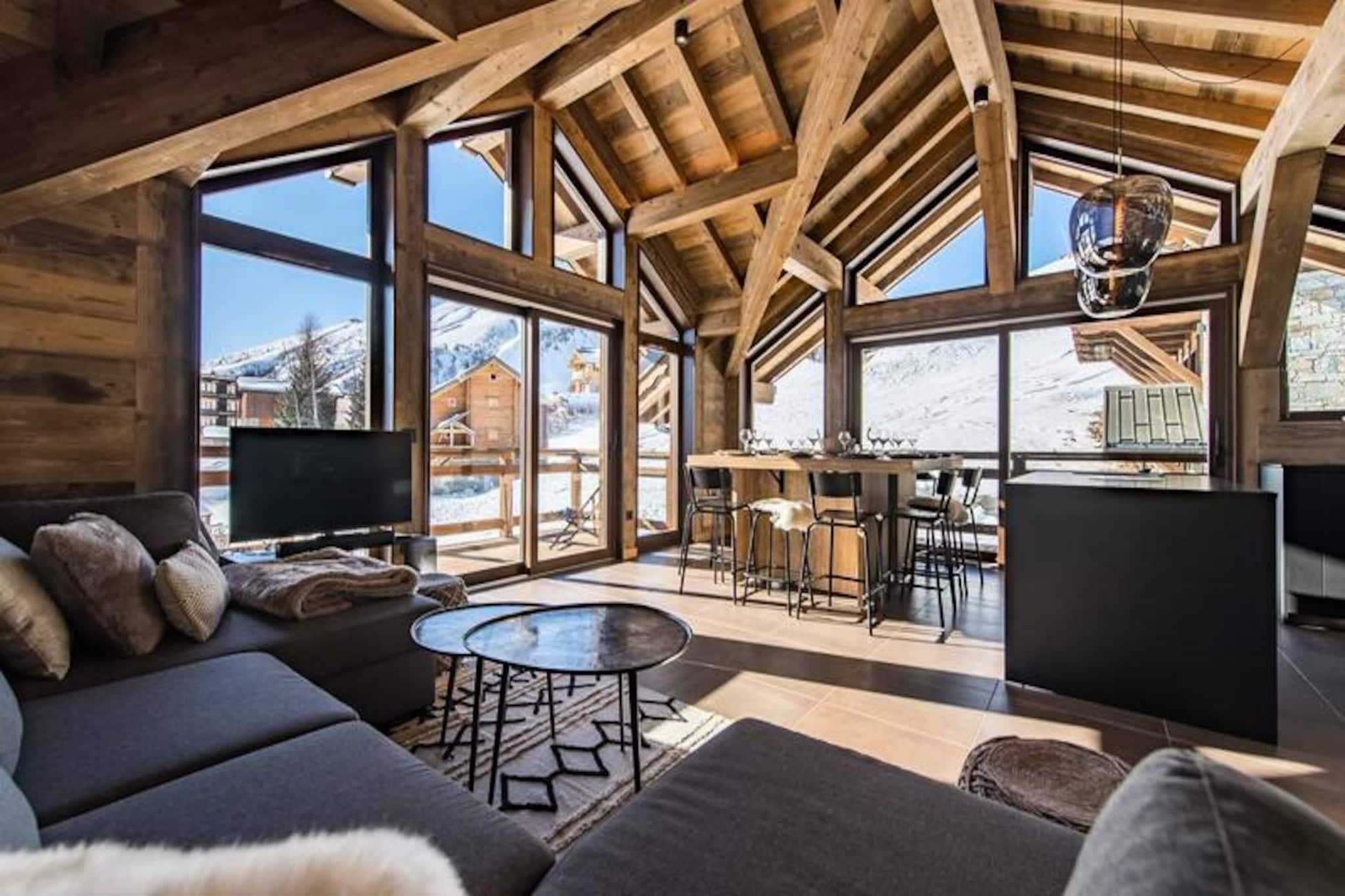 In the heart of the French Alps, where snow-capped peaks meet endless blue skies, this stunning chalet invites you to experience the ultimate mountain retreat. With its sophisticated design and warm ambiance, it’s the perfect setting for unforgettable moments with family or friends. The south-facing orientation ensures abundant natural light and breathtaking views, creating a serene atmosphere to unwind after a day of alpine adventures. \n\nSpread across three levels, the chalet offers exceptional comfort and thoughtful amenities. On the garden level, you’ll find a ski room for convenient storage, a master suite with a queen-size bed and private shower room, a dormitory with three bunk beds accommodating six guests, an additional shower room, and two separate toilets. The first floor boasts two more master suites, each with a queen-size bed and en-suite shower room, a sauna for ultimate relaxation, and a pantry. The crowning jewel is the top-floor attic living area, featuring a cozy lounge, a dining room, and a fully equipped kitchen with premium appliances, including two dishwashers and a 90cm induction hob. Modern conveniences like Wi-Fi and included linens ensure a stress-free stay. \n\nLocated just moments from the slopes, this chalet is a haven for ski enthusiasts. With lift passes and ski lesson cards delivered directly to your door, your alpine adventure begins the moment you arrive. In addition, booking in advance grants you exclusive discounts on equipment rentals and lift passes. Whether you’re exploring the pristine trails or relaxing in the sauna, this chalet offers a seamless blend of luxury and convenience. Don’t miss the chance to create cherished memories in this idyllic mountain escape.