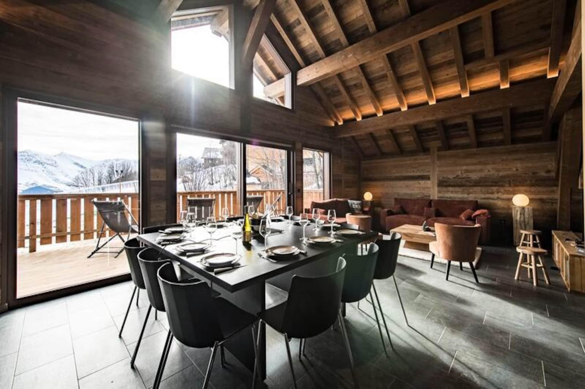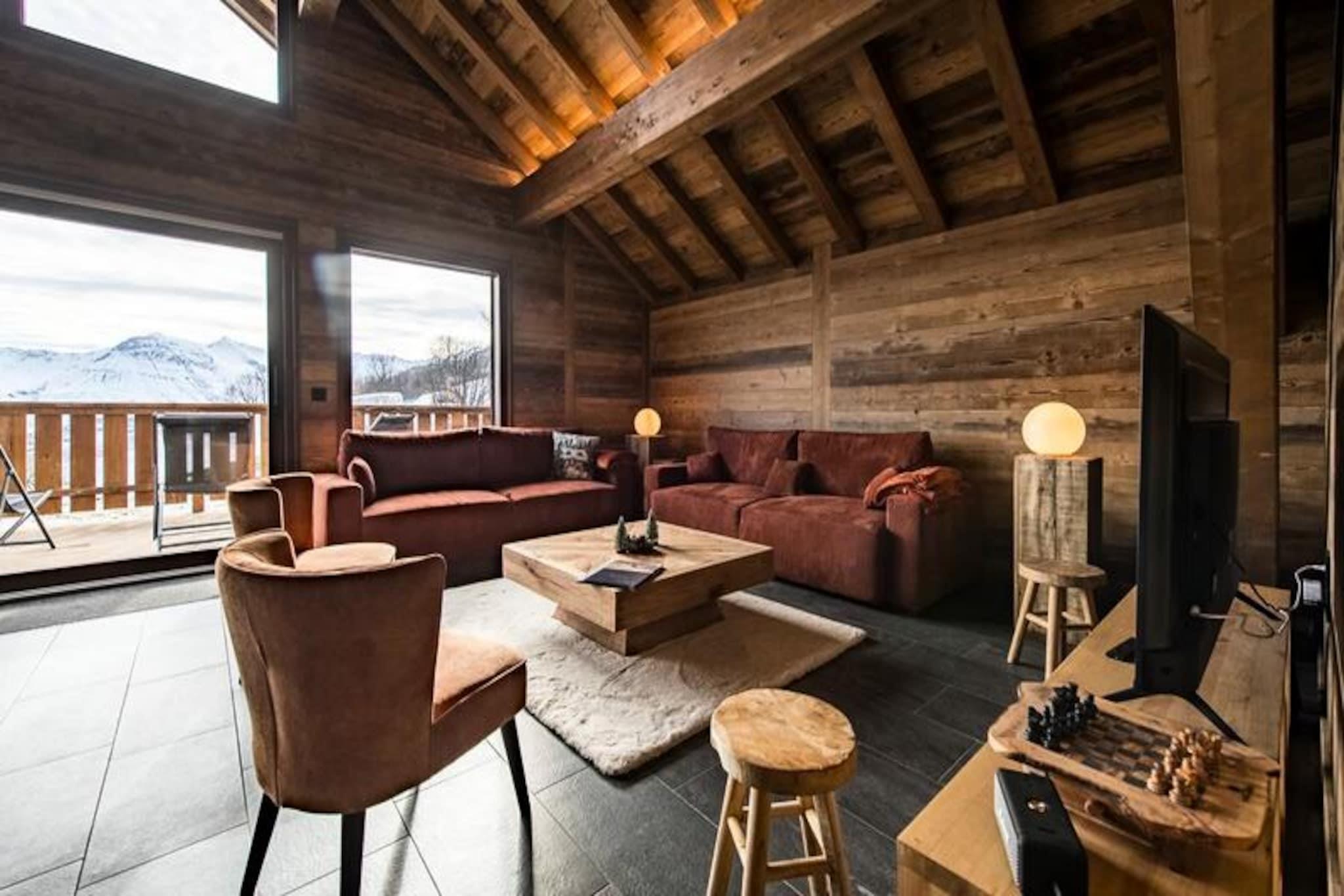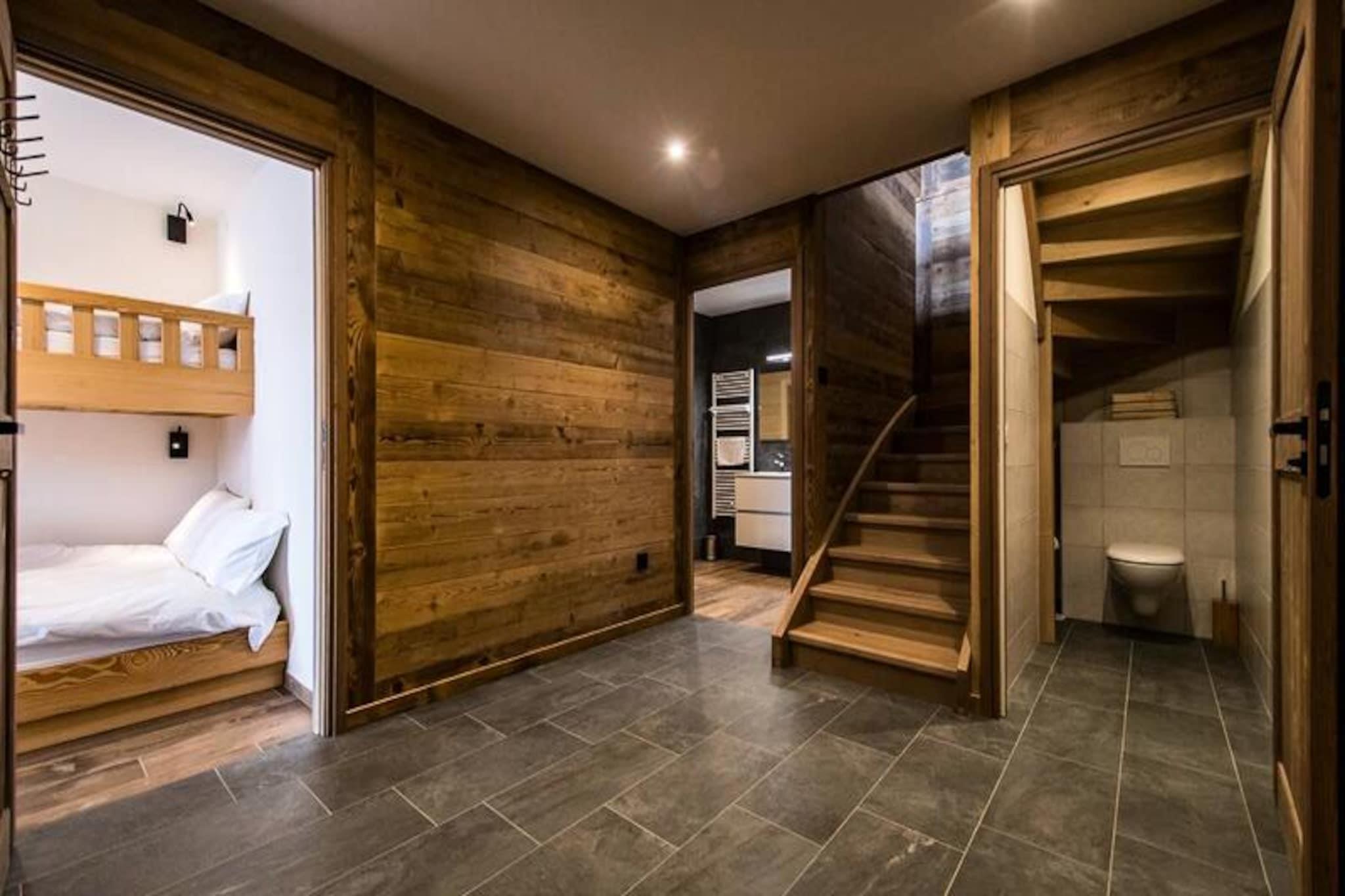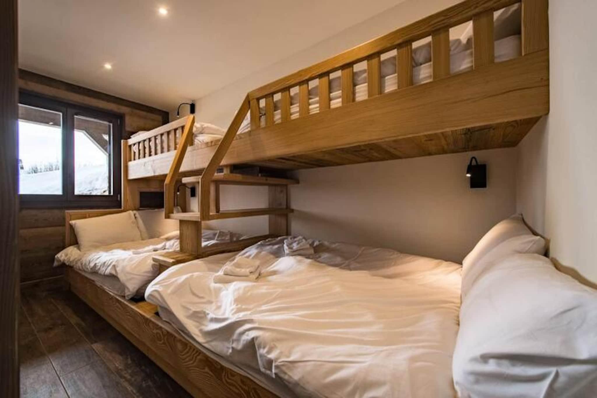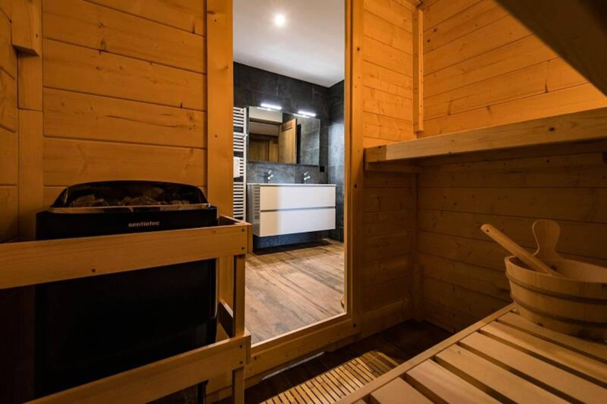 Where the alpine peaks kiss the sky and the crisp mountain air invigorates your senses, this stunning chalet on Route des Champions offers a luxurious retreat just minutes from the heart of the resort. Imagine waking up to the soft glow of sunrise, casting golden hues over the snow-capped mountains, as you sip your morning coffee on the southeast-facing terrace. With its warm and sophisticated decor, this chalet is a haven for families and friends seeking both comfort and adventure in the French Alps. Step inside and discover a thoughtfully designed space that combines modern amenities with alpine charm. The garden-level entrance welcomes you with a ski room for secure storage and a laundry room for added convenience. The ground floor features a cozy double bedroom, a dormitory perfect for children or groups, and a bathroom complete with a sauna for ultimate relaxation. Upstairs, two elegant master suites with en-suite shower rooms and private toilets provide a serene retreat after a day on the slopes. The open-plan living area, with its vaulted ceilings, includes a fully equipped kitchen, a dining area, and a lounge with a TV corner, creating the perfect setting for shared moments. Located less than a 5-minute walk from the resort center, you'll have easy access to shops, restaurants, and ski lifts. With one indoor parking space featuring a charging port and three additional outdoor spaces, convenience is at your fingertips. Plus, Altitude 1750 ensures a seamless experience by delivering pre-booked ski passes and lesson cards directly to your door. Whether you're carving through fresh powder, unwinding in the sauna, or enjoying a cozy evening by the fire, this chalet promises unforgettable memories in the heart of the Alps. Book now and let the magic of the mountains captivate you.