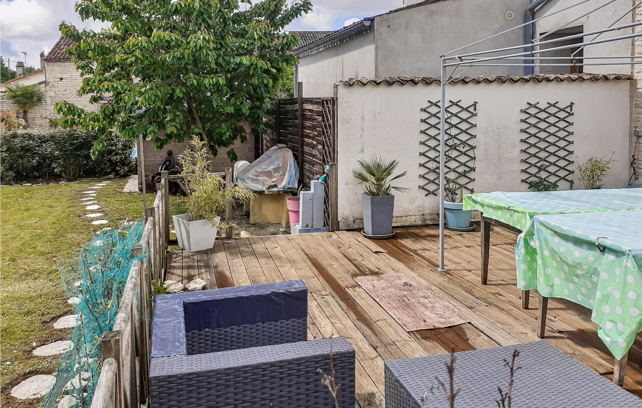 Dieses charmante Feriendomizil 7 km von Chef-Boutonne hat einen Privatpool sowie Platz für bis zu vier Personen. Das großzügig geschnittene Innere ist hell und sehr angenehm, und mit den Bewohnern des Nachbarhauses teilen Sie sich einen schönen Garten. Der Pool ist ausschließlich für Sie reserviert. Sportliche Urlauber können sich auf eine Fitnessecke mit Heimtrainer, Laufband und Trainingsgeräten für den Muskelaufbau freuen. In Poitou-Charentes stehen auch viele Aktivitäten an der frischen Luft zur Auswahl: Tennis, Wandern, Golf oder Wassersport auf den umliegenden Seen. Es ist für jeden etwas dabei. 30 km entfernt können Sie viele herrliche Ausflüge durch den Marais Poitevin bzw. die Sumpfregion am Golf von Poitou unternehmen. Setzen Sie Ihren Ausflug fort bis nach La Rochelle (60 km), um an seinem Hafen zu flanieren und seine berühmten Türme zu bewundern. Das Meeresaquarium ist ein tolles Erlebnis für große und kleine Urlauber, und wer La Rochelle besucht, sollte bei der Gelegenheit auch die ihm vorgelagerte Île de Ré mit dem Leuchtturm Phare des Baleines erkunden. Buchen Sie dieses charmante Feriendomizil und freuen Sie sich auf einen Urlaub mit vielen angenehmen Überraschungen.