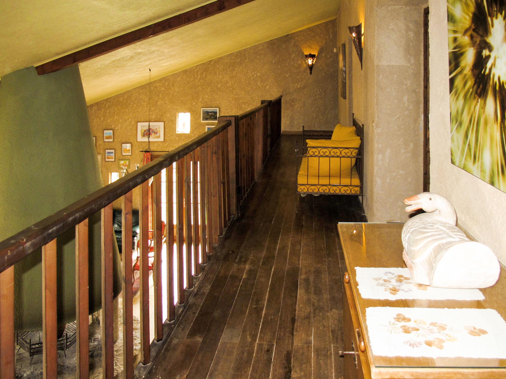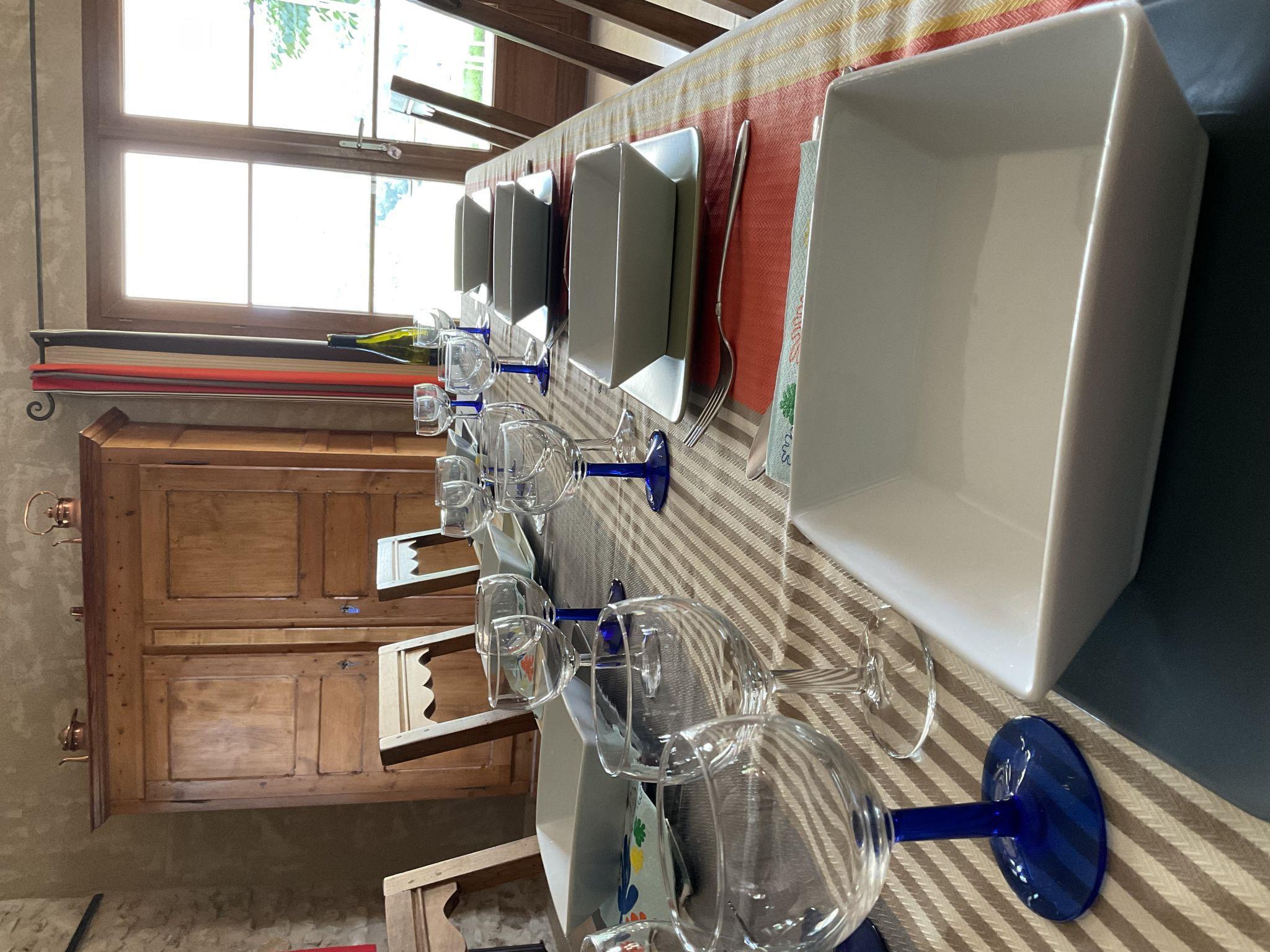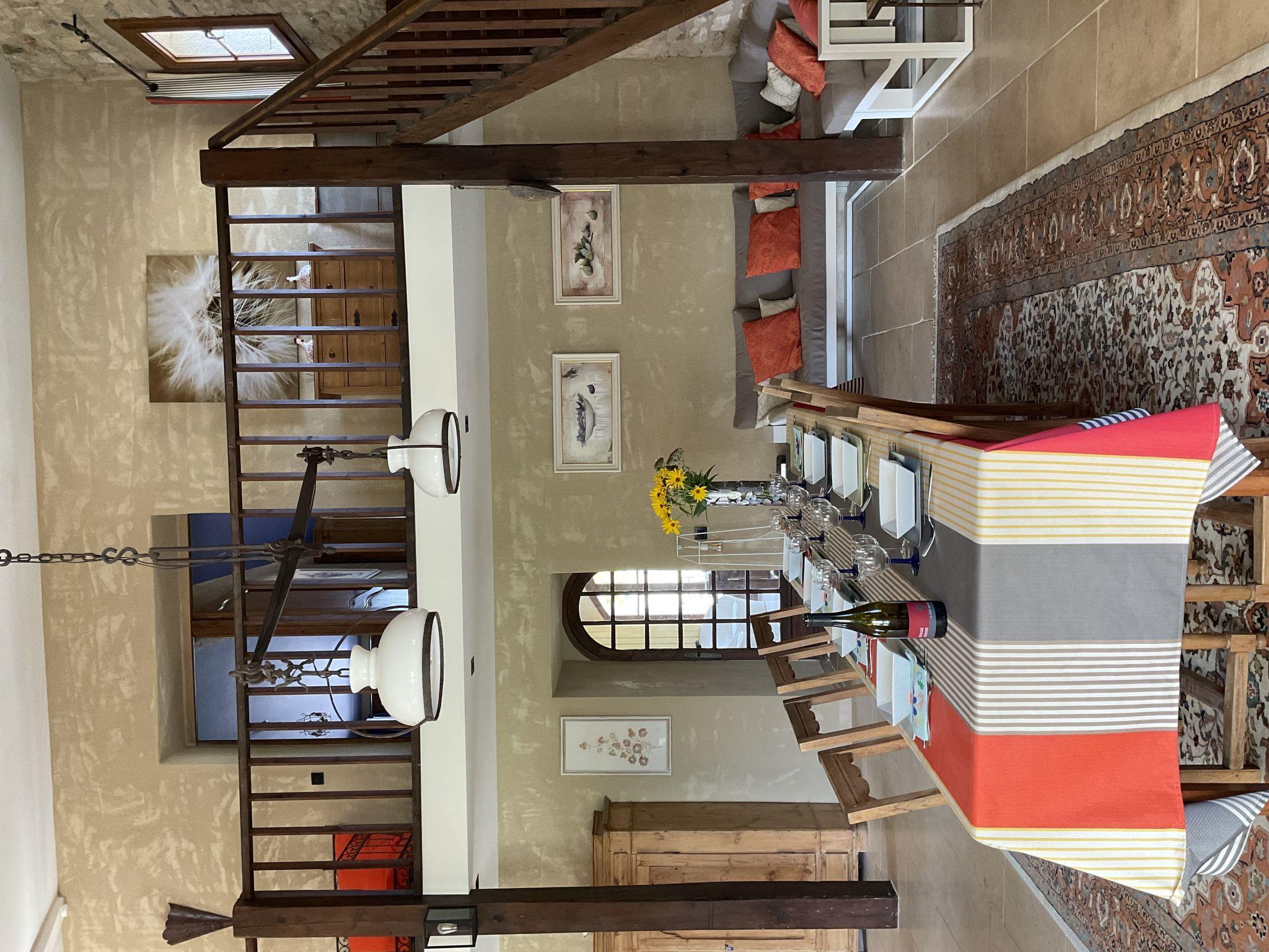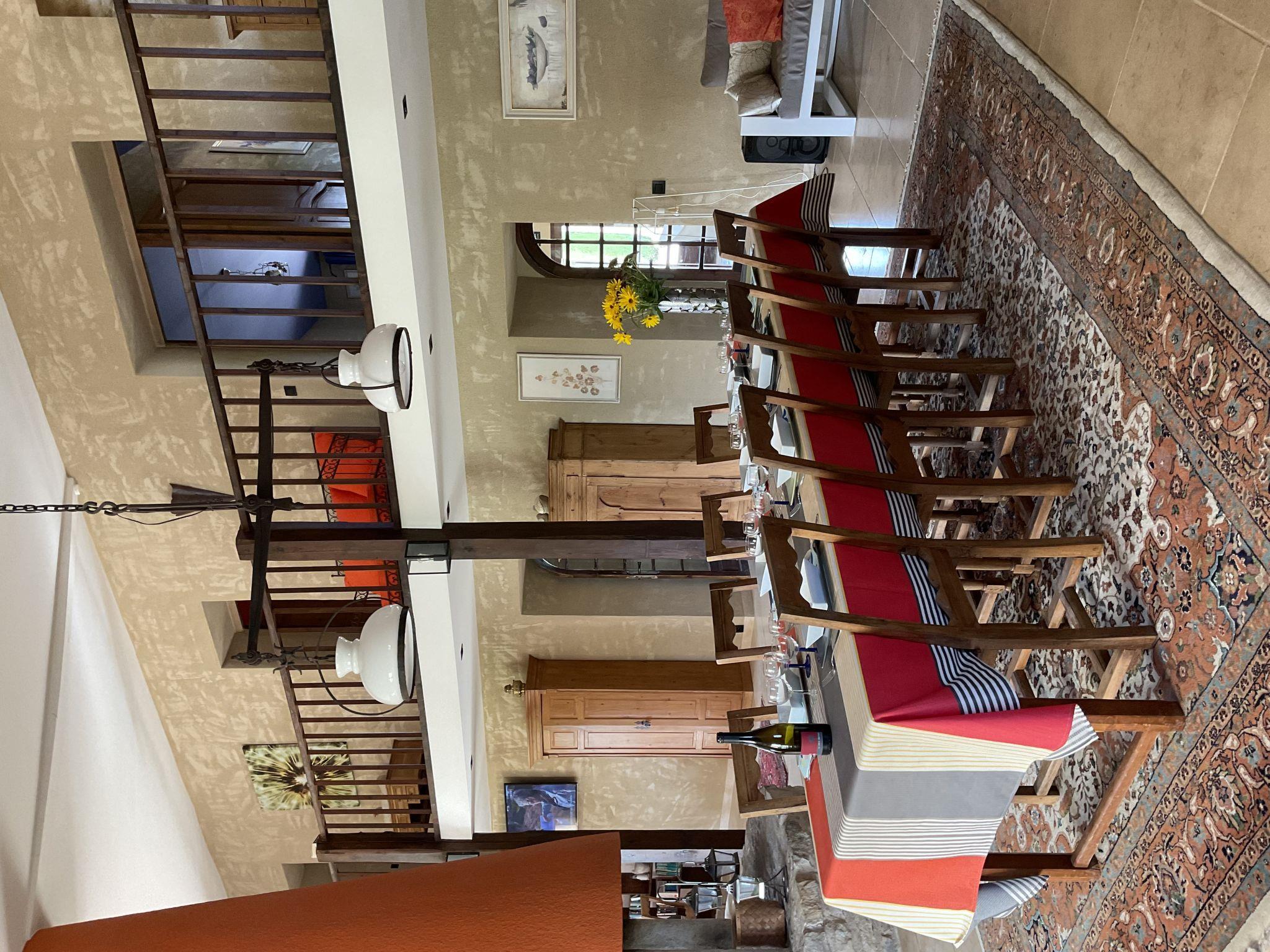 "La Princesse", 6-room house 250 m2 on 2 levels. Comfortable and tasteful furnishings: living/dining room with open-hearth fireplace, dining table, satellite TV, hi-fi system and DVD. Large kitchen (oven, dishwasher, 5 ceramic glass hob hotplates, toaster, kettle, microwave, freezer, electric coffee machine, raclette grill, cooking island, fondue Set (cheese)) with open-hearth fireplace (only for decoration), dining table. Exit to the terrace. Sep. WC. Upper floor: 1 double bedroom with 1 double bed (160 cm), shower/WC. 1 room with 2 beds. 1 room with 1 french bed (160 cm). 1 room with 2 beds (90 cm), 1 x 2 bunk beds, separate WC and shower. 1 double bedroom with 1 double bed (160 cm). Bath/shower, 2 sep. WC's. Oil heating. Natural stone floors. 3 terraces. Terrace furniture, barbecue, deck chairs (8), box-room. View of the countryside. Facilities: washing machine, safe, iron, mosquito net, children's high chair, baby cot. Internet (WiFi, free). Please note: non-smoking house. When there are less than the maximum number of guests staying at the property, not all of the bedrooms will be available for use.