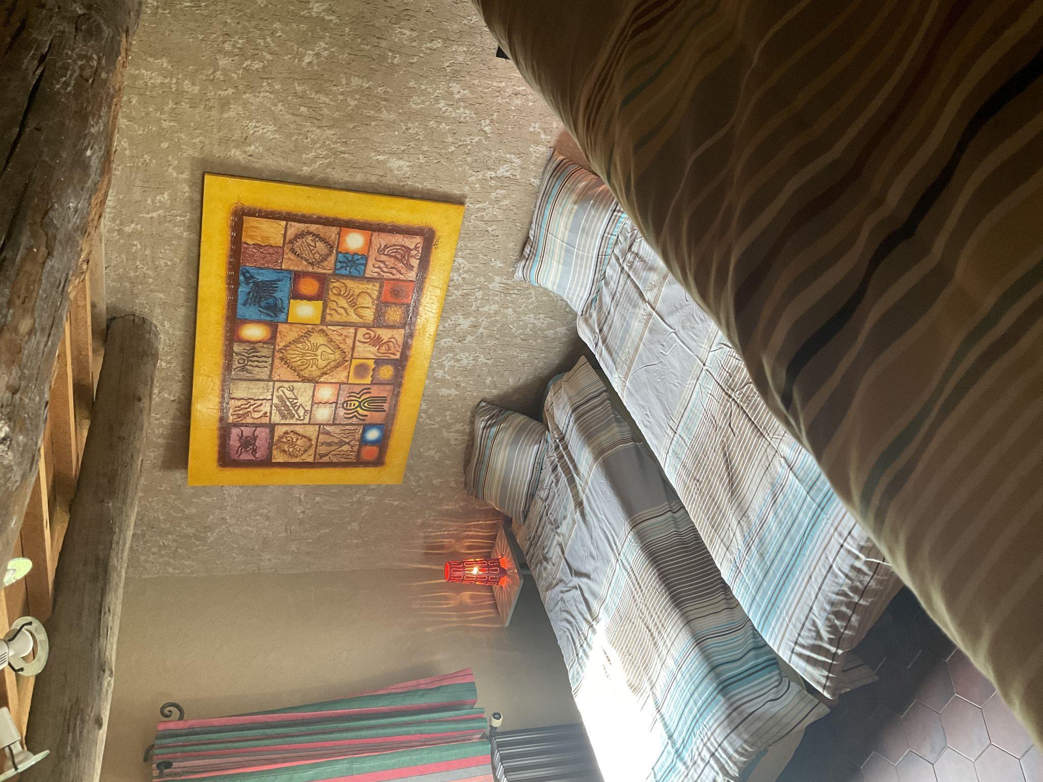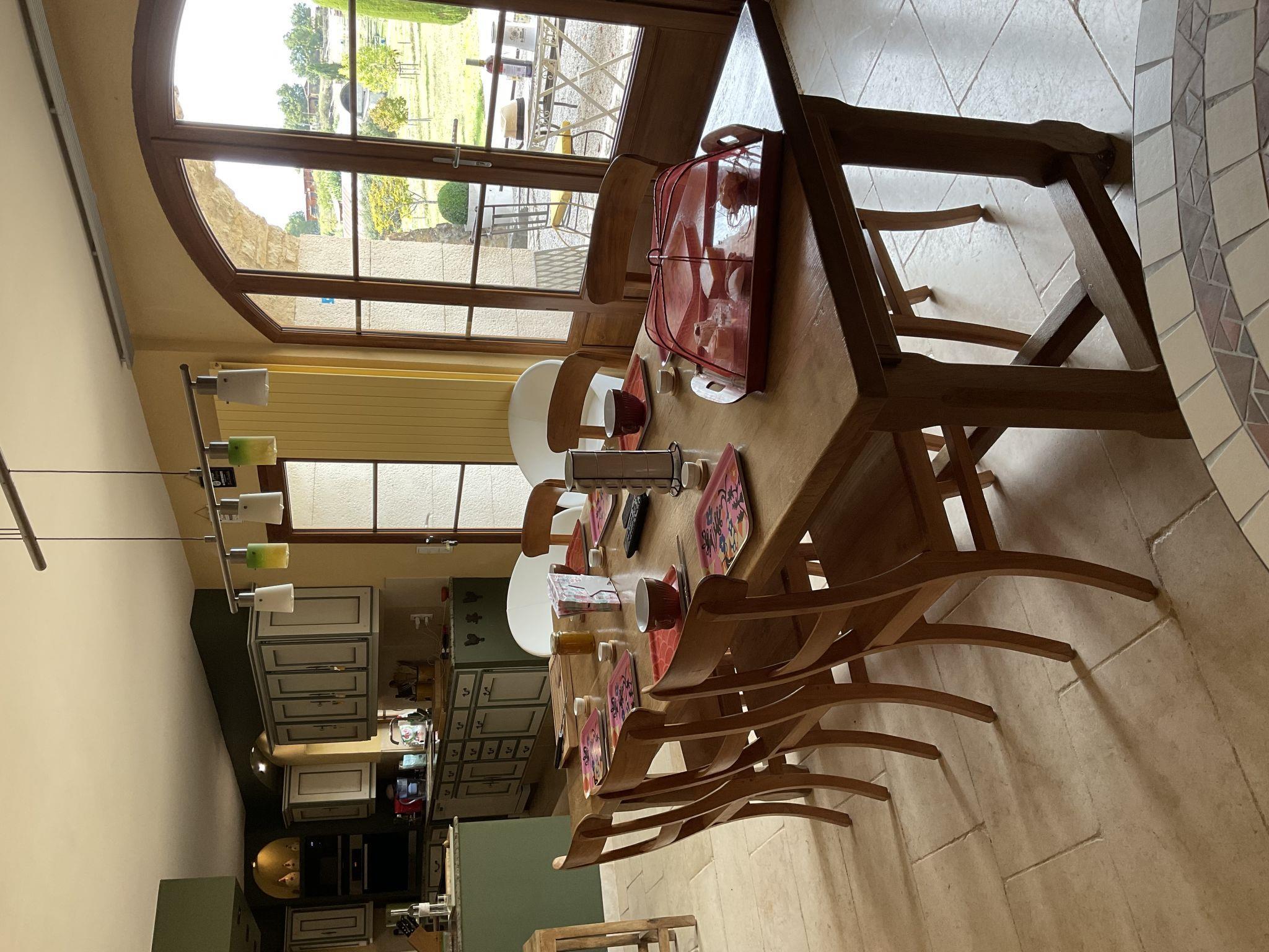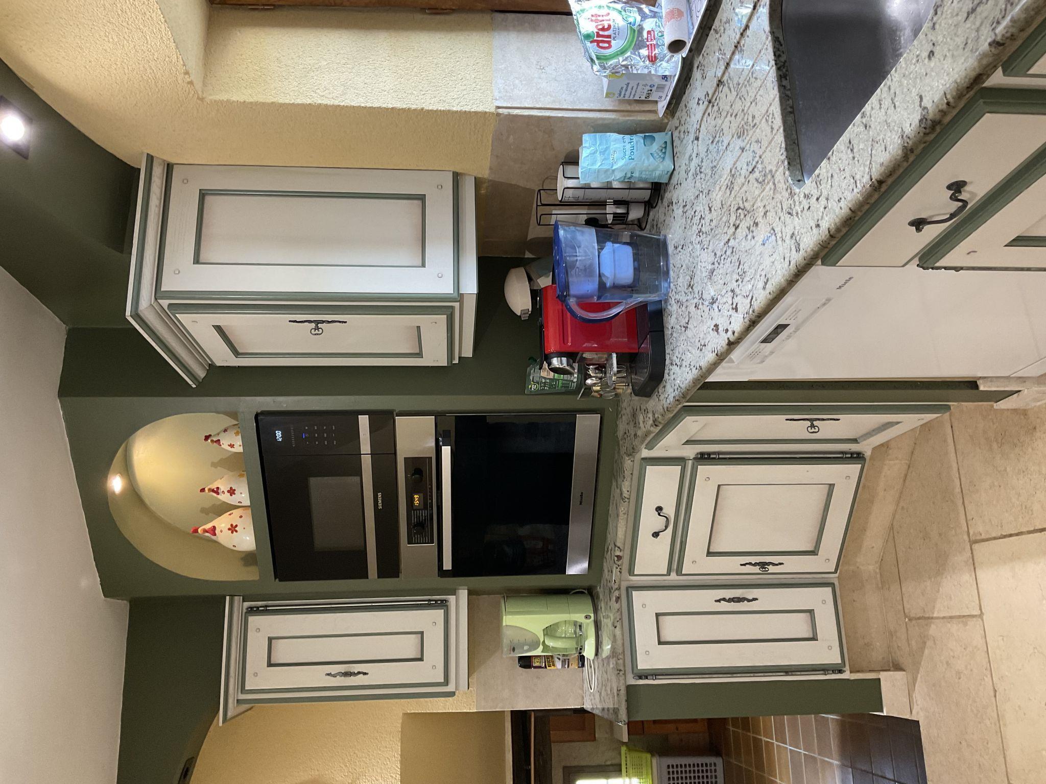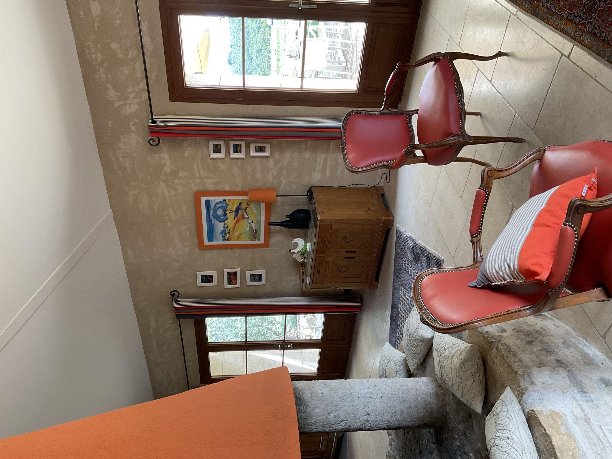 "La Princesse", 6-room house 250 m2 on 2 levels. Comfortable and tasteful furnishings: living/dining room with open-hearth fireplace, dining table, satellite TV, hi-fi system and DVD. Large kitchen (oven, dishwasher, 5 ceramic glass hob hotplates, toaster, kettle, microwave, freezer, electric coffee machine, raclette grill, cooking island, fondue Set (cheese)) with open-hearth fireplace (only for decoration), dining table. Exit to the terrace. Sep. WC. Upper floor: 1 double bedroom with 1 double bed (160 cm), shower/WC. 1 room with 2 beds. 1 room with 1 french bed (160 cm). 1 room with 2 beds (90 cm), 1 x 2 bunk beds, separate WC and shower. 1 double bedroom with 1 double bed (160 cm). Bath/shower, 2 sep. WC's. Oil heating. Natural stone floors. 3 terraces. Terrace furniture, barbecue, deck chairs (8), box-room. View of the countryside. Facilities: washing machine, safe, iron, mosquito net, children's high chair, baby cot. Internet (WiFi, free). Please note: non-smoking house. When there are less than the maximum number of guests staying at the property, not all of the bedrooms will be available for use.