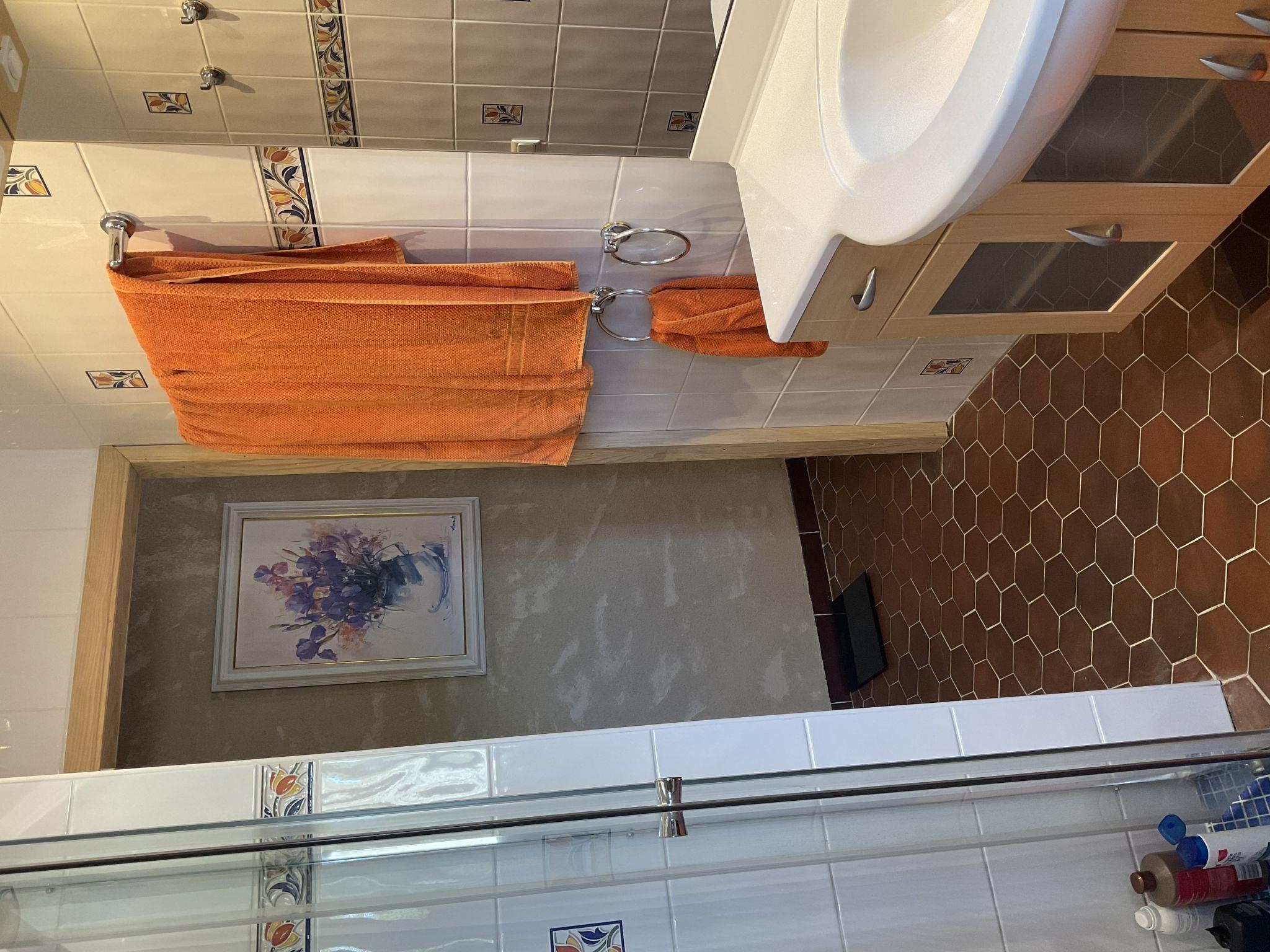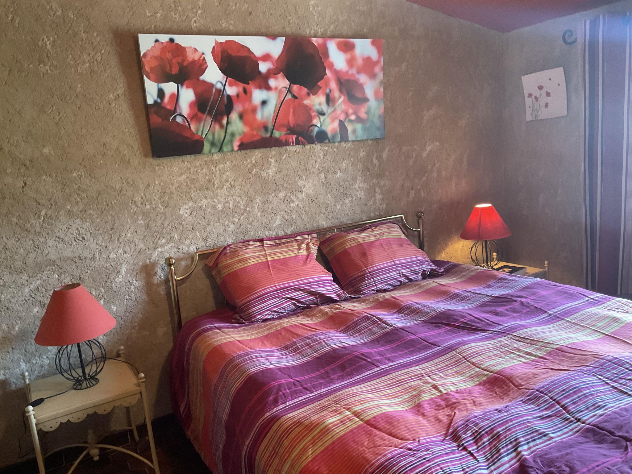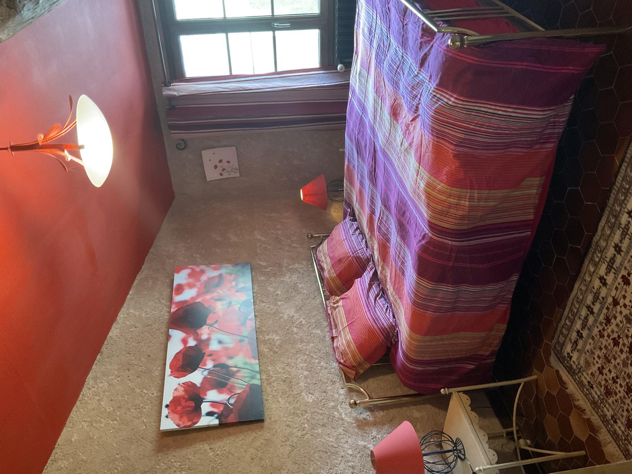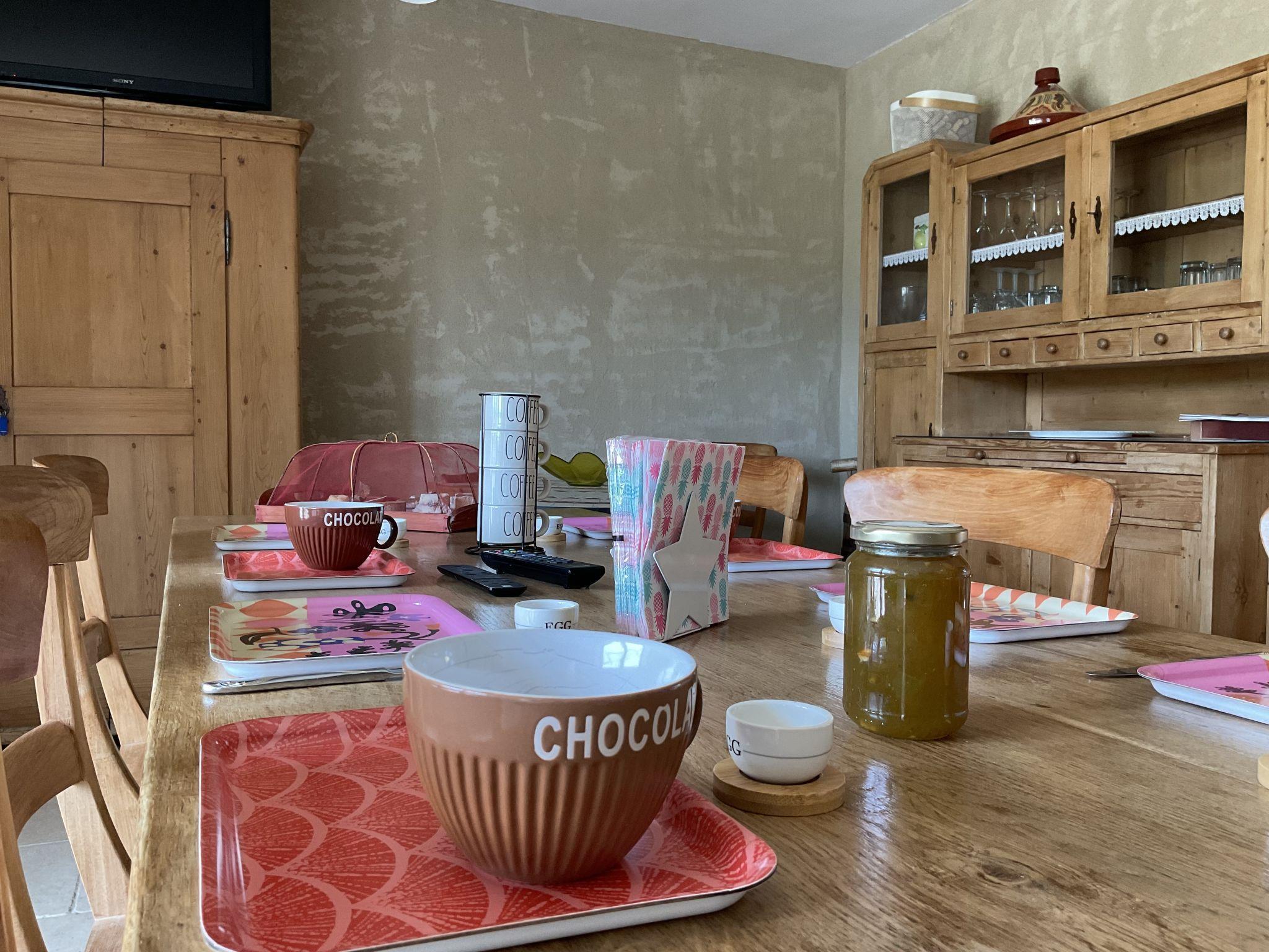 "La Princesse", 6-room house 250 m2 on 2 levels. Comfortable and tasteful furnishings: living/dining room with open-hearth fireplace, dining table, satellite TV, hi-fi system and DVD. Large kitchen (oven, dishwasher, 5 ceramic glass hob hotplates, toaster, kettle, microwave, freezer, electric coffee machine, raclette grill, cooking island, fondue Set (cheese)) with open-hearth fireplace (only for decoration), dining table. Exit to the terrace. Sep. WC. Upper floor: 1 double bedroom with 1 double bed (160 cm), shower/WC. 1 room with 2 beds. 1 room with 1 french bed (160 cm). 1 room with 2 beds (90 cm), 1 x 2 bunk beds, separate WC and shower. 1 double bedroom with 1 double bed (160 cm). Bath/shower, 2 sep. WC's. Oil heating. Natural stone floors. 3 terraces. Terrace furniture, barbecue, deck chairs (8), box-room. View of the countryside. Facilities: washing machine, safe, iron, mosquito net, children's high chair, baby cot. Internet (WiFi, free). Please note: non-smoking house. When there are less than the maximum number of guests staying at the property, not all of the bedrooms will be available for use.