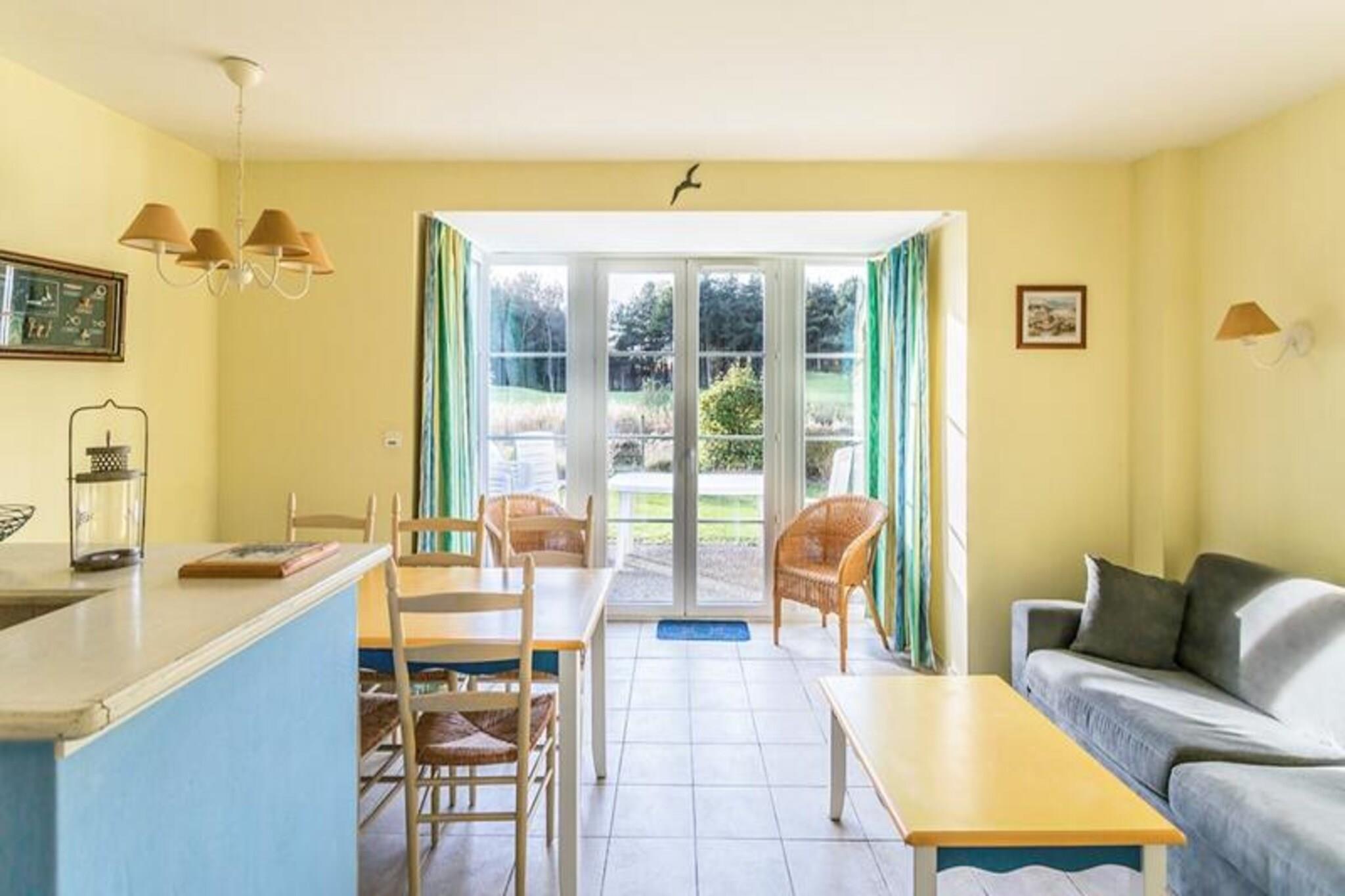 This cozy holiday home features two comfortable bedrooms, including one with a double bed and the other with two single beds. The living room offers a double sofa bed, perfect for extra guests. Guests can relax on the furnished terrace with a garden and balcony, enjoying the scenic views. The property is pet-friendly with an additional charge for pets, and essential amenities like bed linen, a mandatory end-of-stay cleaning service, and a TV are included. The accommodation provides all the essentials for a pleasant and affordable stay. Located within the Belle Dune club village, this property offers easy access to a variety of activities such as tennis, zumba, and fitness. Nearby, guests can explore charming cafes, local markets, and shops that highlight the best of Picardy. For nature lovers, the area boasts scenic walking and cycling paths, while the beach is just a short distance away for sun and relaxation. Fort-Mahon, a lively town with additional attractions, is also close by, offering even more to discover. Inside, the holiday home includes a well-equipped kitchen area open to the living room, making meal preparation easy. The bathroom features either a bathtub or shower, and a separate toilet. The spacious layout, with a surface area of approximately 43 m², ensures comfort during your stay. Additionally, guests can enjoy access to a swimming pool in the Maisons de la Plage district (open July and August), providing a refreshing break in a tranquil setting.