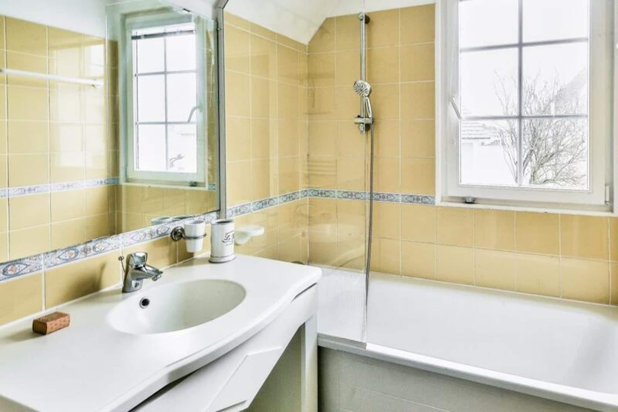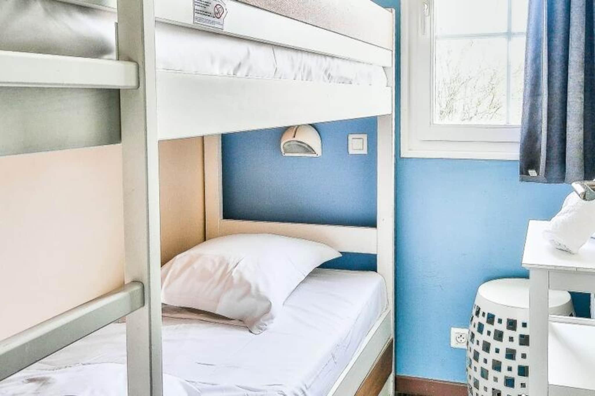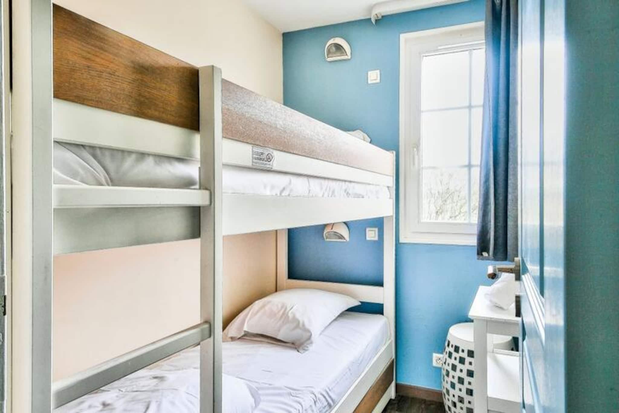Experience a relaxing getaway in this charming holiday home in Fort-Mahon, nestled in a serene, pedestrian-friendly village inspired by Picardy architecture. Accommodating up to six guests, the home features three bedrooms: a double room, a twin room with two single beds, and a bunk room ideal for kids. A bathroom with a bathtub-shower, a separate shower, and a WC provide convenience. Pets are welcome for an additional fee, and bed linens are included for a hassle-free stay. A reserved parking space ensures easy access. Located in a vibrant village, the property offers proximity to a range of attractions and activities. Explore the surrounding natural beauty, enjoy water sports, or take part in paid village activities such as tennis, fitness classes, and Zumba. Nearby cafes and markets offer local delicacies and essentials, while the beach is just a short drive away. In July and August, residents of the Maisons de la Plage district can enjoy a private swimming pool, perfect for cooling off. The open-plan layout includes a cozy living and dining area with seating for six and a fully equipped kitchen, complete with modern appliances like a dishwasher, microwave, and refrigerator. A terrace offers a peaceful spot for alfresco dining or unwinding in the fresh air. High-speed Wi-Fi, a hairdryer, and mandatory end-of-stay cleaning ensure your stay is comfortable and worry-free.