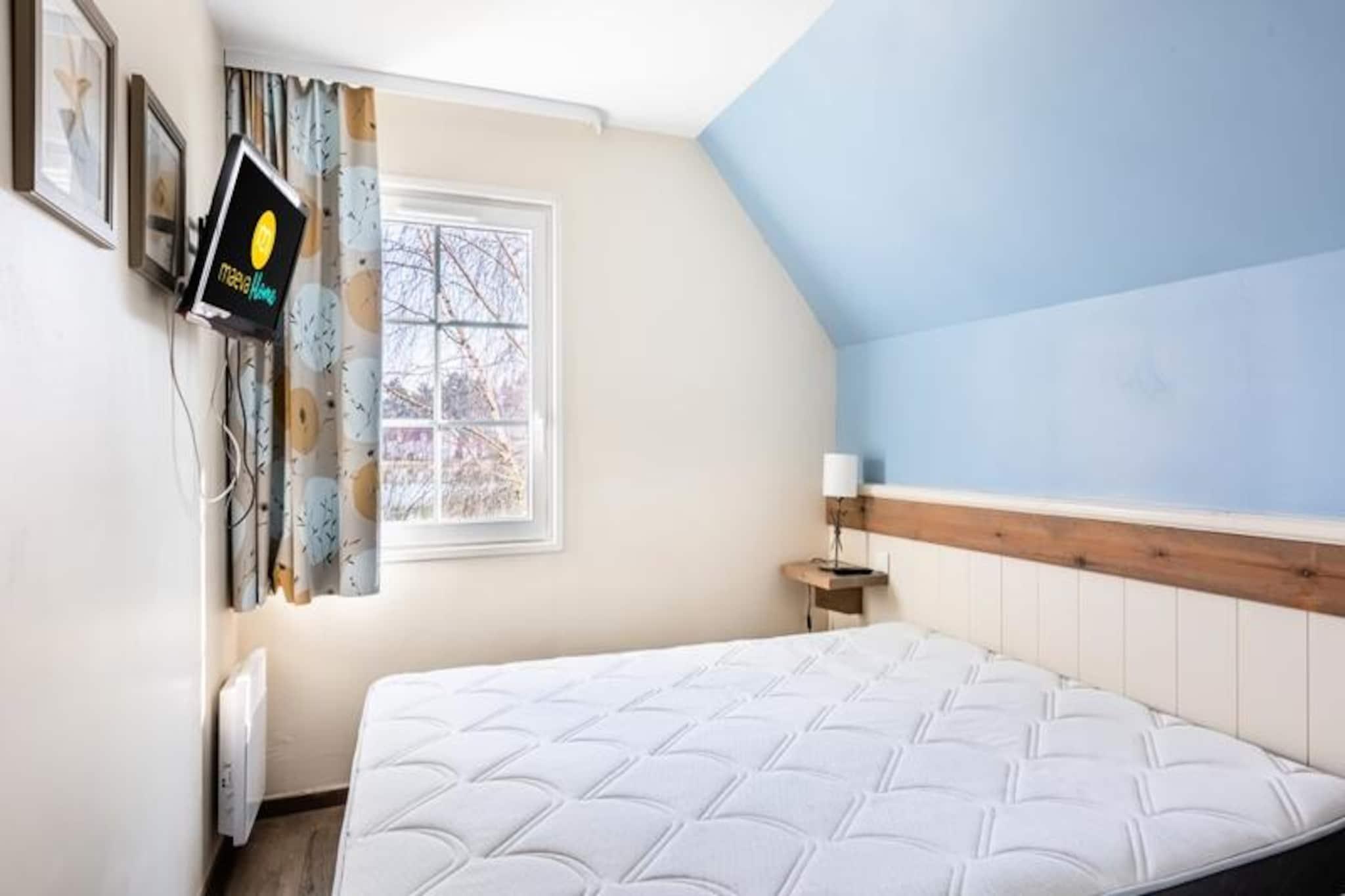 This cozy holiday home is located within a pedestrian village in Fort-Mahon, offering a peaceful getaway in the heart of Picardy. The accommodation includes two bedrooms, one with a double bed and the other with two single beds, along with a closed cabin area with bunk beds for additional guests. The living room features a sofa bed for two, providing flexibility for larger groups. Pets are allowed for an additional fee, and bed linen is included for your convenience. The property is non-smoking and ideal for families or groups looking for a comfortable, relaxing stay. Located within the Belle Dune club village, this home is surrounded by nature and offers access to various activities, including tennis, fitness, and zumba, for an extra charge. The Maisons de la Plage district has a swimming pool available for free to residents during the summer months. Just a short walk from the property, you'll find shops, cafes, and local markets, offering a taste of the region. The Aquaclub, which includes an indoor aquatic area, wave pool, slides, sauna, and hammam, is available for an extra charge and opens in July. The house includes a fully equipped kitchen with an open-plan layout, ideal for preparing meals together. There are two bathrooms: one with a shower and WC, and another with a bath and WC attached to the second bedroom. The private terrace with a garden is perfect for outdoor relaxation, and the property also includes a parking space.