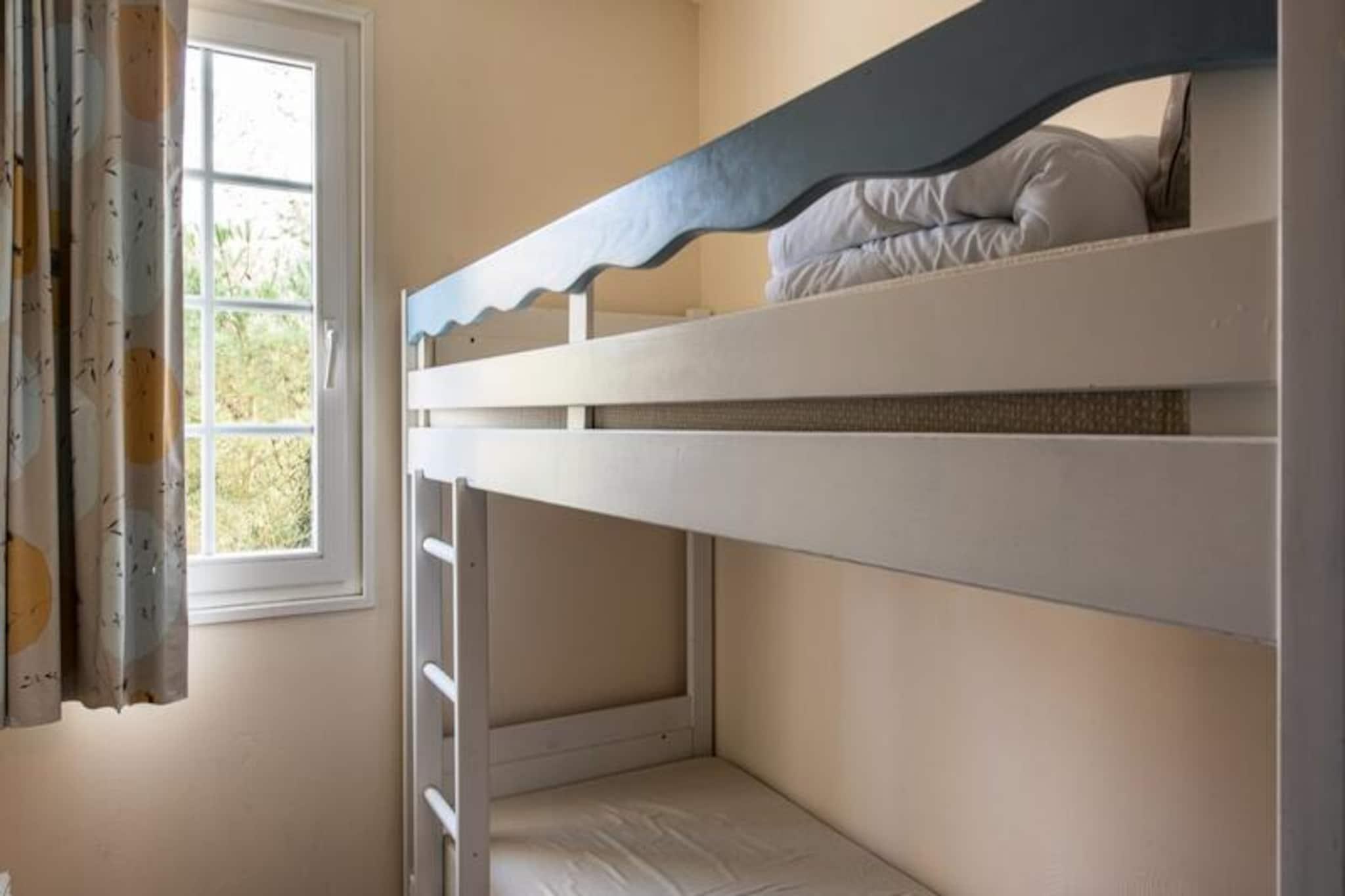 This charming 55m² holiday home in Fort-Mahon offers a comfortable and spacious stay for up to 6 guests. The house features two bedrooms, one with a double bed and the other with two single beds, as well as a closed cabin area with two single bunk beds. A new sofa bed in the living room adds flexibility for additional guests. Pets are allowed, with additional charges that can vary by accommodation. Bed linen is provided, and a mandatory cleaning service is to be paid upon arrival. Located within the Belle Dune club village, this home is set in a preserved natural environment, ideal for outdoor lovers. The village offers a variety of activities, including tennis, fitness, and Zumba, available for an additional fee. The nearby swimming pool in the Maisons de la Plage district provides free access to residents from July to August. For more water fun, the Aquaclub, with its wave pool, slides, sauna, and snack bar, opens at the beginning of July for an extra charge. The home is equipped with a fully functional kitchen, open to the living room, and a dining area with a table for 8. Two bathrooms ensure convenience, one with a shower and WC and the other with a bathtub and WC. Guests can also enjoy a balcony and parking, making it a perfect base to relax after a day of exploring the area.