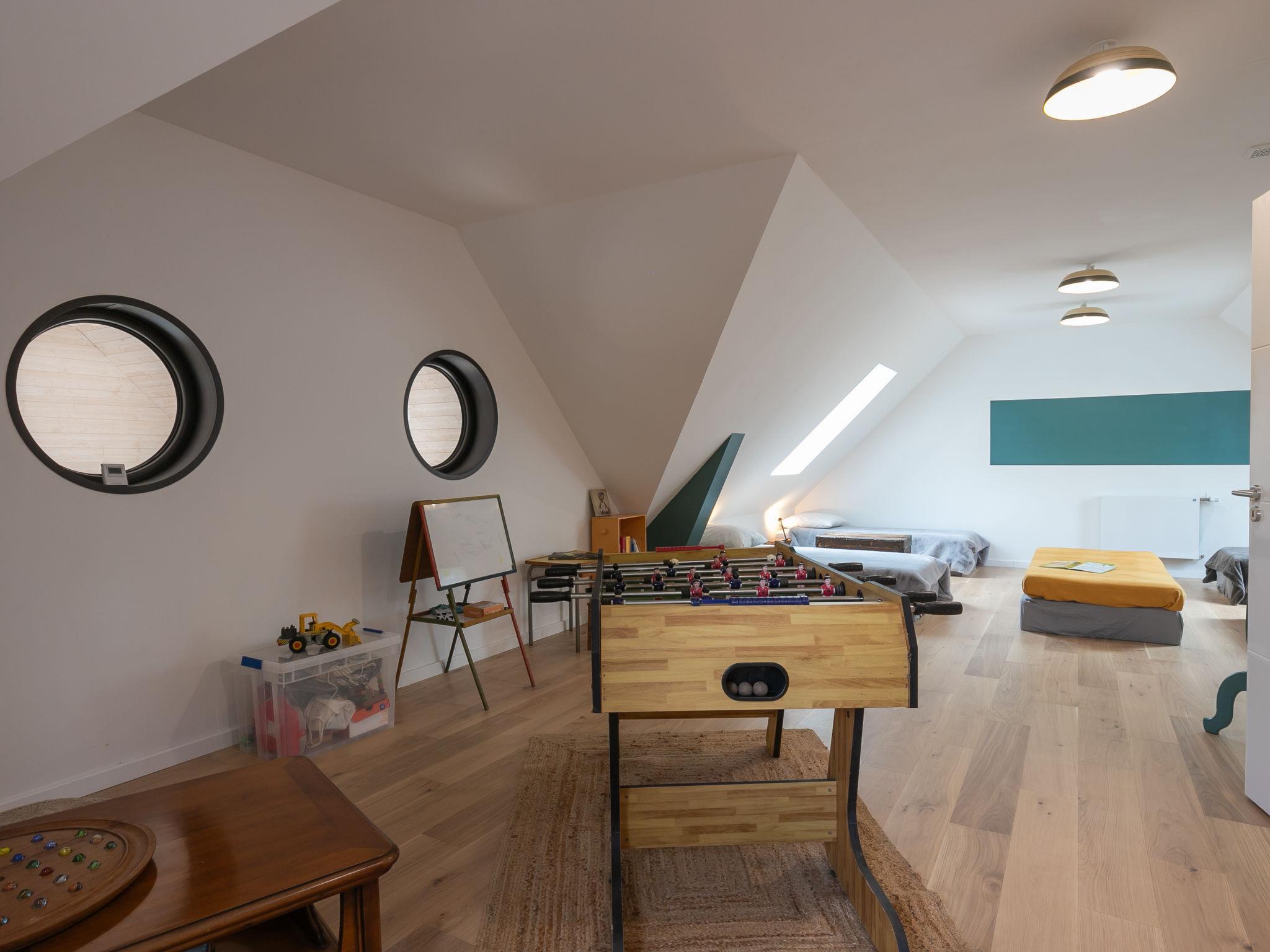 "Ty'vonne", 4-room house 120 m2 on 2 levels. Bright, beautiful and tasteful furnishings: living/dining room 30 m2. Exit to the terrace. 1 room 12 m2 with 1 french bed (140 cm, length 200 cm). Exit to the terrace. 1 room 12 m2 with 1 french bed (160 cm, length 200 cm). Open kitchen 15 m2 (oven, dishwasher, 4 induction hot plates, toaster, kettle, microwave, freezer, electric coffee machine). Shower, shower/WC, sep. WC. Upper floor: large living/sleeping room 30 m2, with sloping ceilings with 4 beds (90 cm, length 200 cm). Large terrace 50 m2, south facing position and, east facing position. Terrace furniture. Facilities: washing machine, dryer, children's high chair, baby cot for up to 2 year olds, hair dryer. Internet (WiFi, free). Please note: suitable for families. Non-smoking house. Smoke alarm. Offer by a private individual according to Art. 155, IV of CGI.