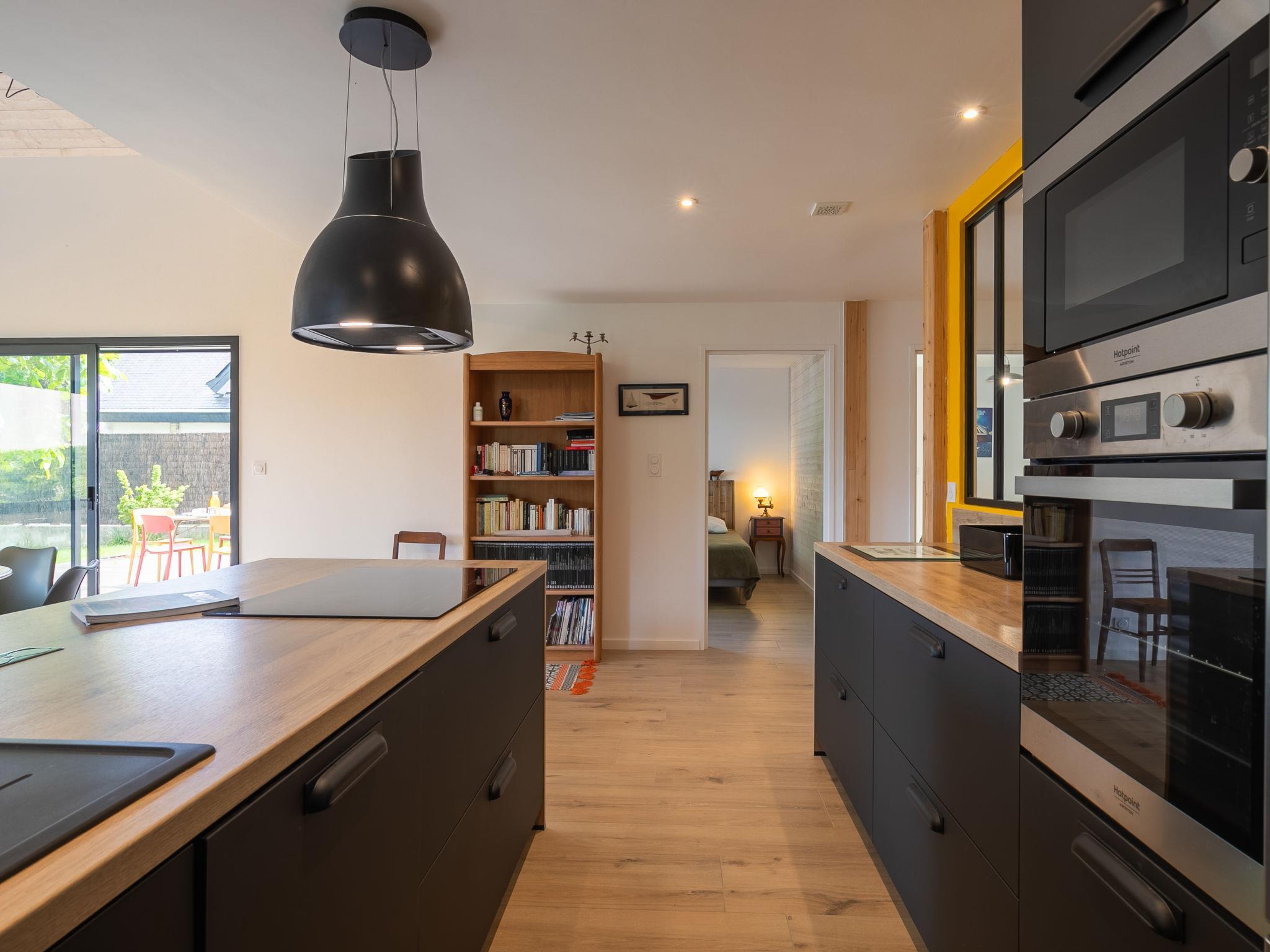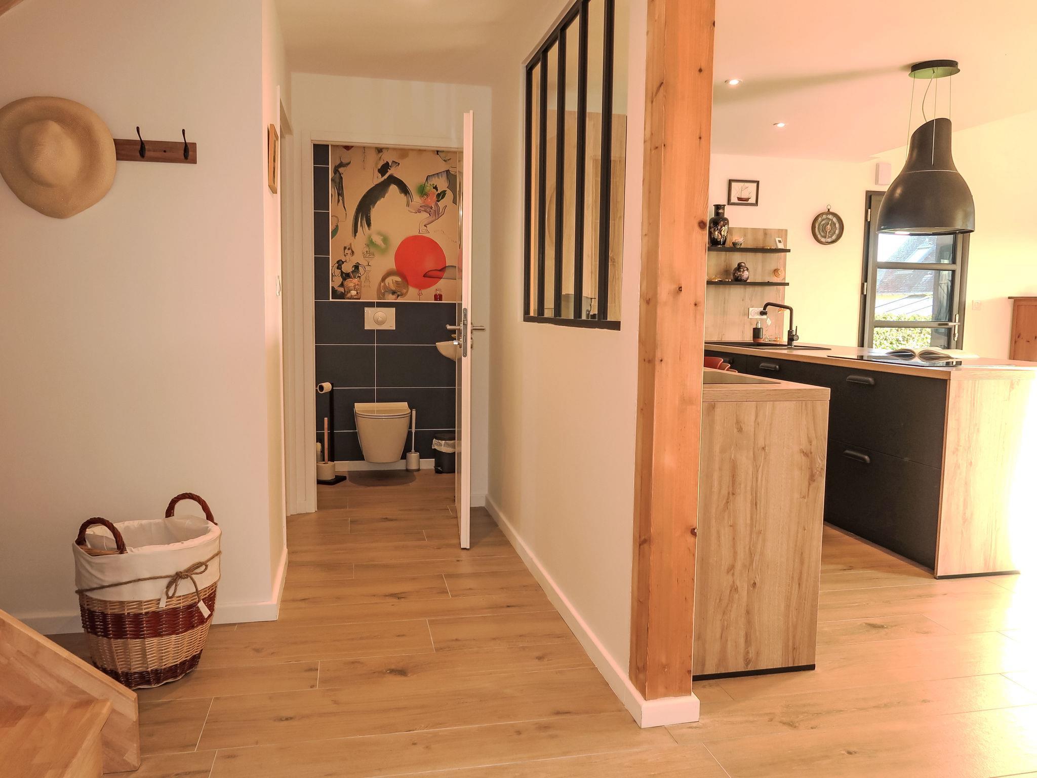 Fouesnant: Beautiful, cosy single-family house "Ty'vonne". In the district of Sainte Anne 1.5 km from the centre of Fouesnant, 3.7 km from the sea, 3.7 km from the beach. Private: property 600 m2, well-kept garden with lawn and wildlife garden, parking (for 2 cars) on the premises. Shop 1.6 km, supermarket 1.5 km, shopping centre 1.2 km, restaurant 650 m, bakery 450 m, café 1.2 km, bicycle rental 2 km, bus stop 550 m, sandy beach "Plage de Cap Coz" 3.7 km, thermal baths "Bénodet ou Concarneau" 10 km. Sports harbour 6 km, marina 6 km, golf course (18 hole) 47.0 km, surf school 3.7 km, sailing school 3.7 km, walking paths from the house 100 m, cycle lane 10 m. Nearby attractions: Beg Meil 6 km, Dunes de Kerler, Mer Blanche 8 km, Bénodet 10 km, Concarneau, Ville Close 14 km, Quimper 16 km, Pointe de la Torche, Pays Bigouden 32 km. Hiking paths: GR34, sentier des douaniers 3.3 km.