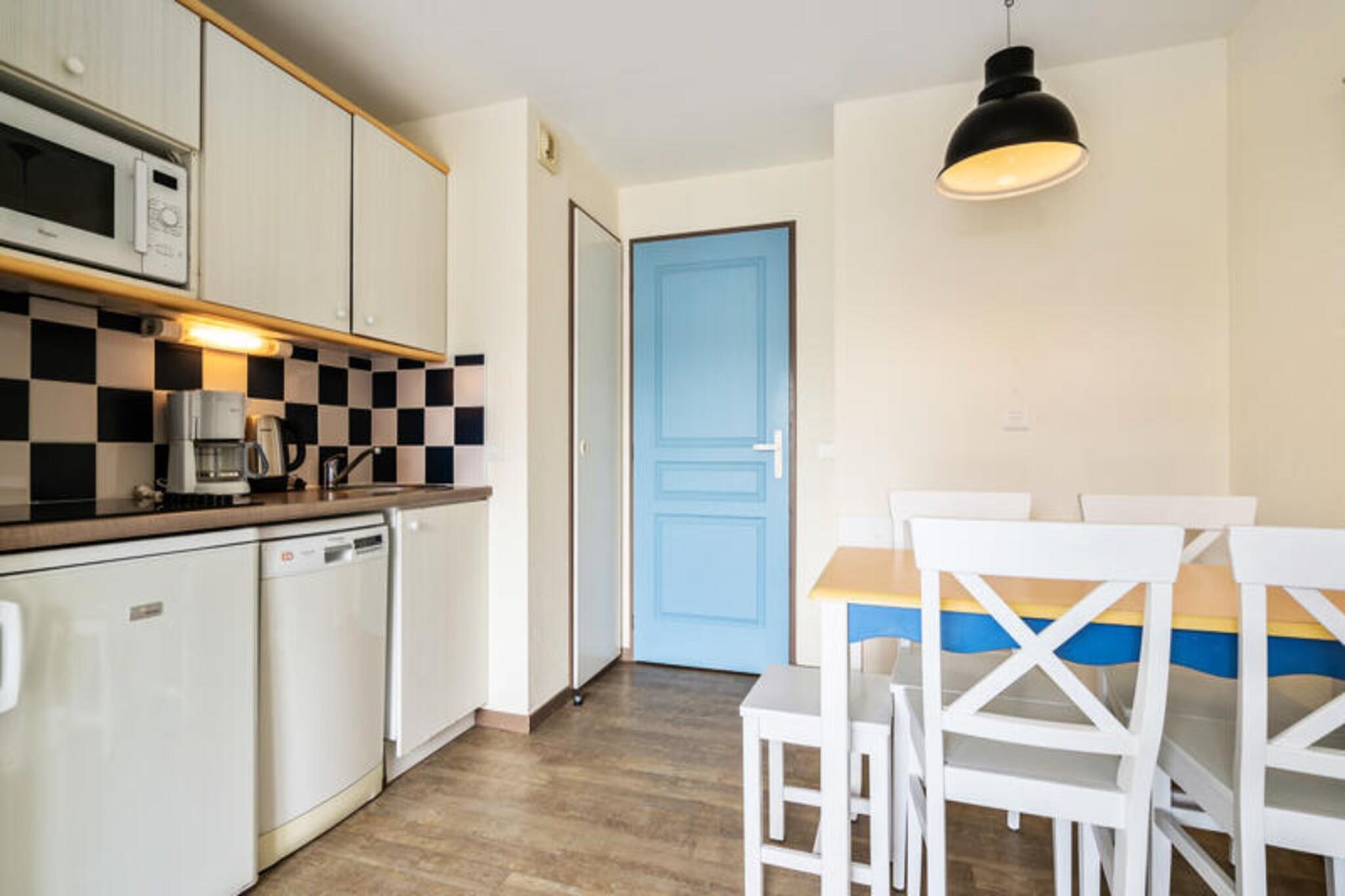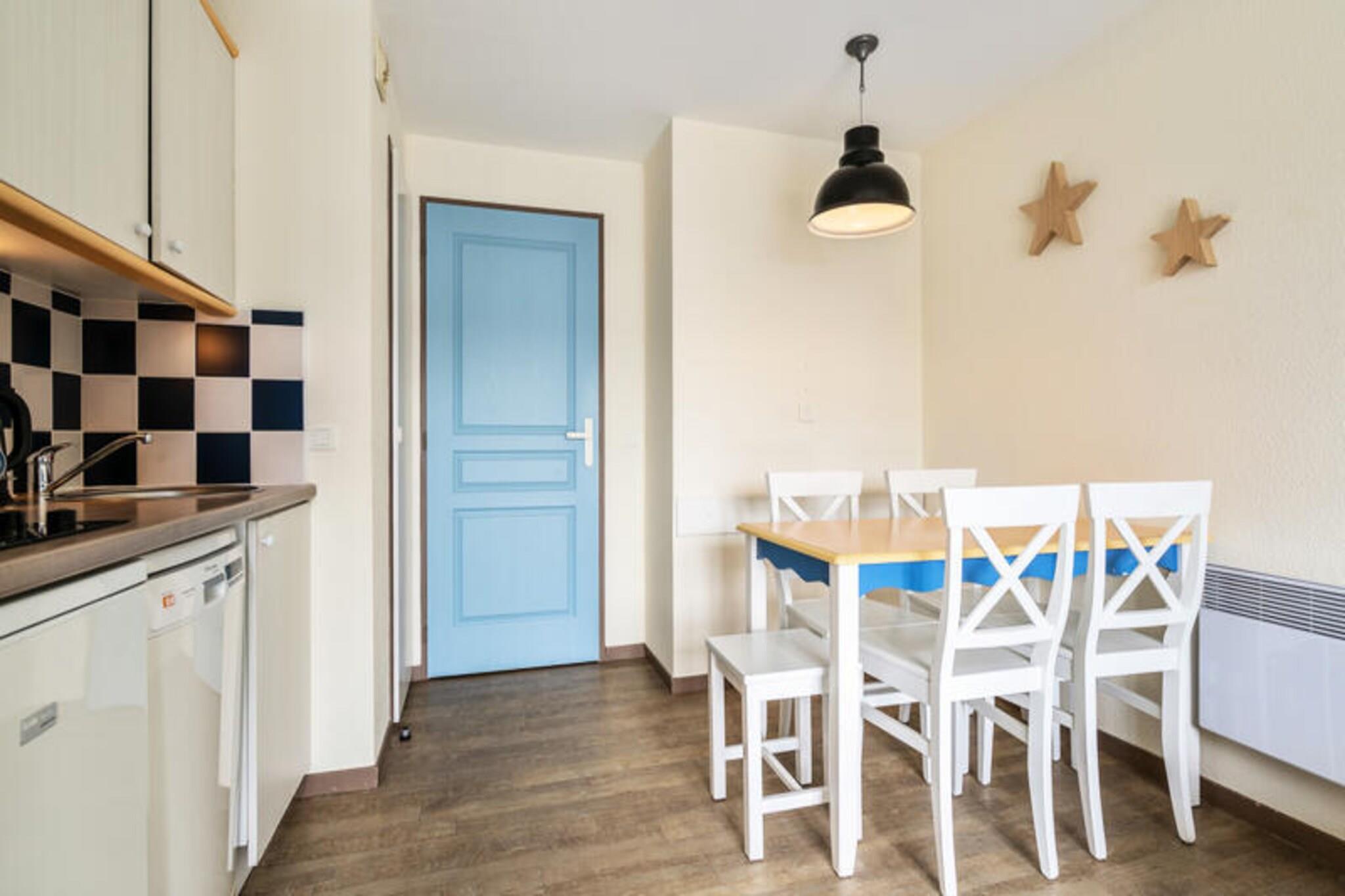 For a relaxing getaway in Brittany, choose this charming apartment just 10 meters from the beach. It features comfortable accommodations for up to 5 guests, with a living room equipped with 2 single banquette beds and a pull-out bed. The property also includes a double bedroom and 2 bathrooms—one with a bathtub and another with a shower and WC. Pets are allowed for an additional fee, and parking is available on-site for convenience. The apartment is ideally located for exploring the beautiful surroundings. Nearby, you’ll find pristine beaches, local markets filled with fresh produce, and charming cafes where you can savor delicious Breton cuisine. The area also offers various outdoor activities, including scenic walks and cultural attractions, making it a perfect destination for family or friends to enjoy. Inside the apartment, you’ll have everything needed for a comfortable stay. The kitchen, open to the living area, is equipped for preparing meals, and the dining table comfortably seats 5. The apartment’s private balcony is a great place to relax, while the shared outdoor pool, available from April to September, offers a refreshing spot to unwind after a day of exploring.