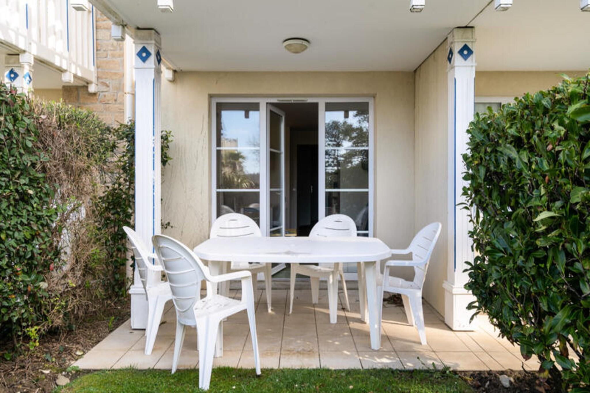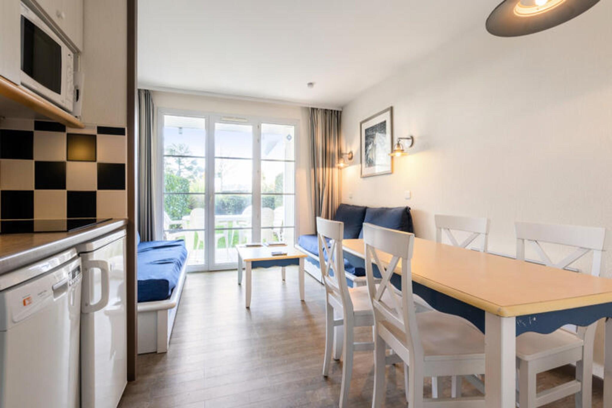 For a charming Breton getaway, this cozy apartment is perfect for a relaxing retreat. Located just steps from the beach, the apartment features a spacious living area with two single banquette beds and a pull-out bed, offering comfortable sleeping arrangements for up to three guests. The bedroom is furnished with a double bed, and the bathroom includes a bathtub for ultimate relaxation. Pets are welcome for an additional fee, and there’s on-site parking for your convenience. Nearby, you’ll find a variety of attractions, cafes, and local markets to explore. Enjoy the scenic beauty of the coastline or take a leisurely walk to nearby cafes offering fresh, local delights. The property is ideally located for outdoor activities and cultural excursions, with the vibrant town of Fouesnant just a short distance away, offering plenty of opportunities for sightseeing and dining. The apartment includes a well-equipped kitchen, open to the living area, where you can prepare meals. A dining table with seating for five guests is ideal for shared meals. The apartment also features a separate toilet for added comfort. The complex offers a large outdoor pool, available from April to September, making it perfect for a relaxing swim during your stay.