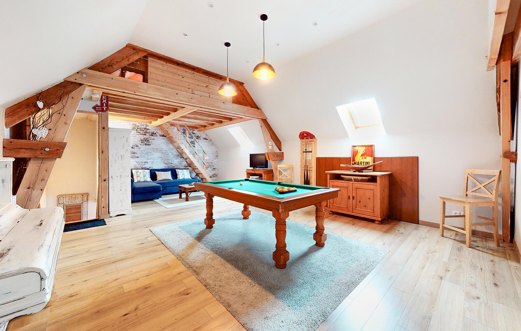 Willkommen in diesem wunderschönen Ferienhaus aus dem typischen Caen-Stein, ideal für Familien und Freundesgruppen, die Erholung und gemeinsames Vergnügen suchen. Die großzügigen Wohnräume mit zwei Salons und einem Billardtisch laden Sie zum Wohlfühlen ein. Ein ebenerdiges Zimmer ist für Personen mit eingeschränkter Mobilität perfekt geeignet.