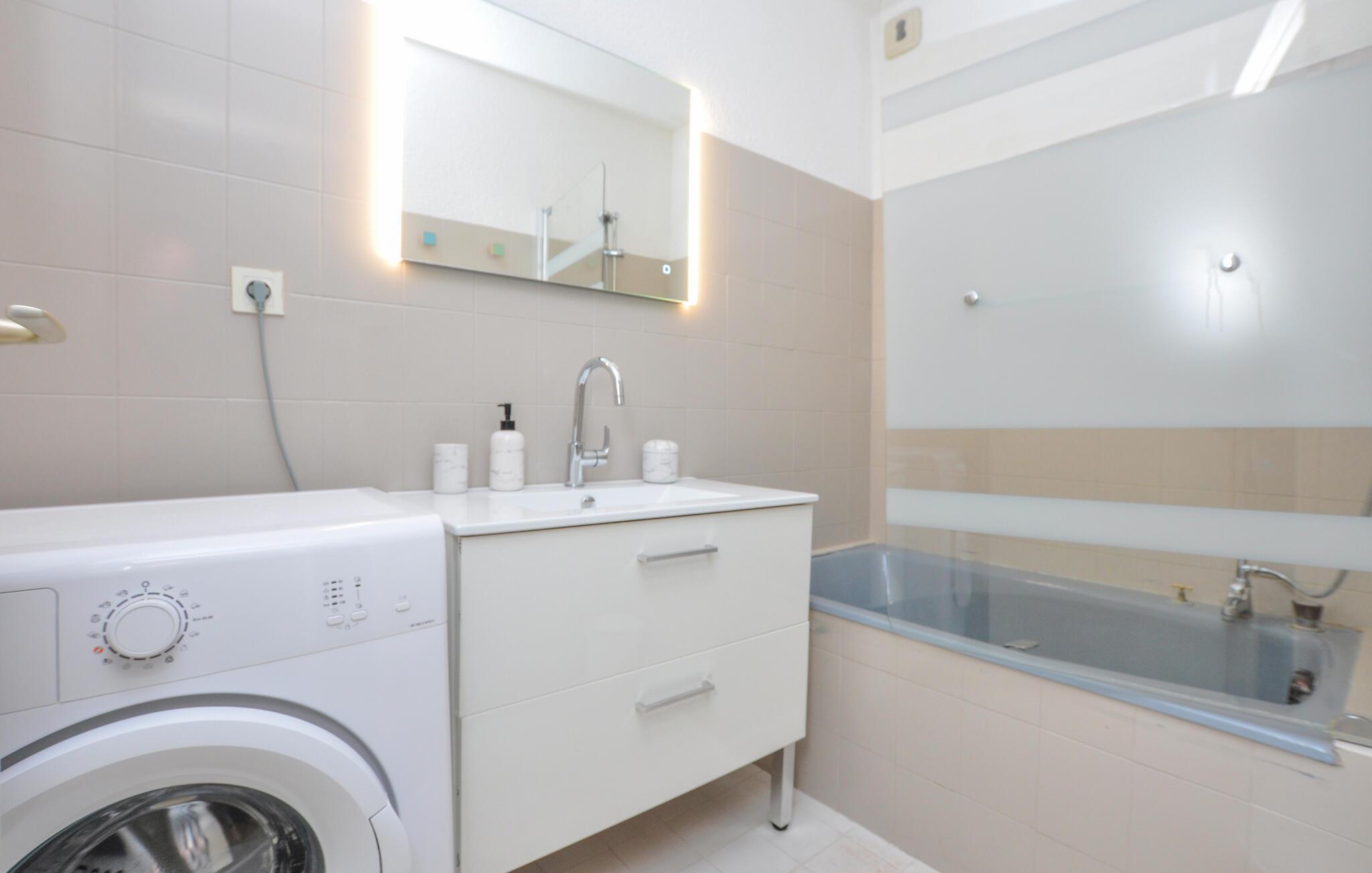 Nur einen kurzen Spaziergang vom langen Sandstrand von Fréjus entfernt, lädt Sie diese geschmackvoll eingerichtete Ferienwohnung zu einer herrlichen Auszeit nahe der Côte d'Azur ein. Bereiten Sie in der gut ausgestatteten Küche Ihre Lieblingsgerichte zu und genießen Sie diese am hellen Esstisch. Lehnen Sie sich nach einem erlebnisreichen Tag auf dem Sofa zurück und entspannen Sie bei einem guten Buch oder einem Spieleabend.
