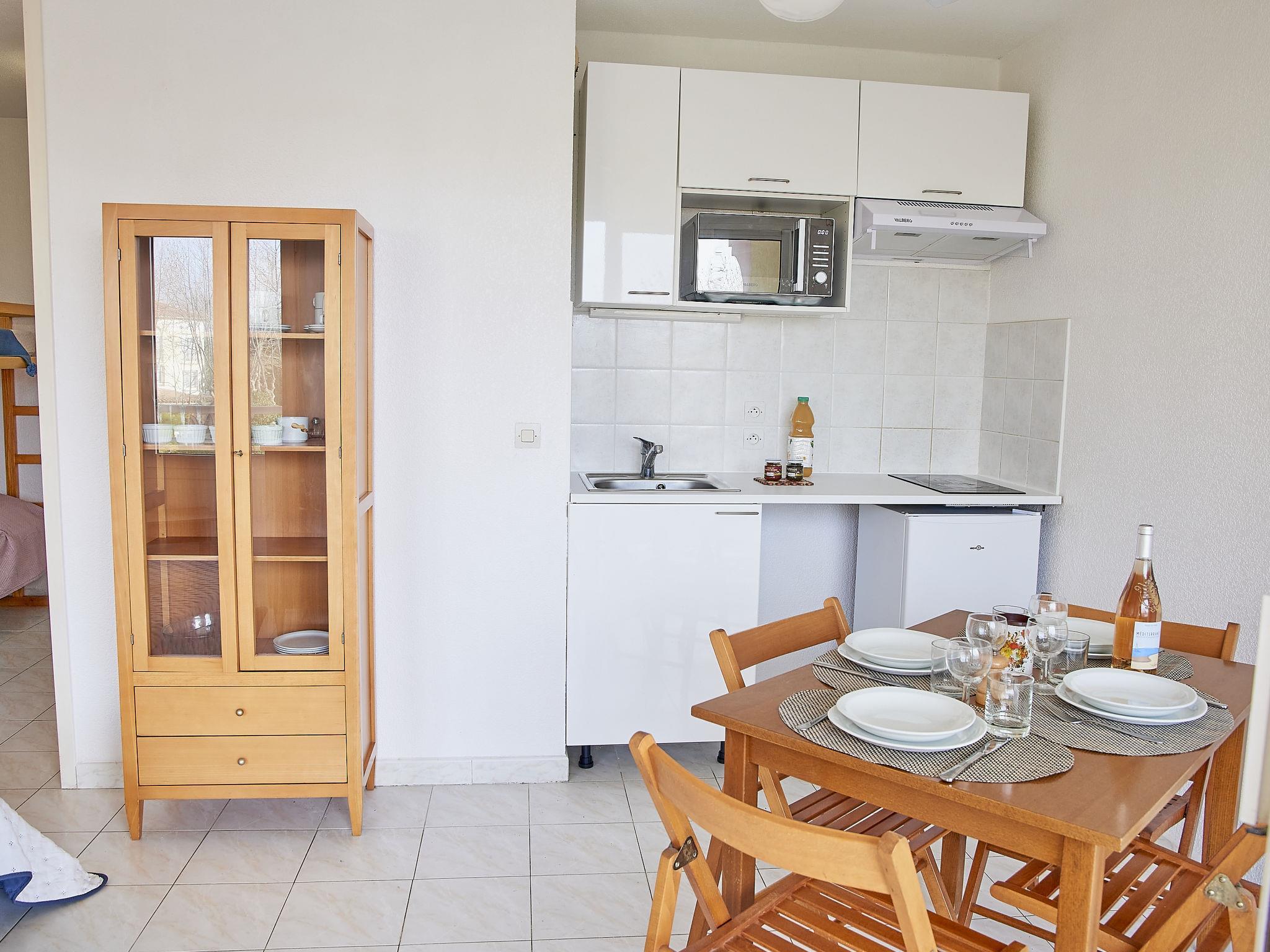 1-room studio 30 m2 on 2nd floor. Object suitable for 2 adults + 2 children. Living/dining room with 1 double sofabed (1 x 140 cm, length 190 cm), TV (flat screen). Exit to the terrace. Alcove with 1 x 2 bunk beds (90 cm, length 190 cm), electric heater. Kitchenette (2 ceramic glass hob hotplates, toaster, kettle, microwave, electric coffee machine). Shower/WC. Terrace 4 m2, south-east facing position. Terrace furniture. Partial view of the sea. Facilities: Internet (WiFi, extra). Garage space n G16. Please note: non-smokers only. Smoke alarm. Offer by a private individual according to Art. 155, IV of CGI.